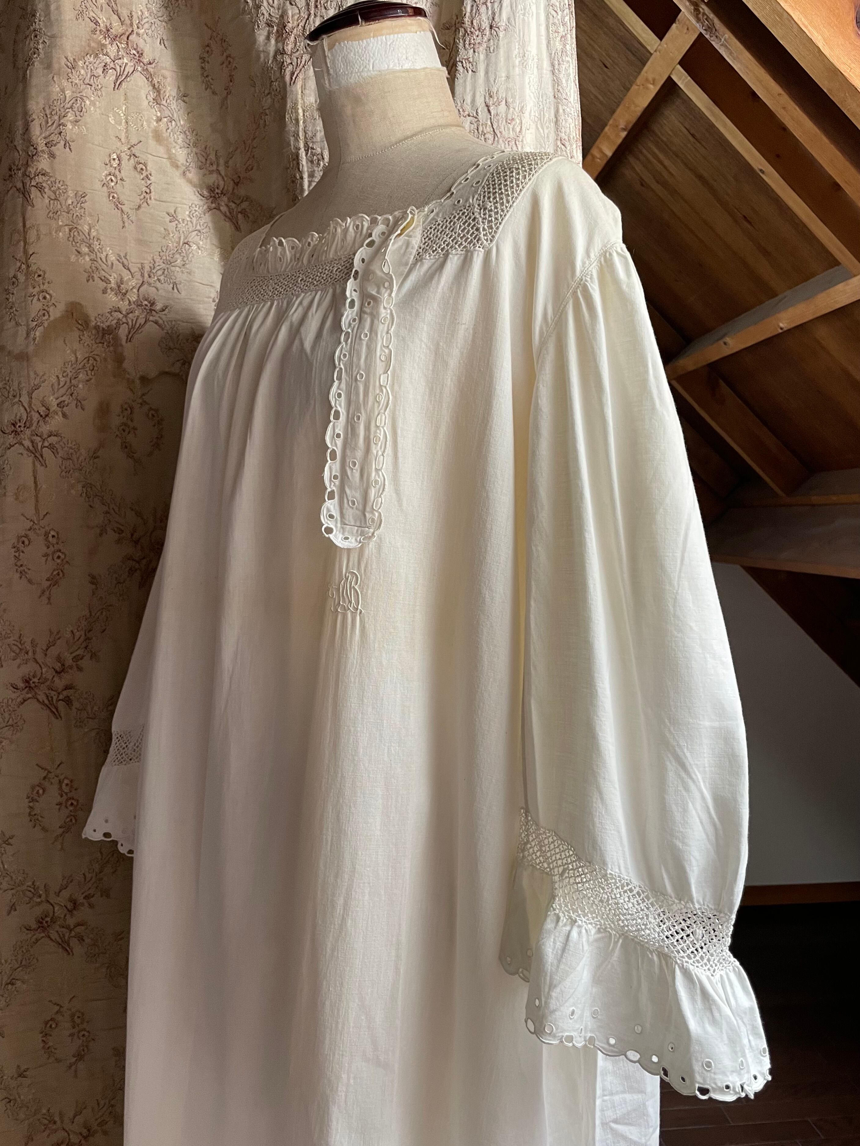 縁が全てスカラップにカットワーク刺繍されているのがとてもかわいく、首元は詰まっていないデザインなのでデコルテ周りを綺麗にみせてくれます♡