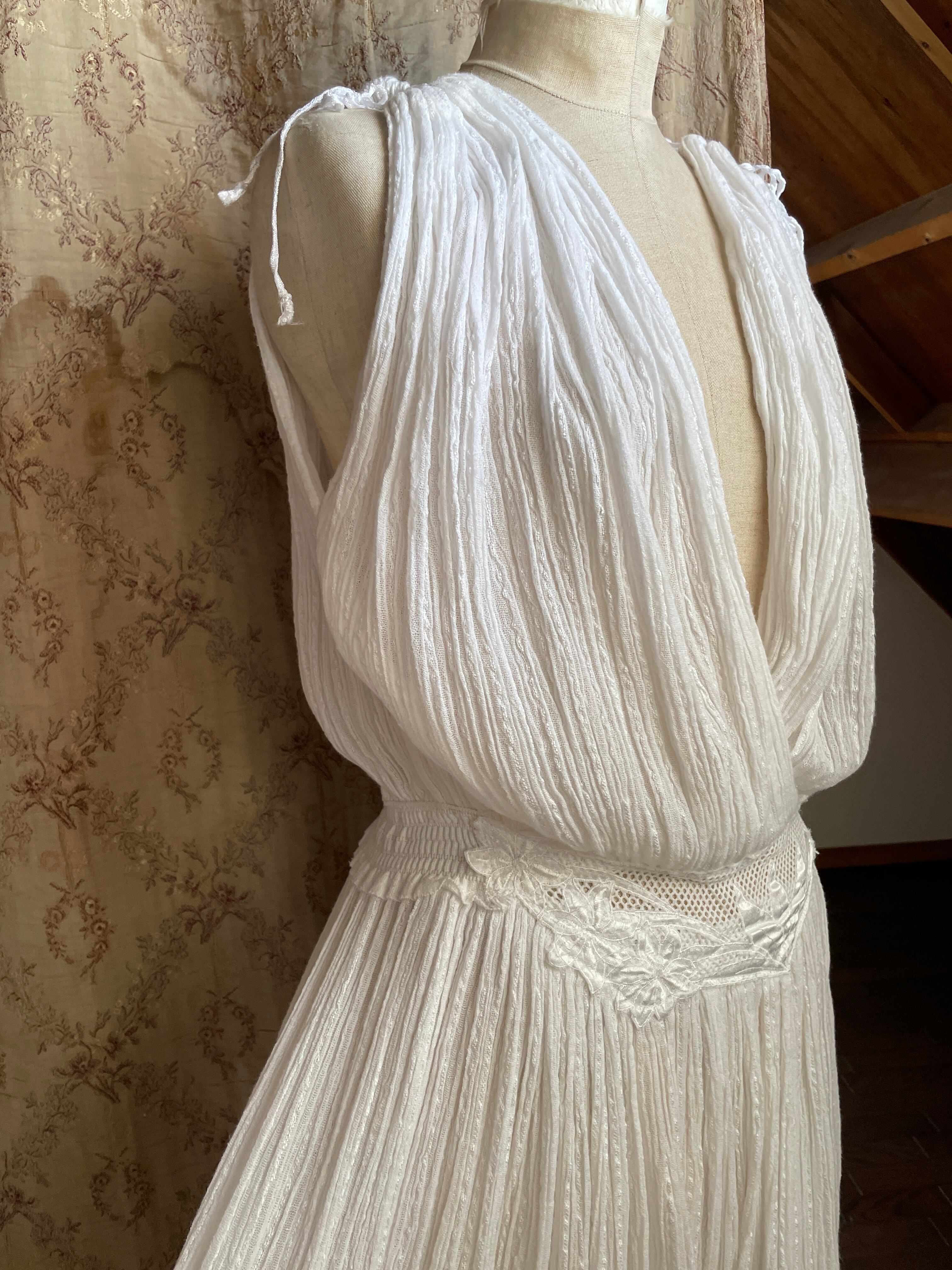 古着のギリシャドレスのようなとても柔らかいコットンガーゼ生地で仕立てられているため、涼しげで真夏でも過ごしやすそうです♡