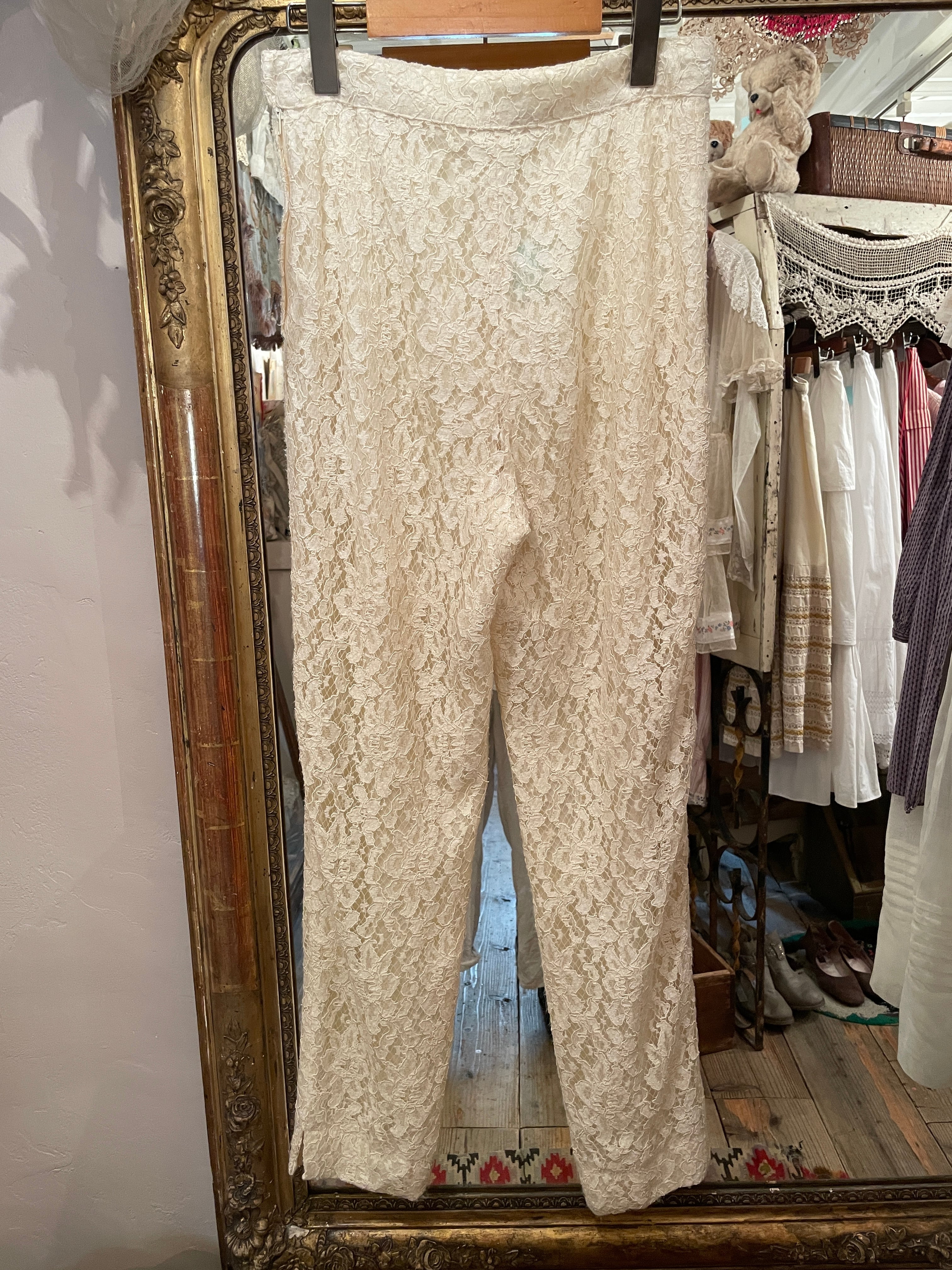 ヴィンテージの総レースのクリーミーカラーのパンツ♡