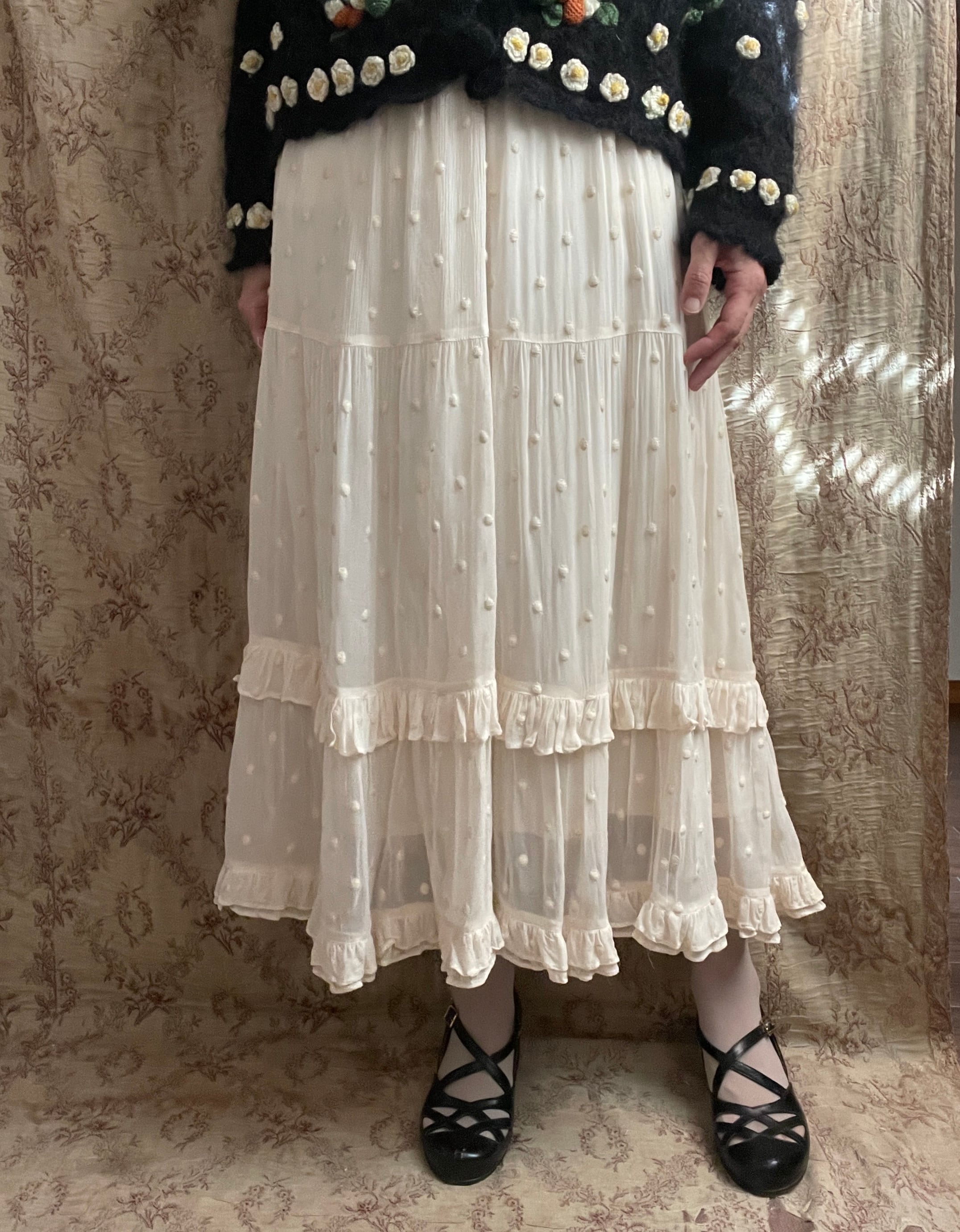 やわらかいクリーミーなお色に刺繍のドット柄が可愛いスカートです♡