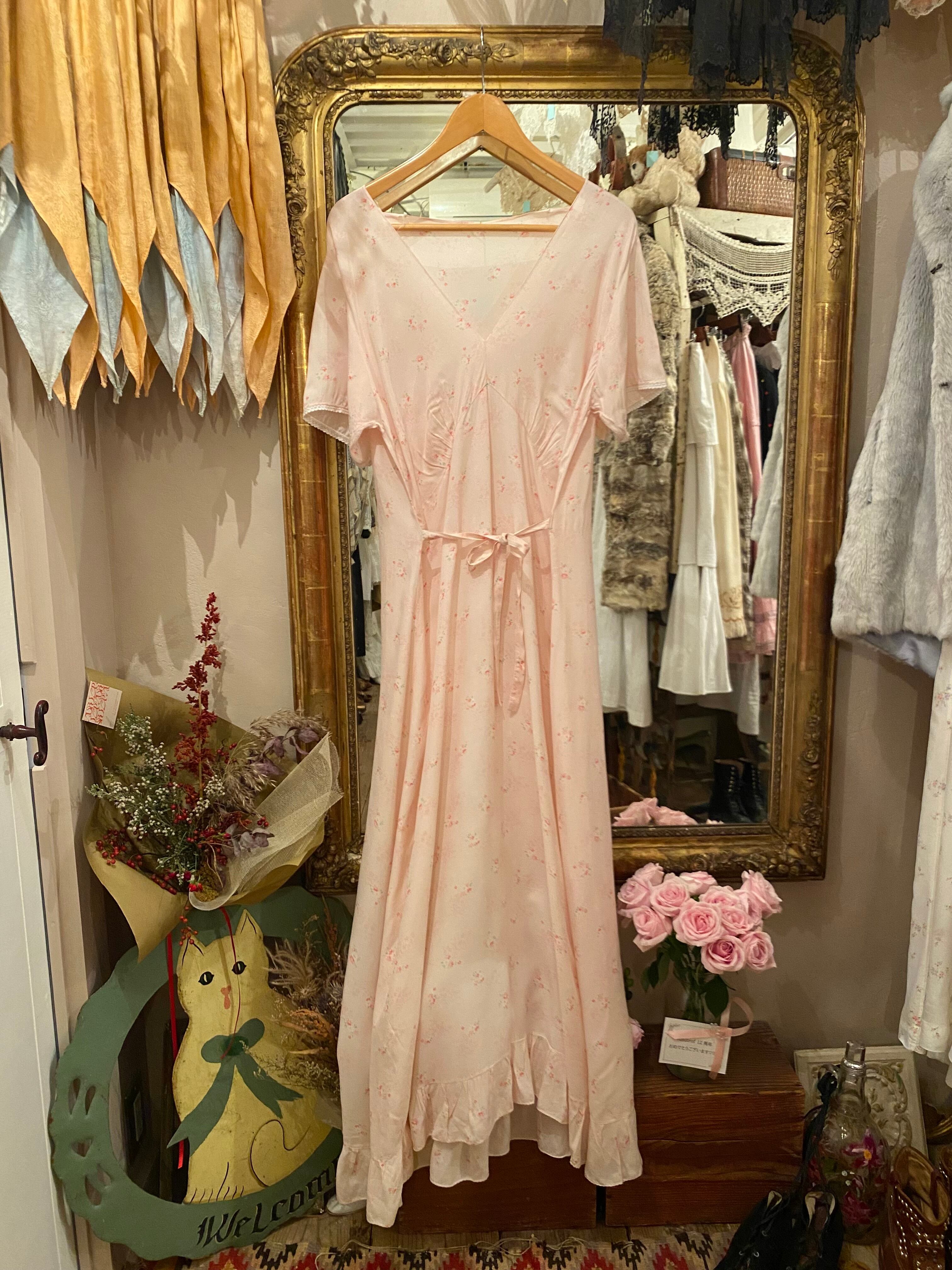 一面のピンクカラーに咲く、ピンクの小花柄がとってもかわいいランジェリードレス♡