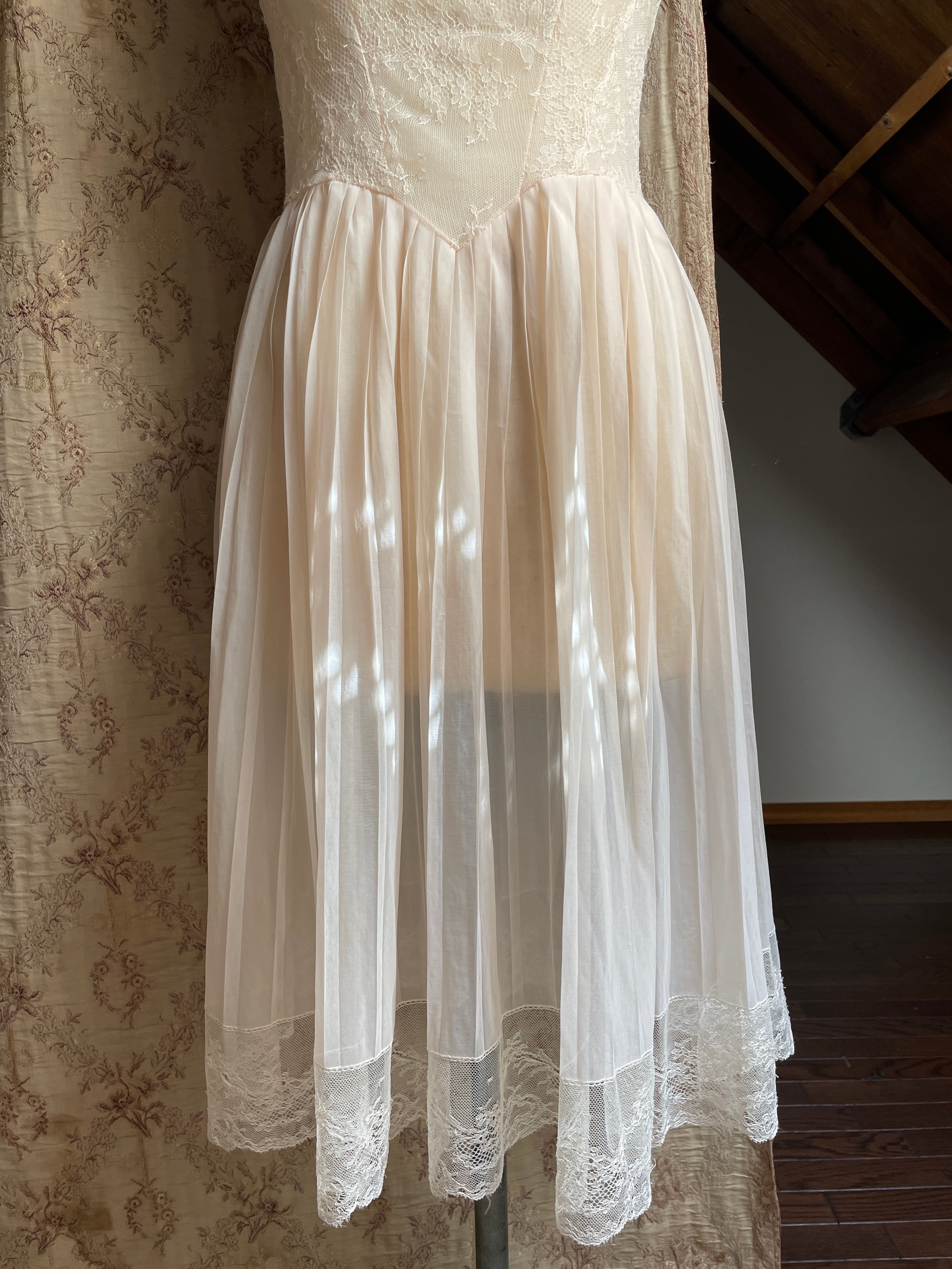 胸元はお花柄のレースになっていて、スカート部分はプリーツデザインによりゆらゆらと動きのある作りになっています♡