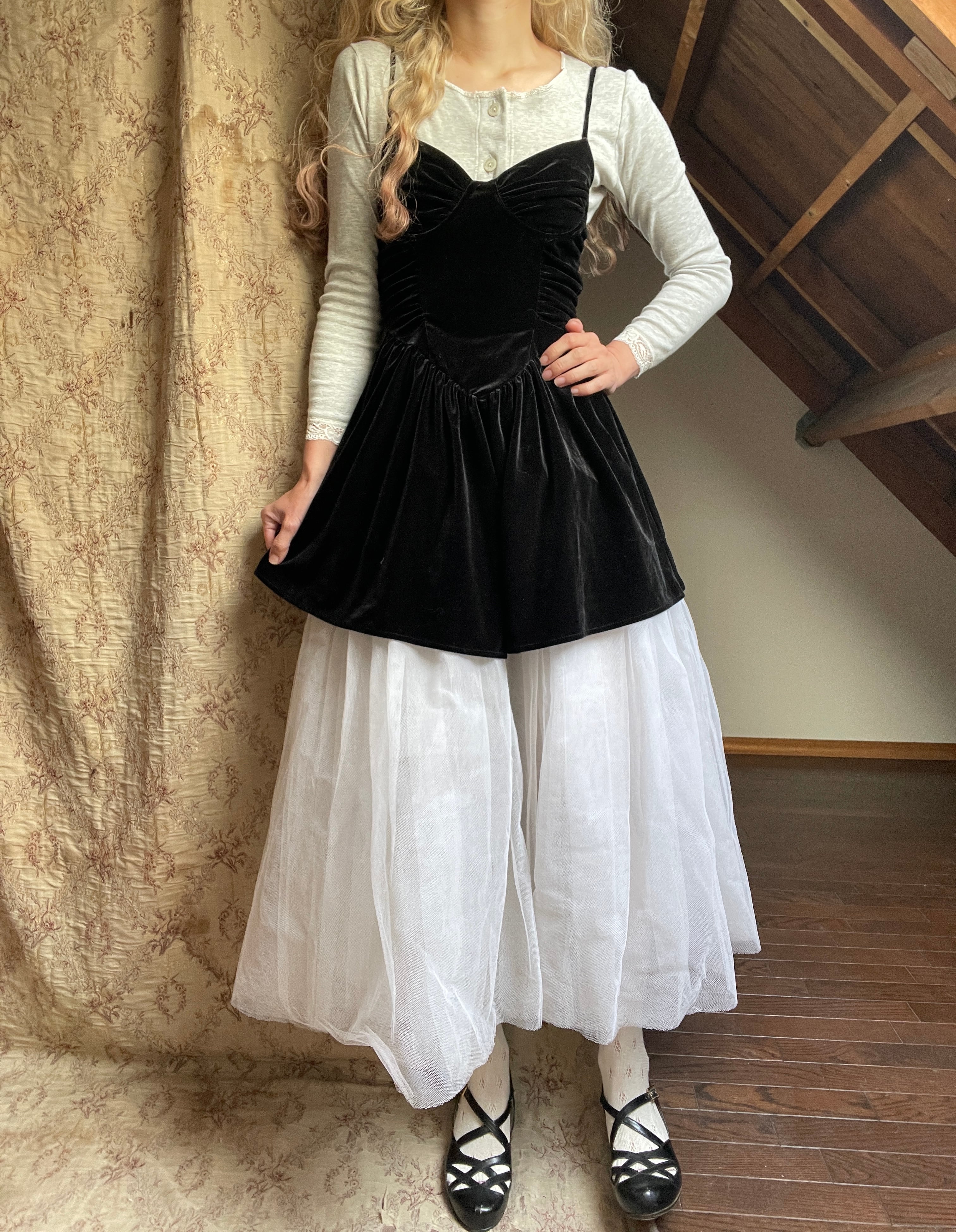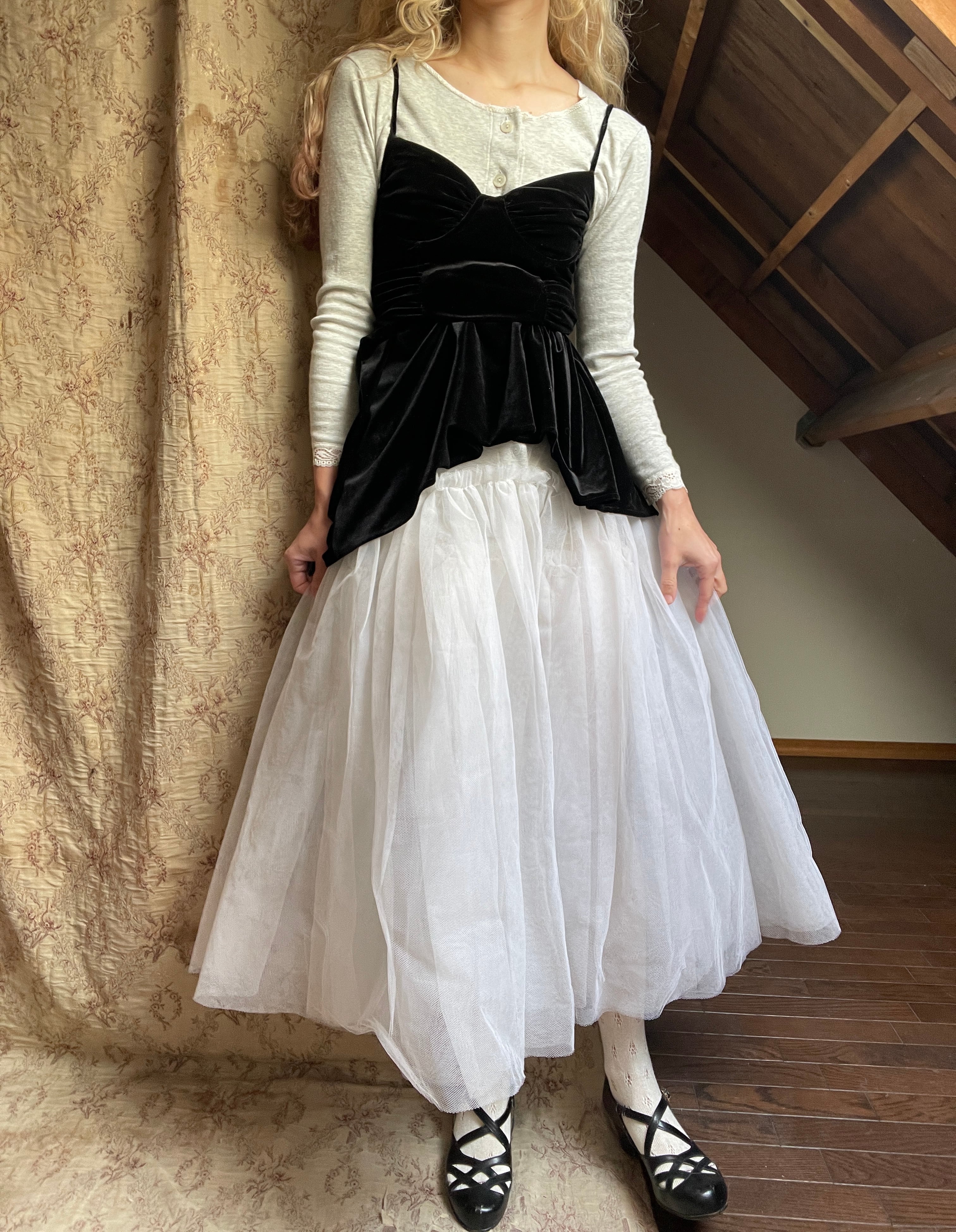 チュールは全部で4層になっておりますが、程よい張りのあるやわらかめなチュールのため横に広がりすぎず、普段使いしやすいかと思います♡