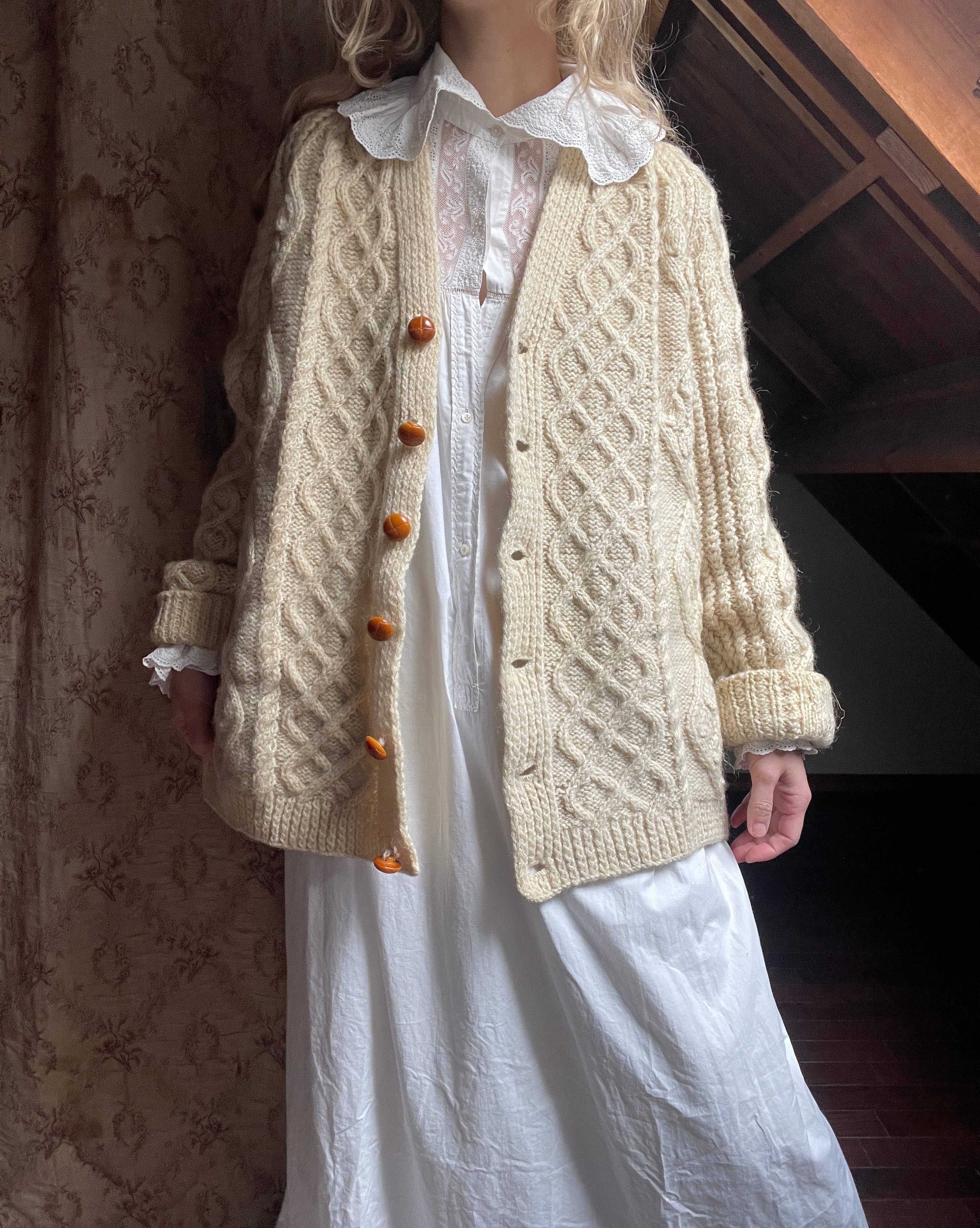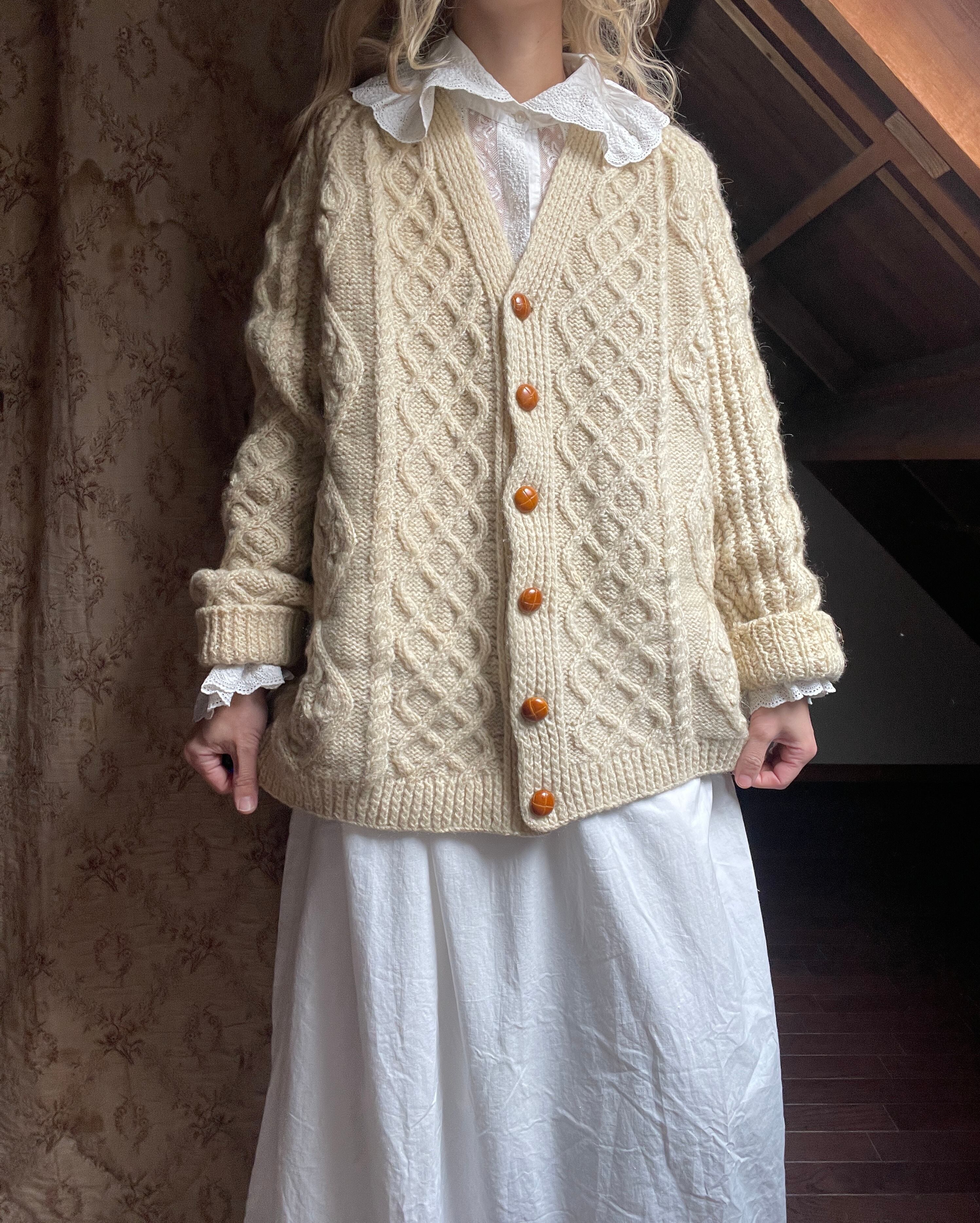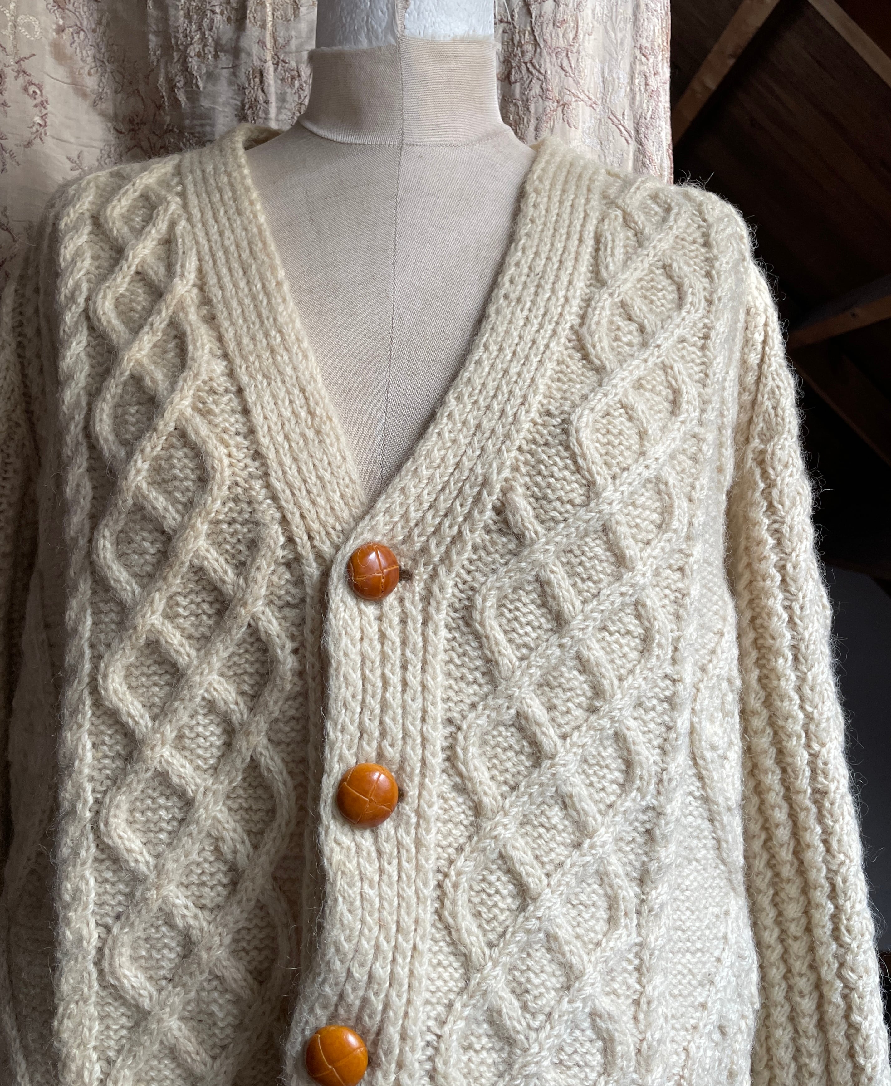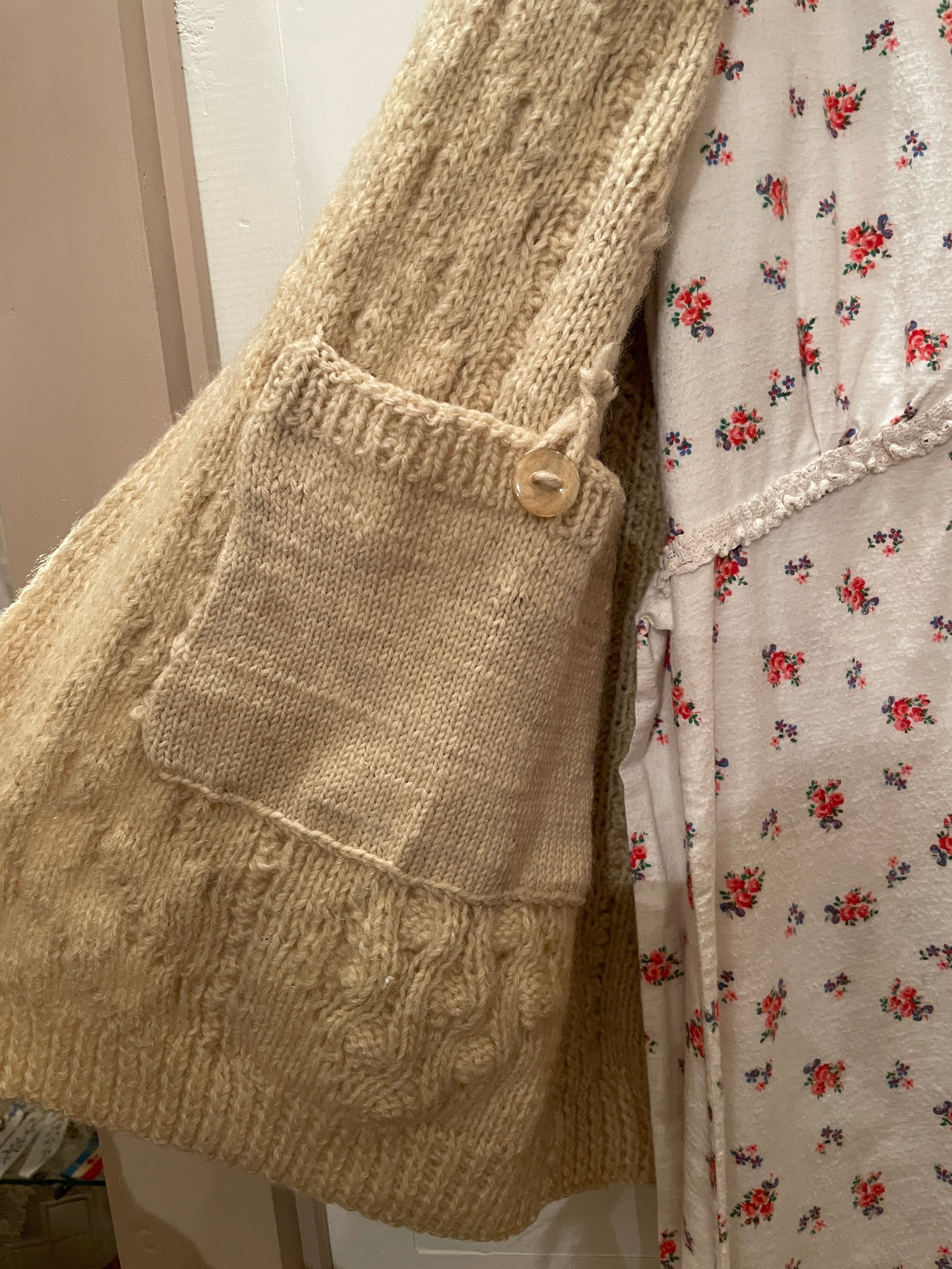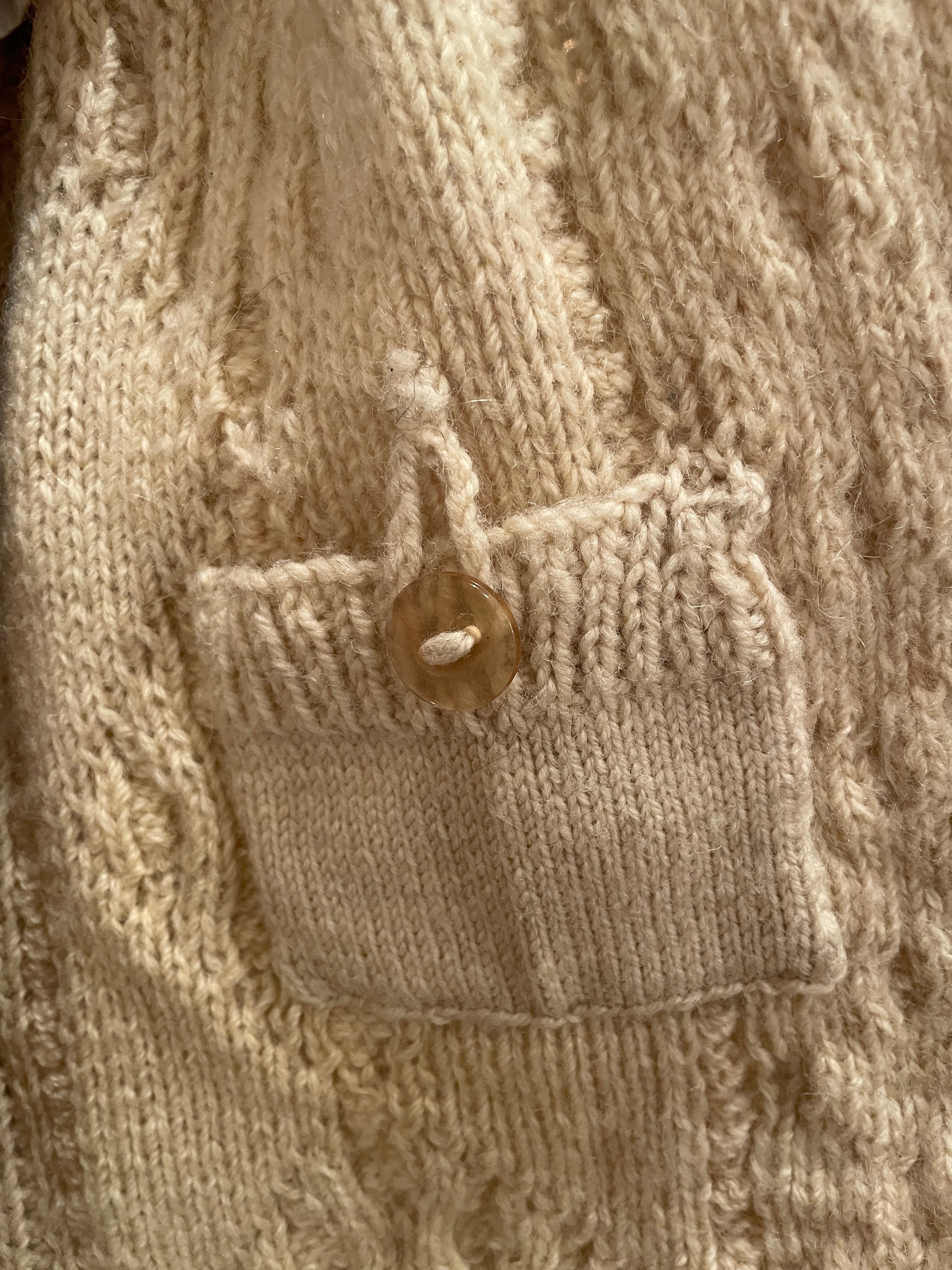 そしてこちらのアランニットには前の持ち主が付け足したのか、右内側には大きなポケットが、左内側には小さめなポケットが付いているんです♡