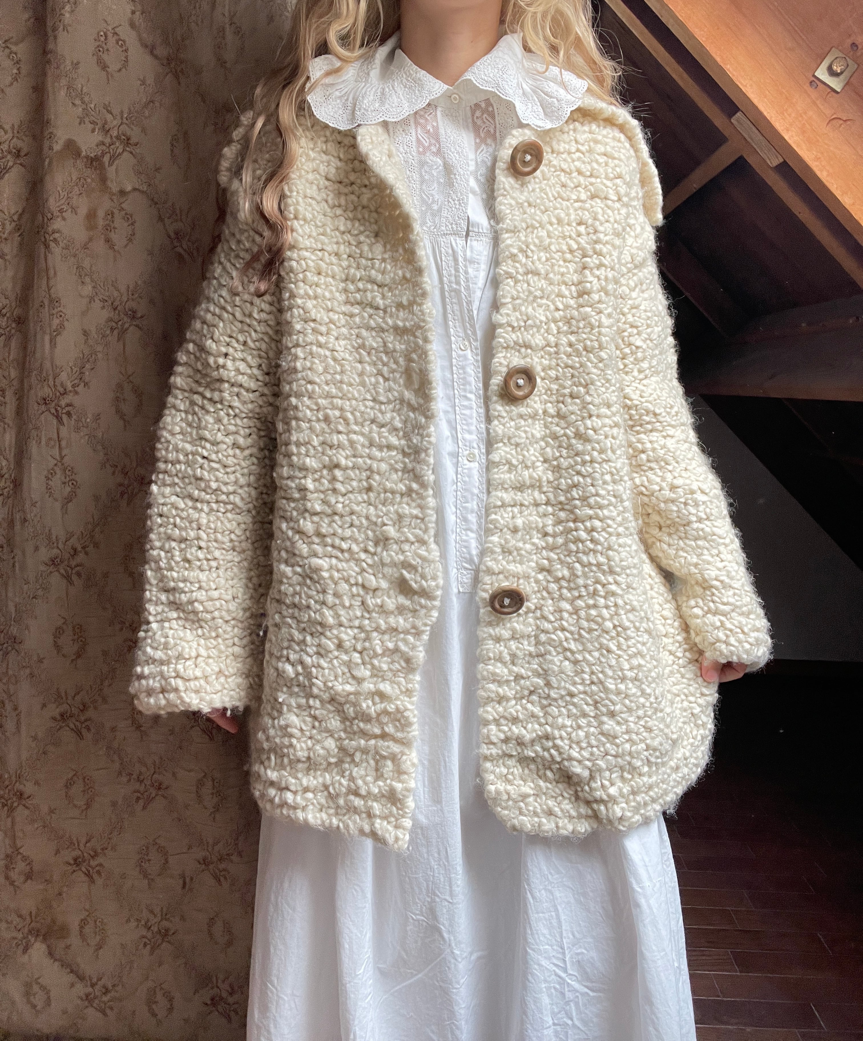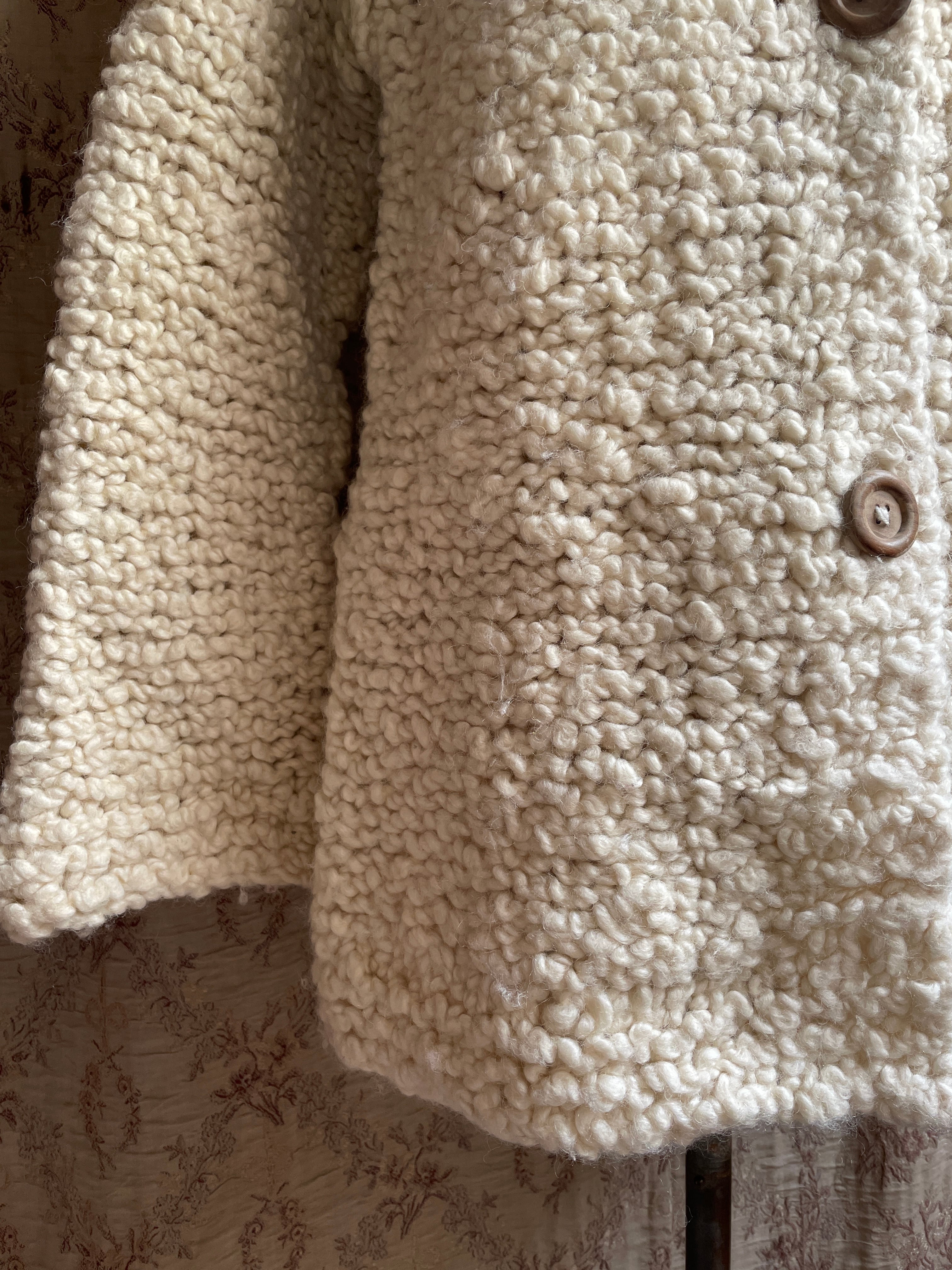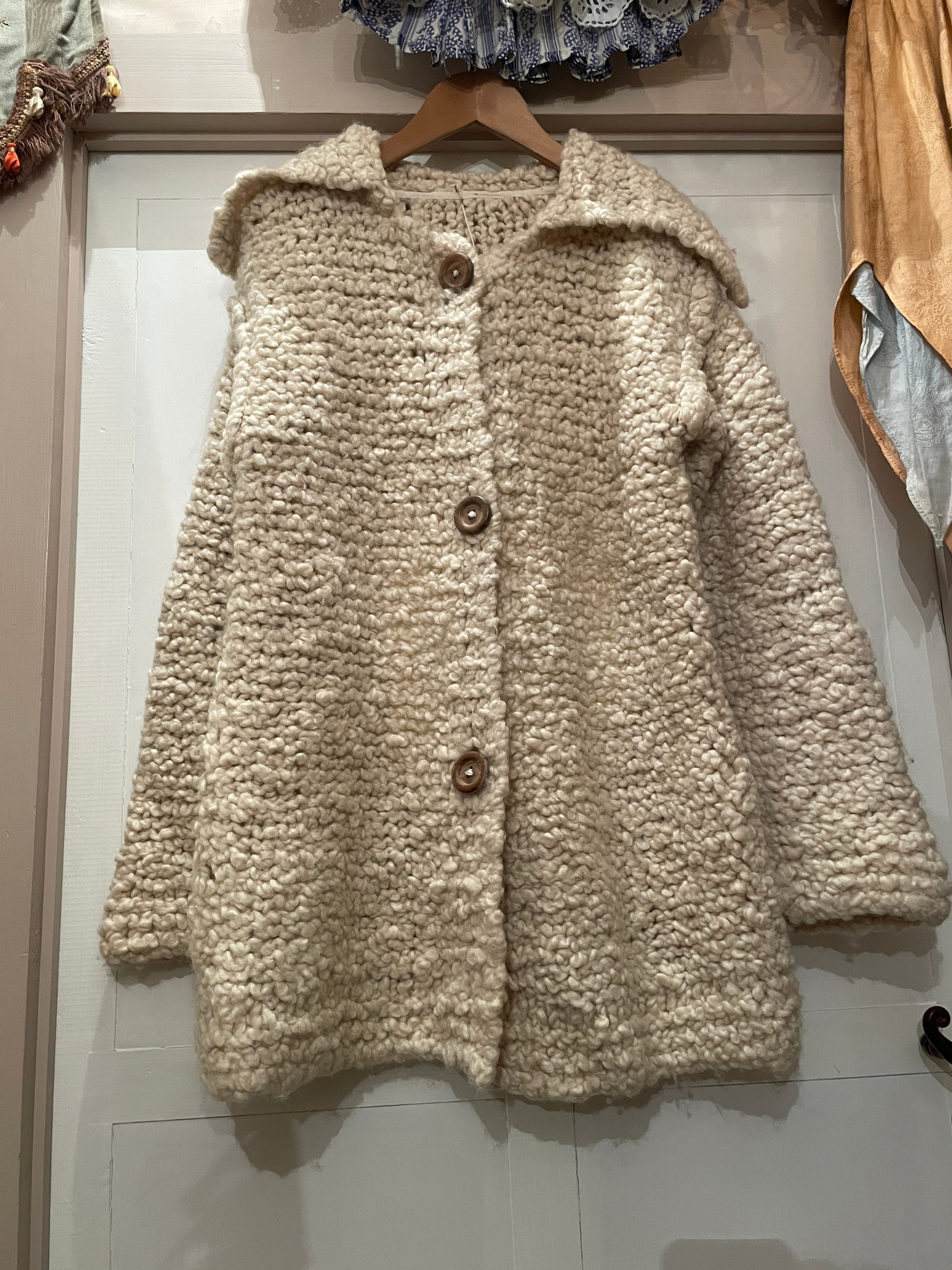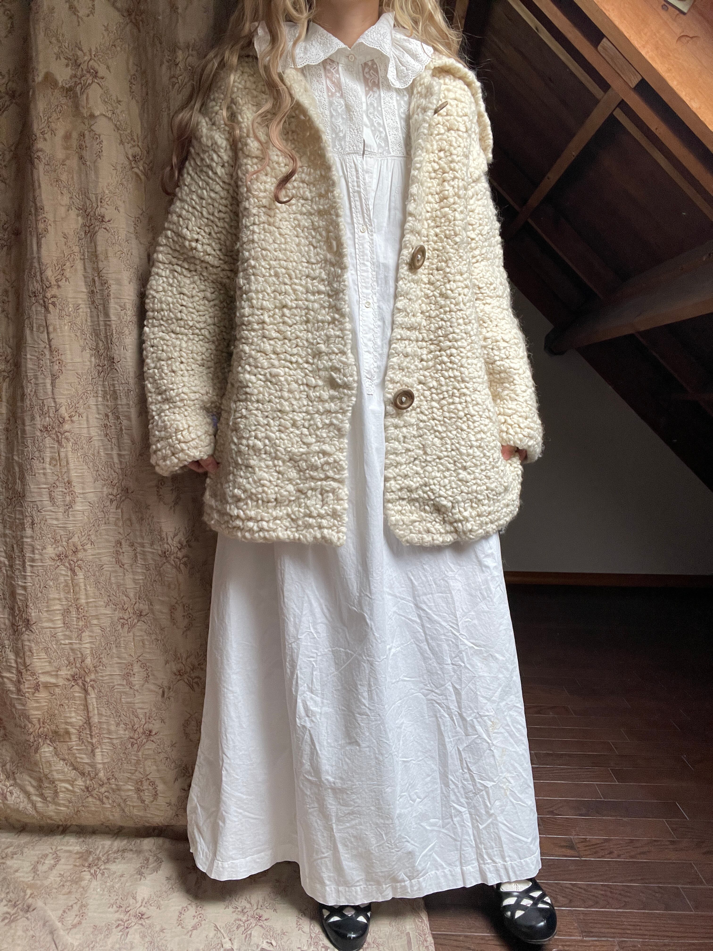 ベルギー買い付けのハンドニットのカーディガン♡太めの毛糸で編まれており、モコモコと羊のようなお色と肌触りが可愛い♡