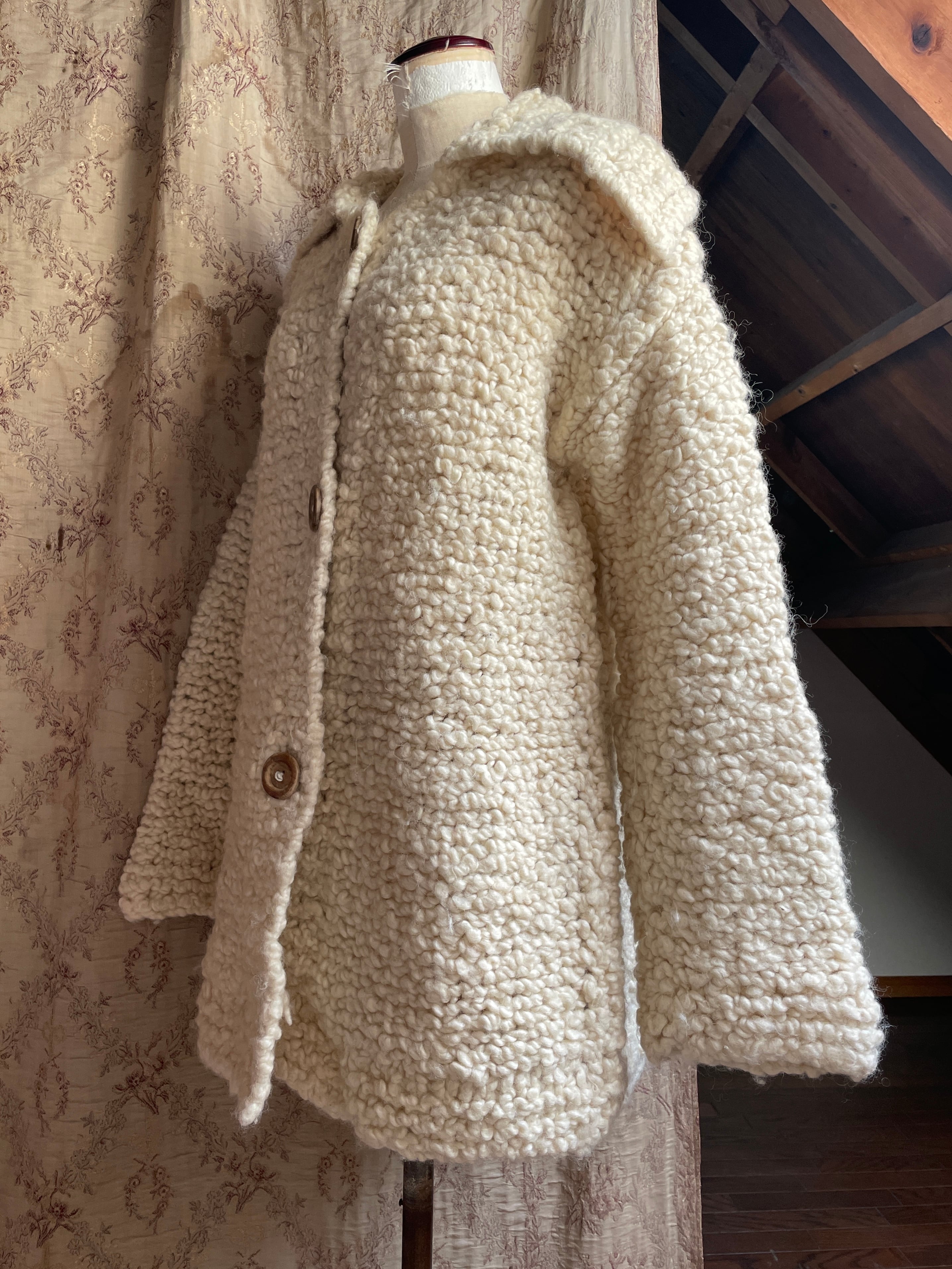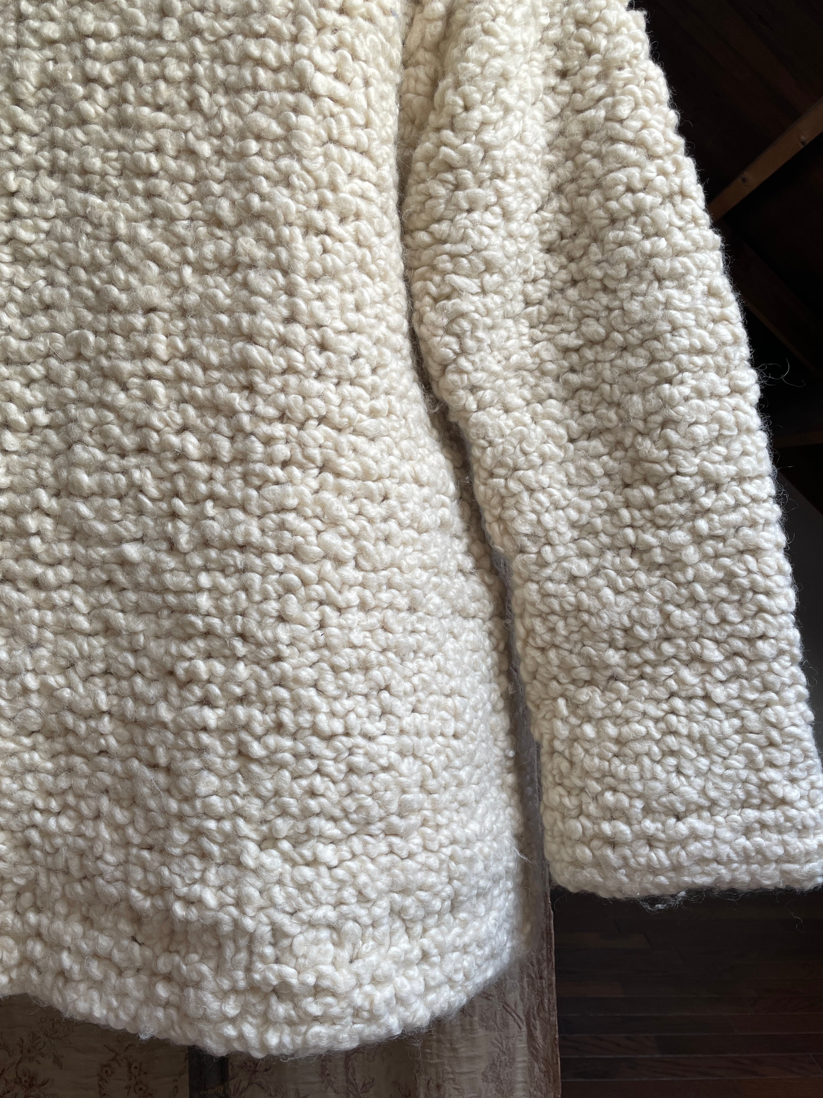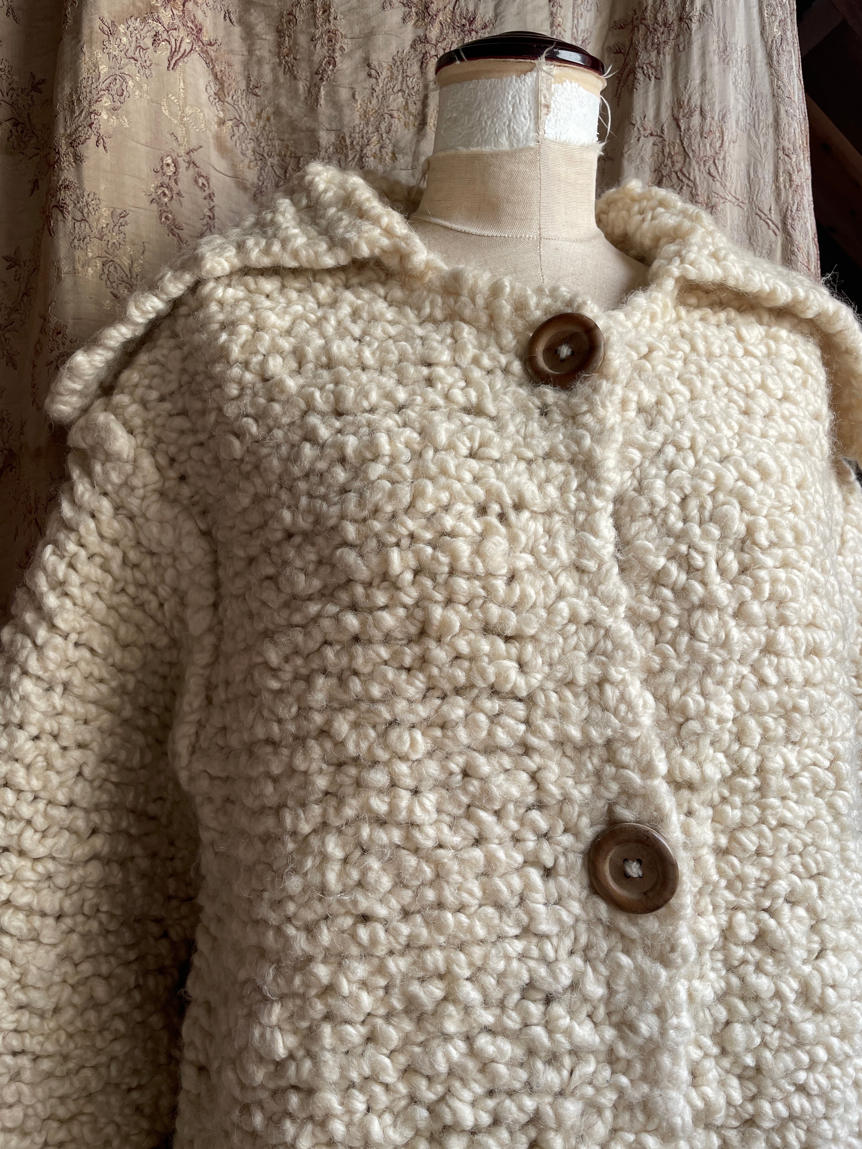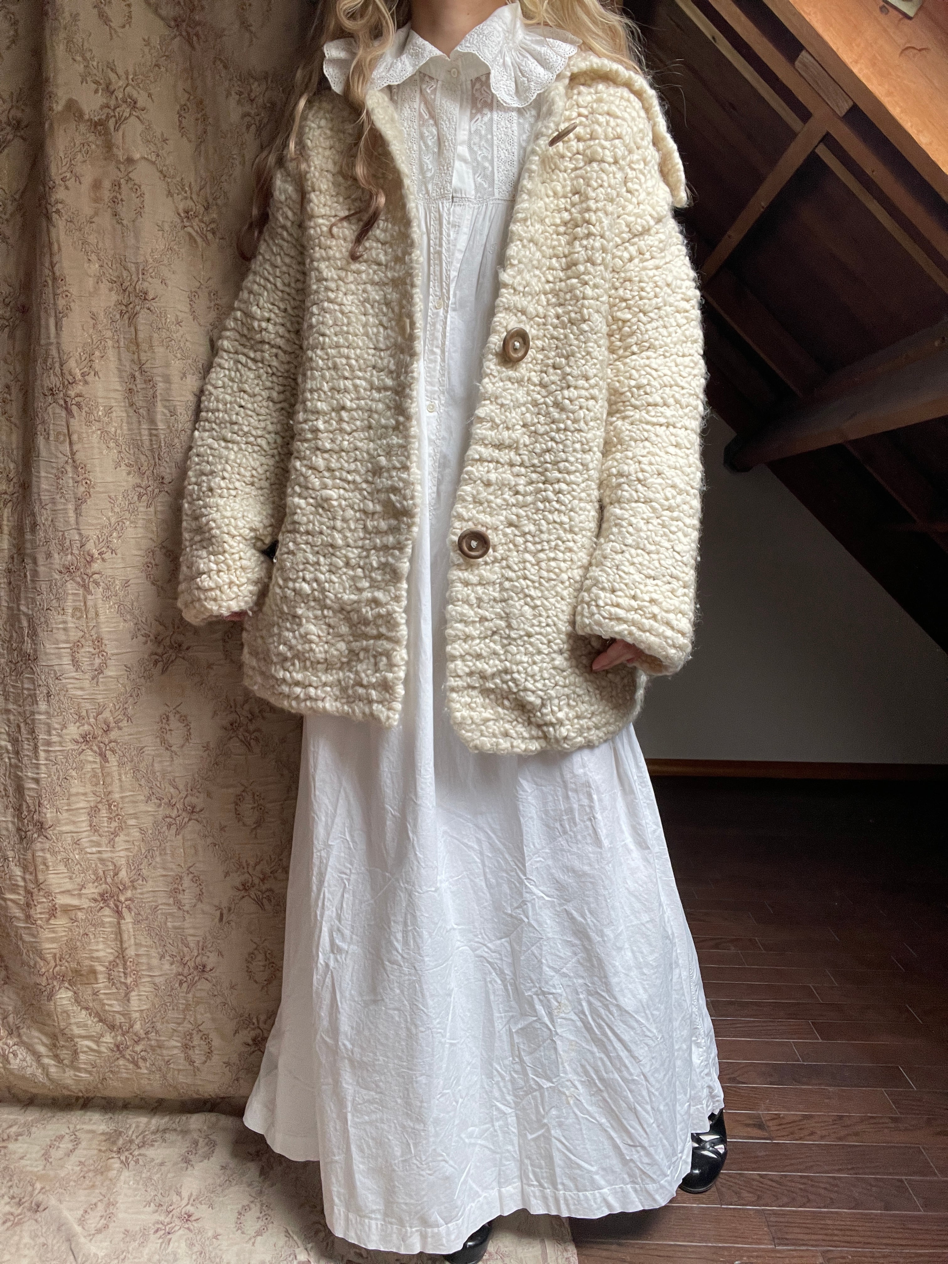 ベルギー買い付けのハンドニットのカーディガン♡太めの毛糸で編まれており、モコモコと羊のようなお色と肌触りが可愛い♡