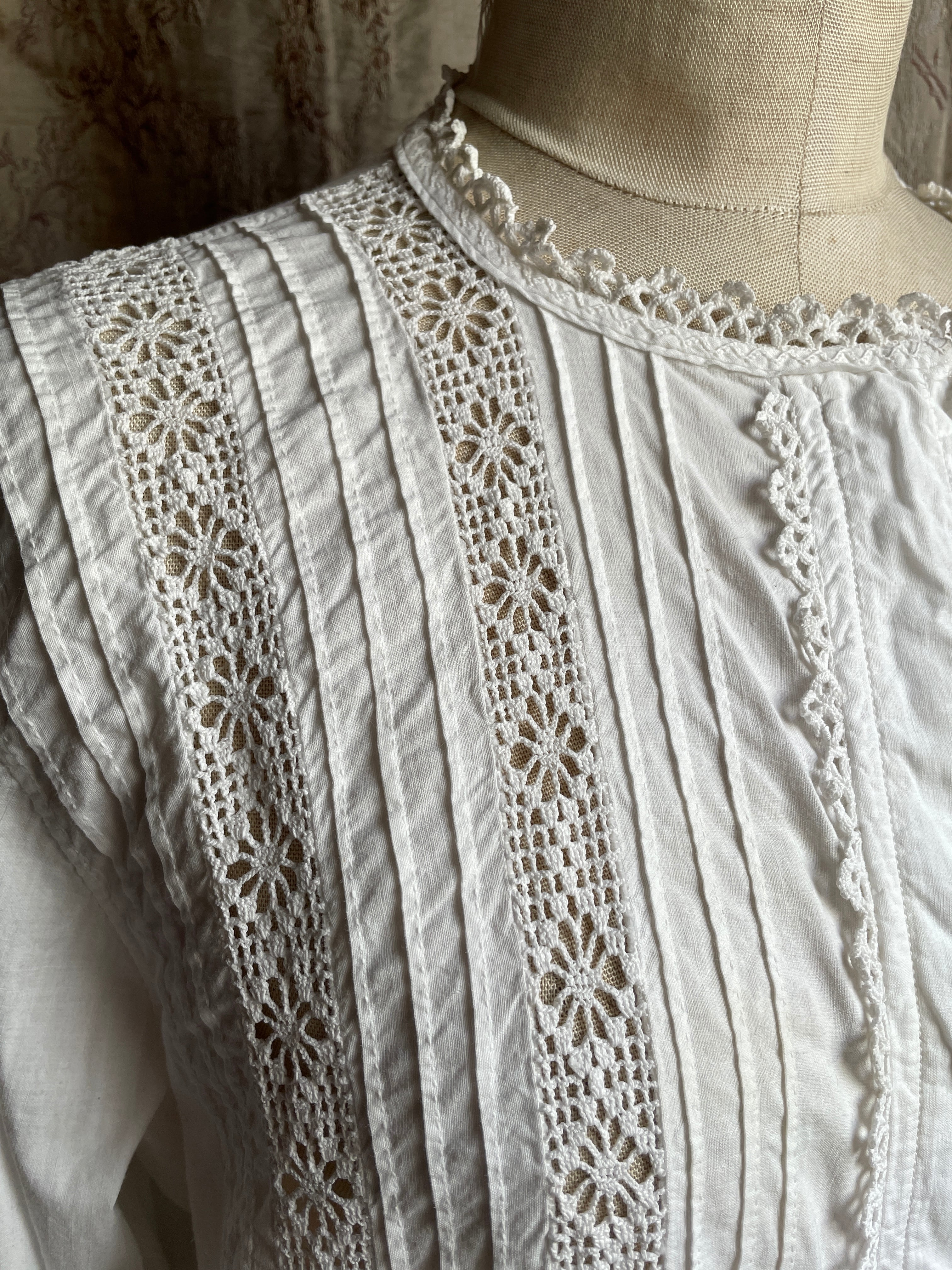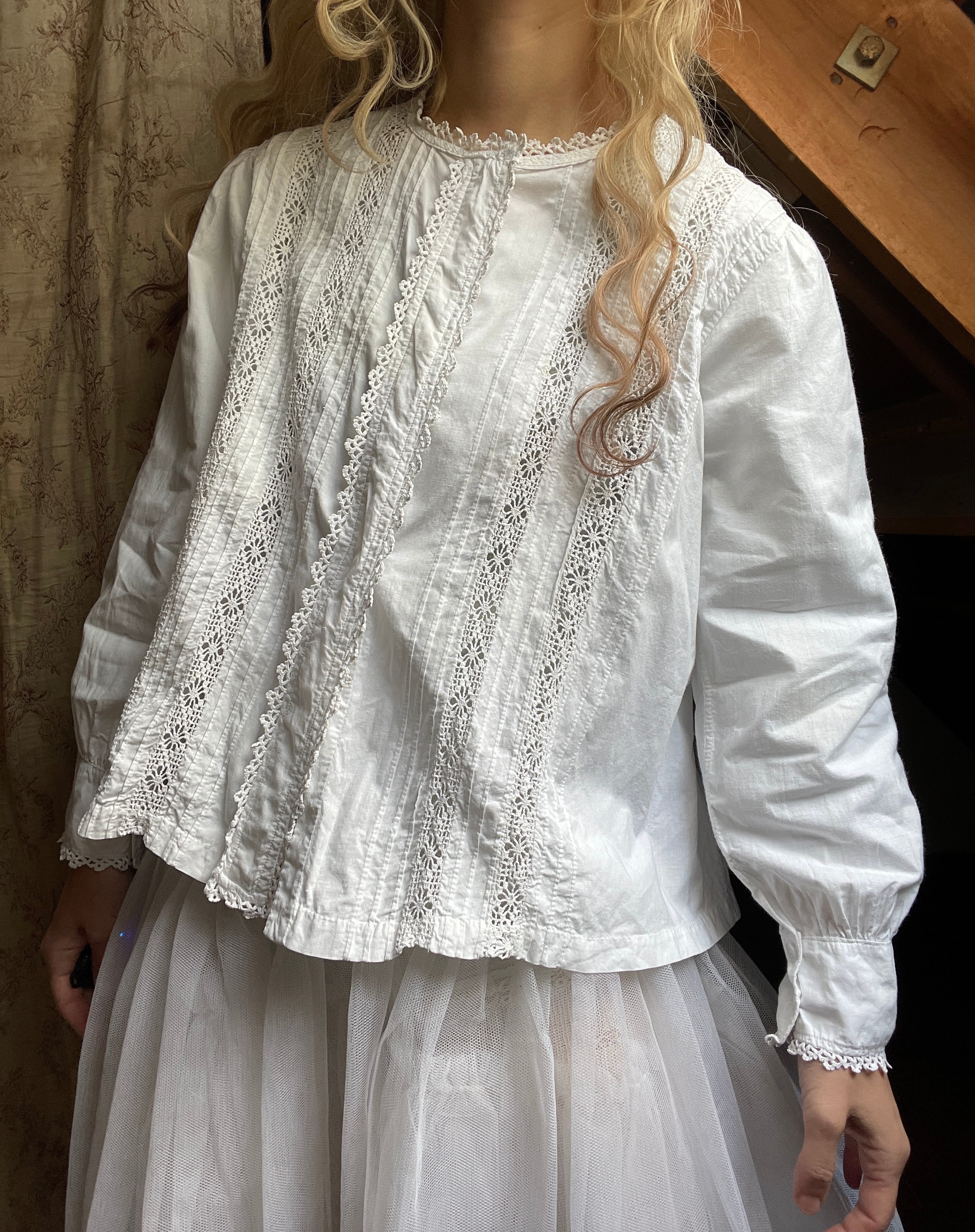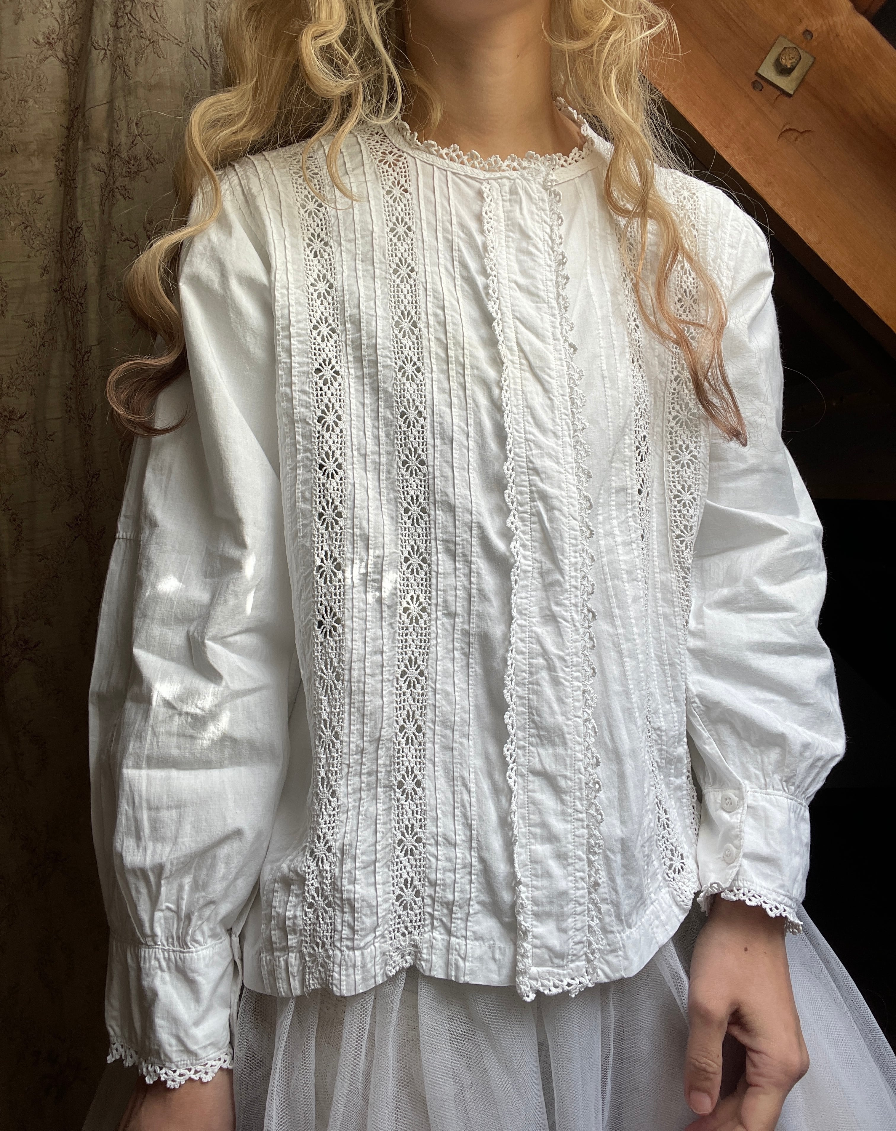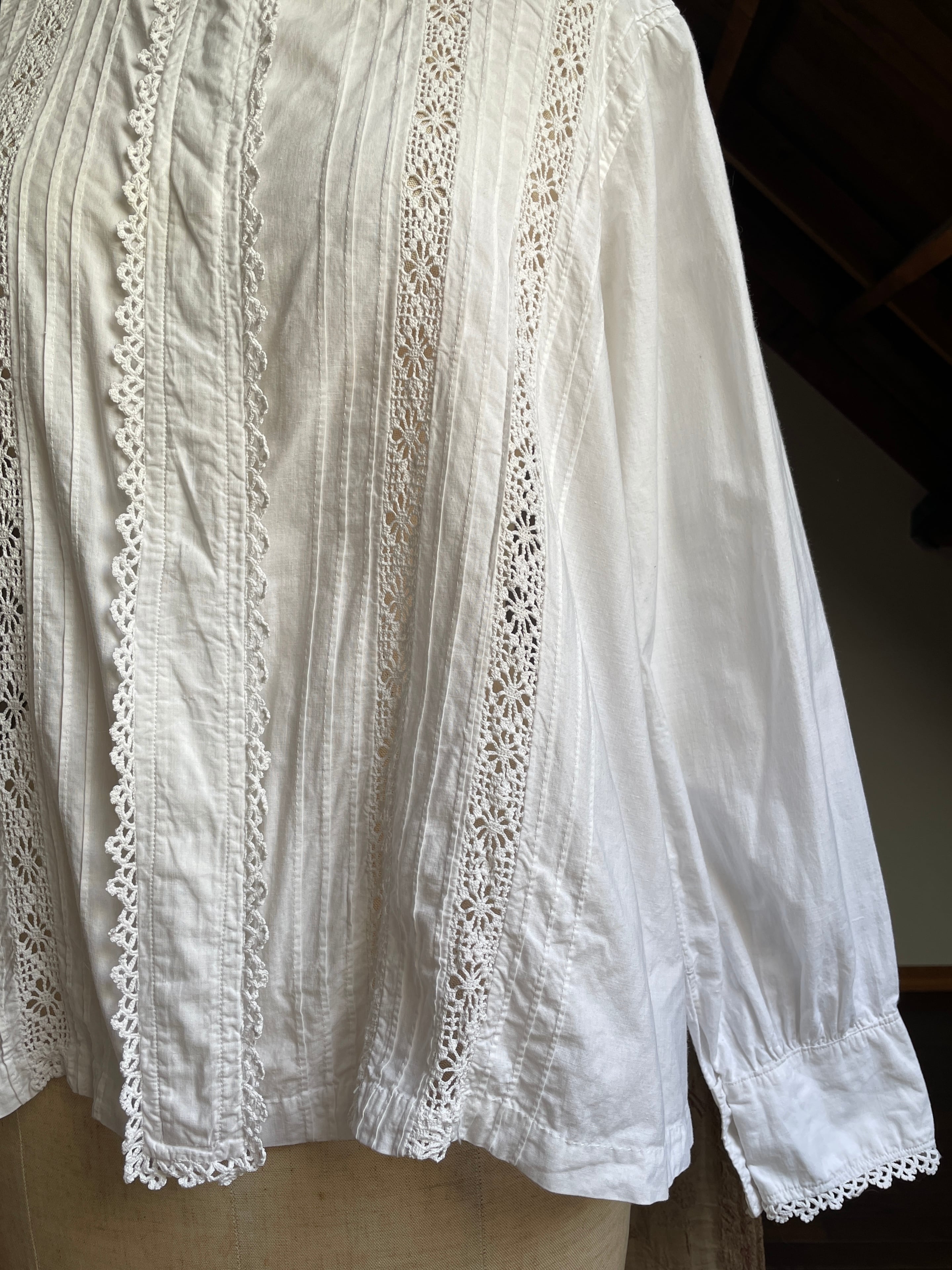 vintage crochet lace tuck blouse