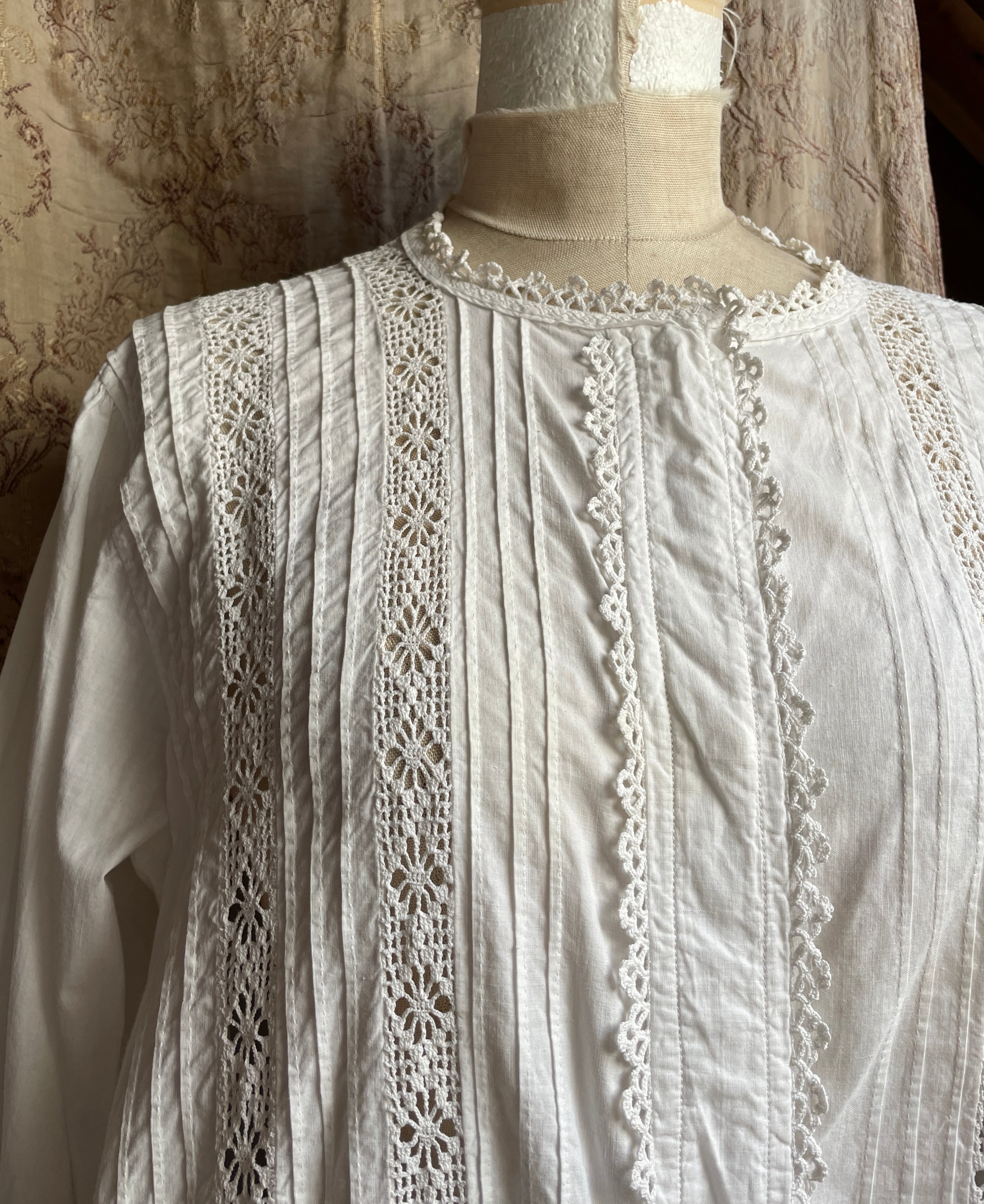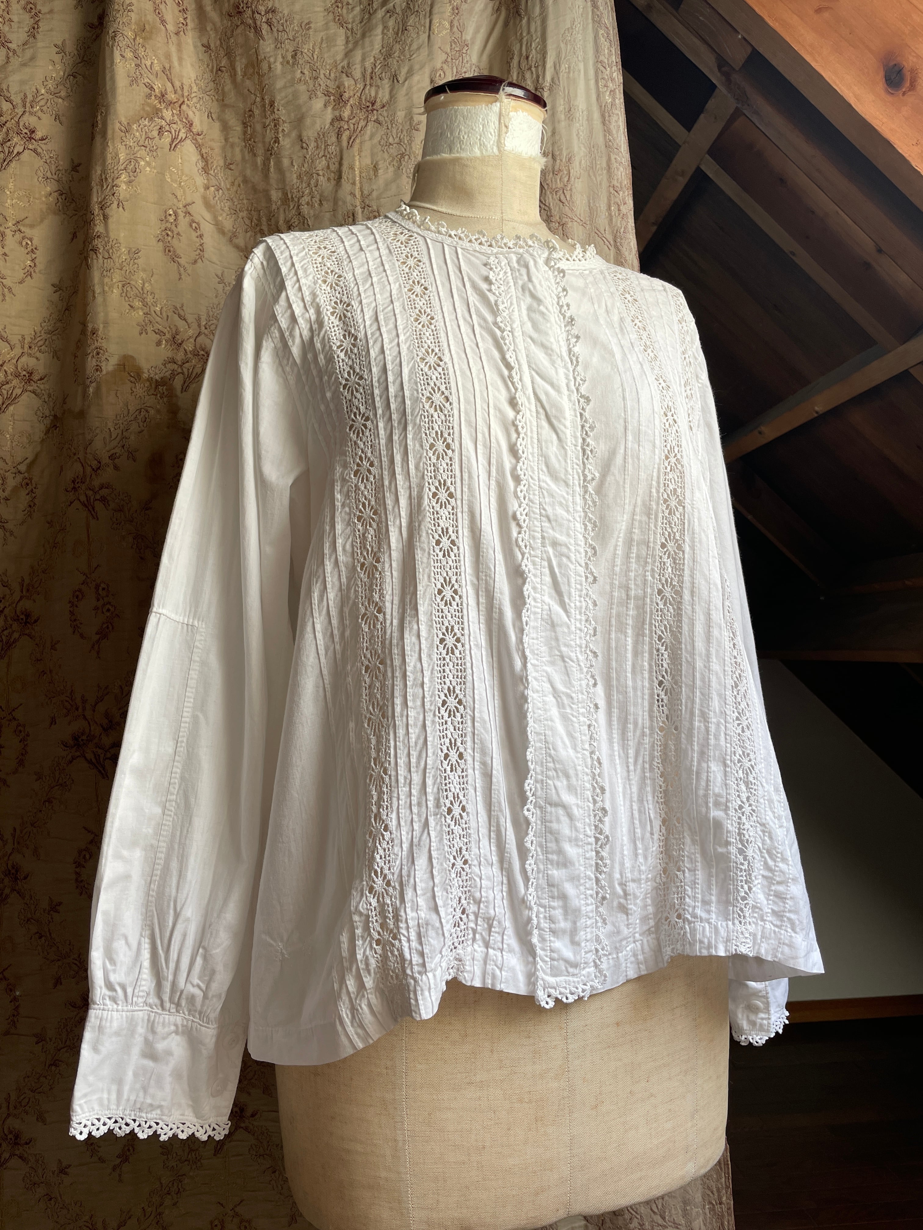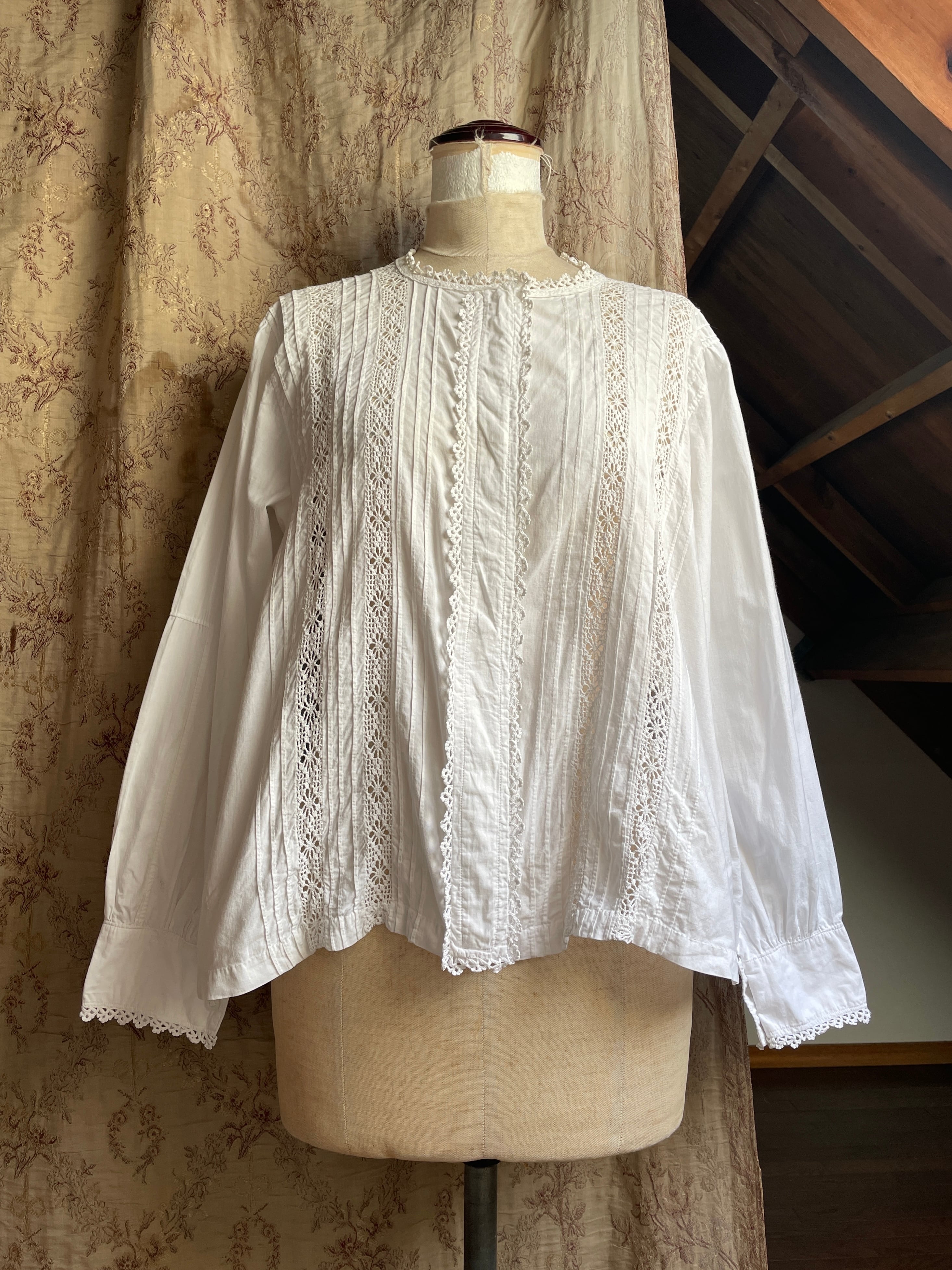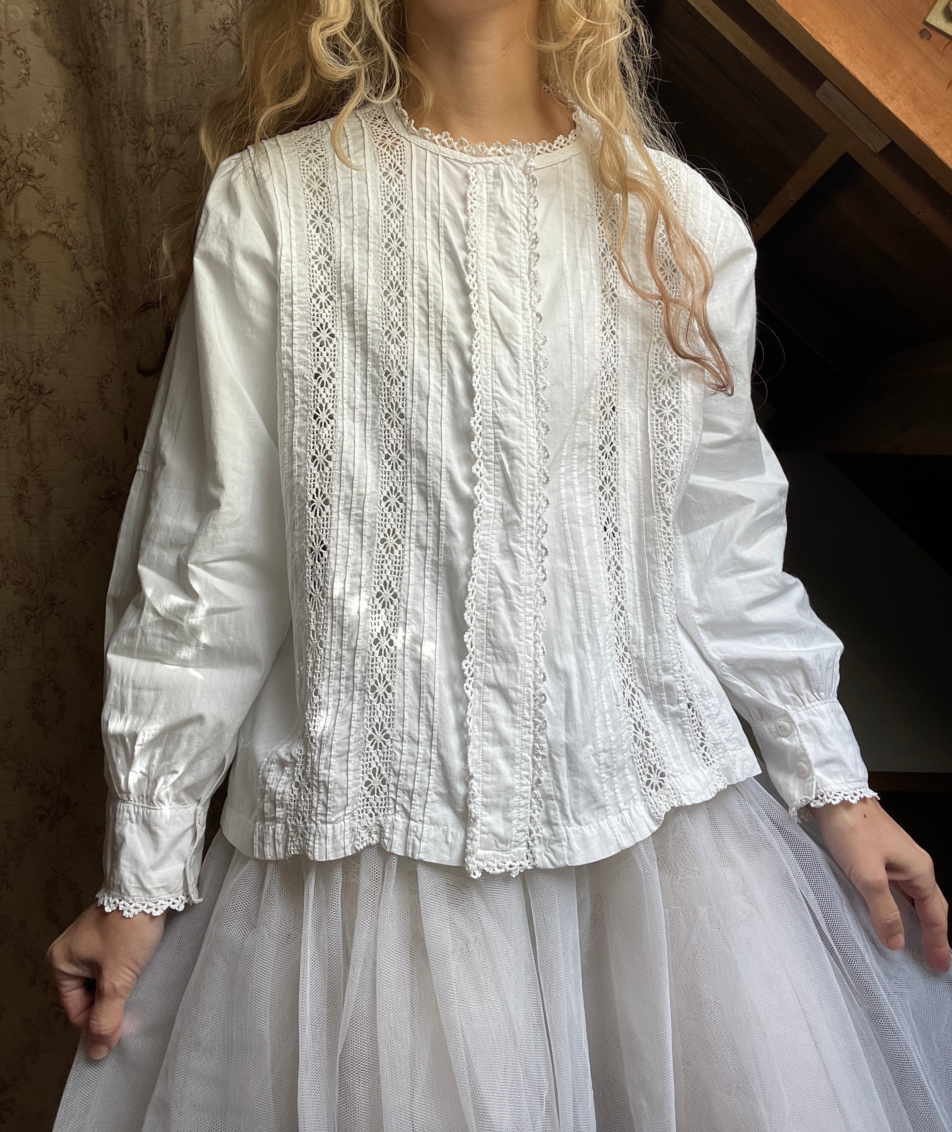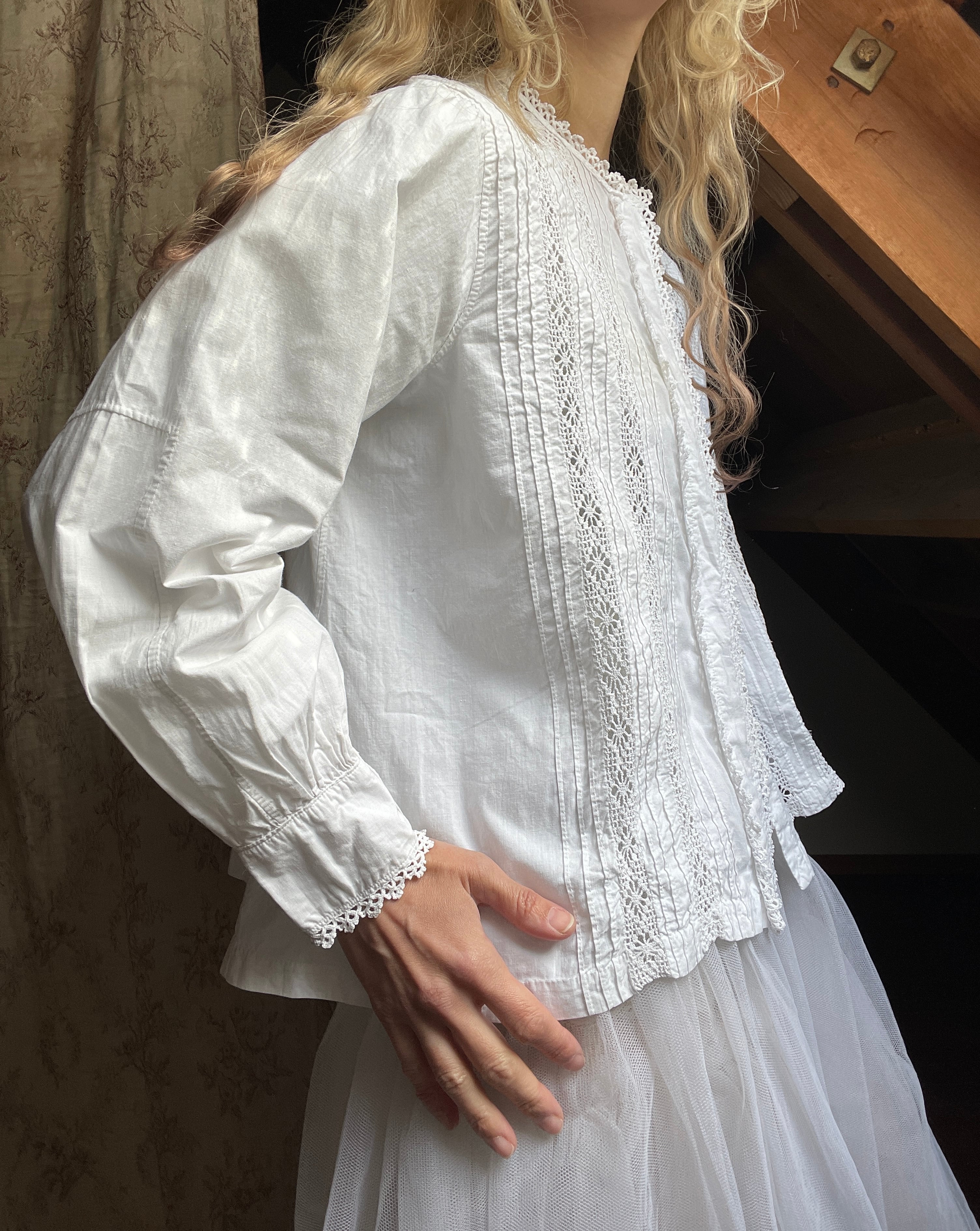 vintage crochet lace tuck blouse