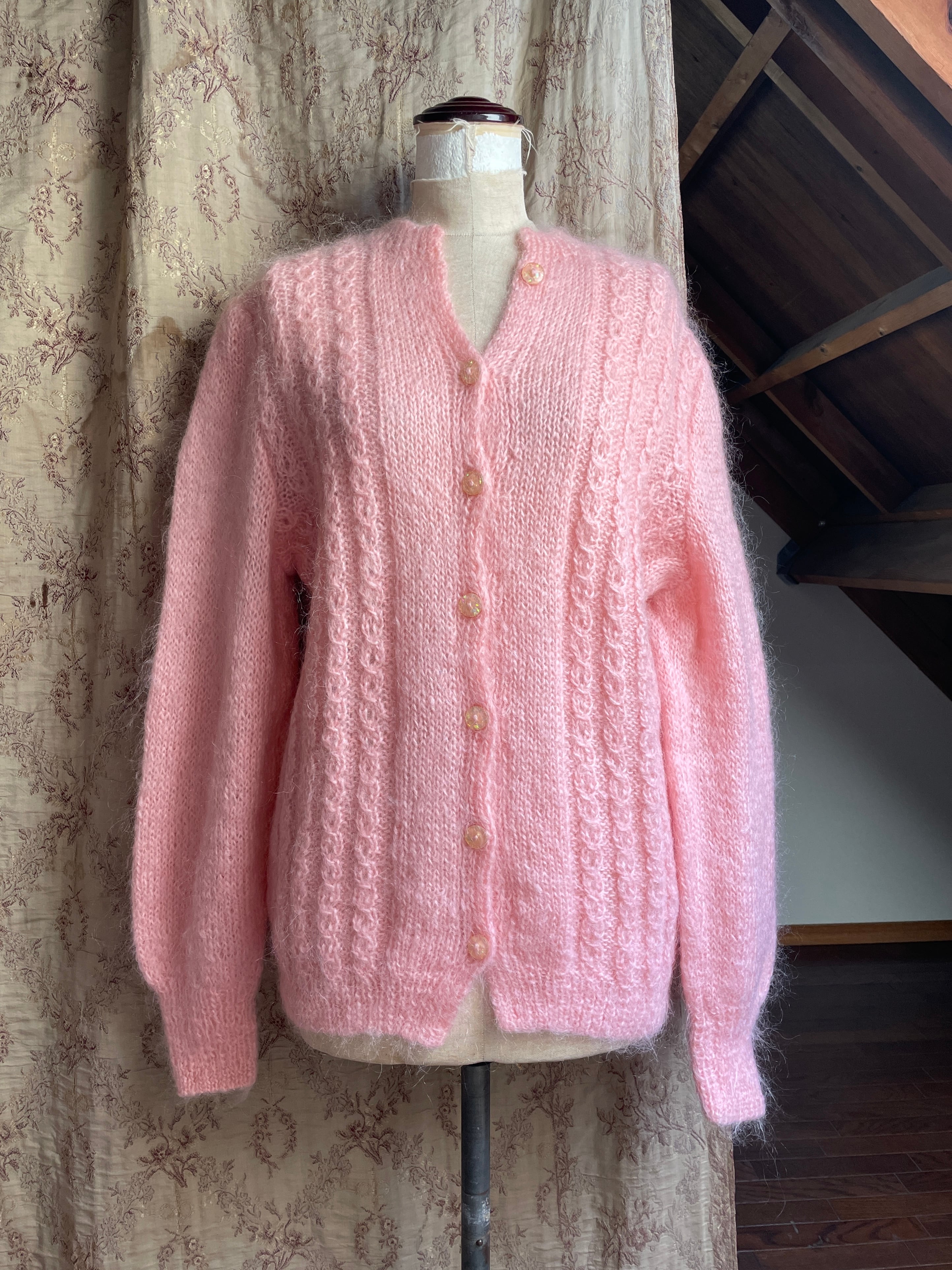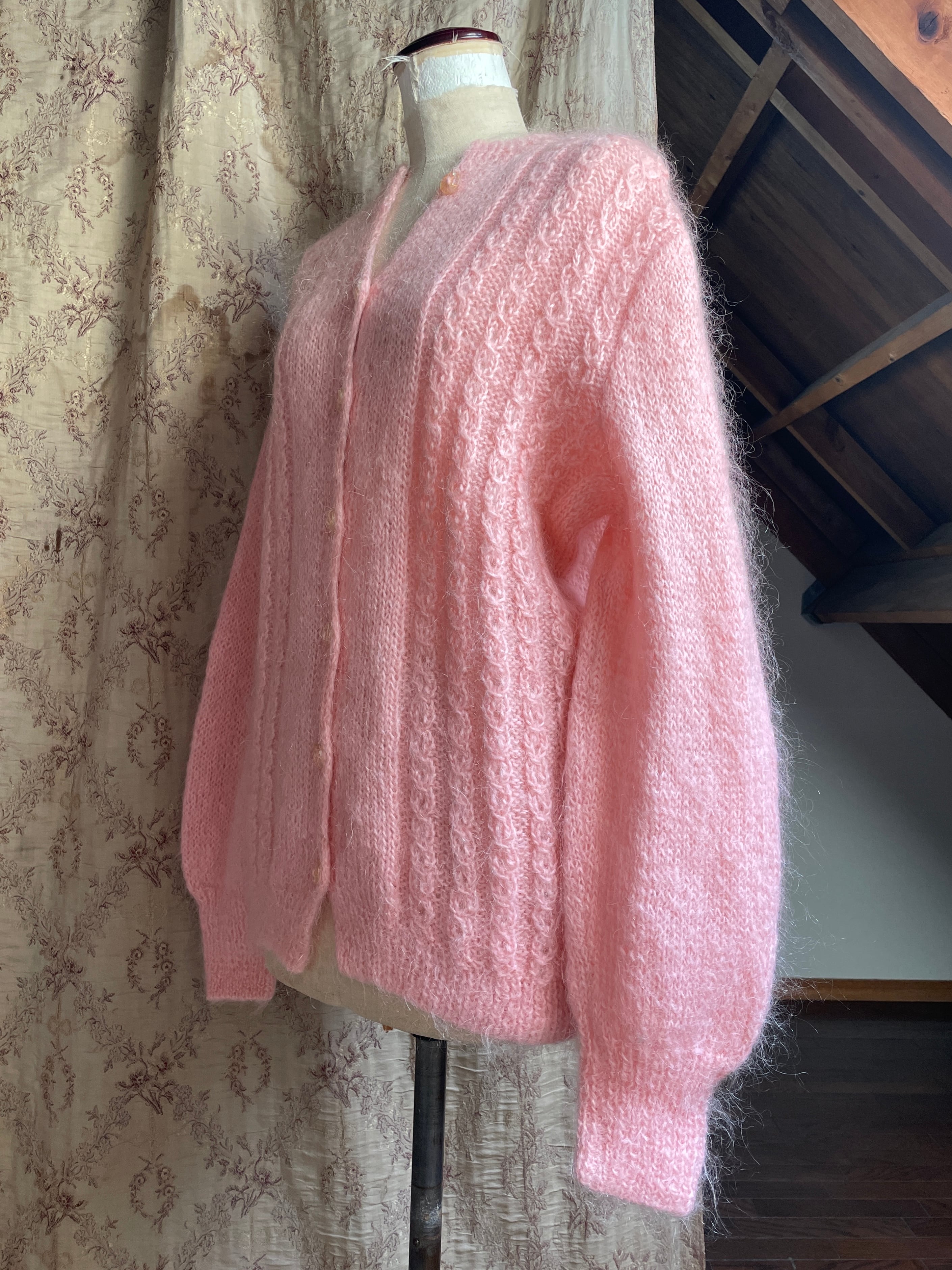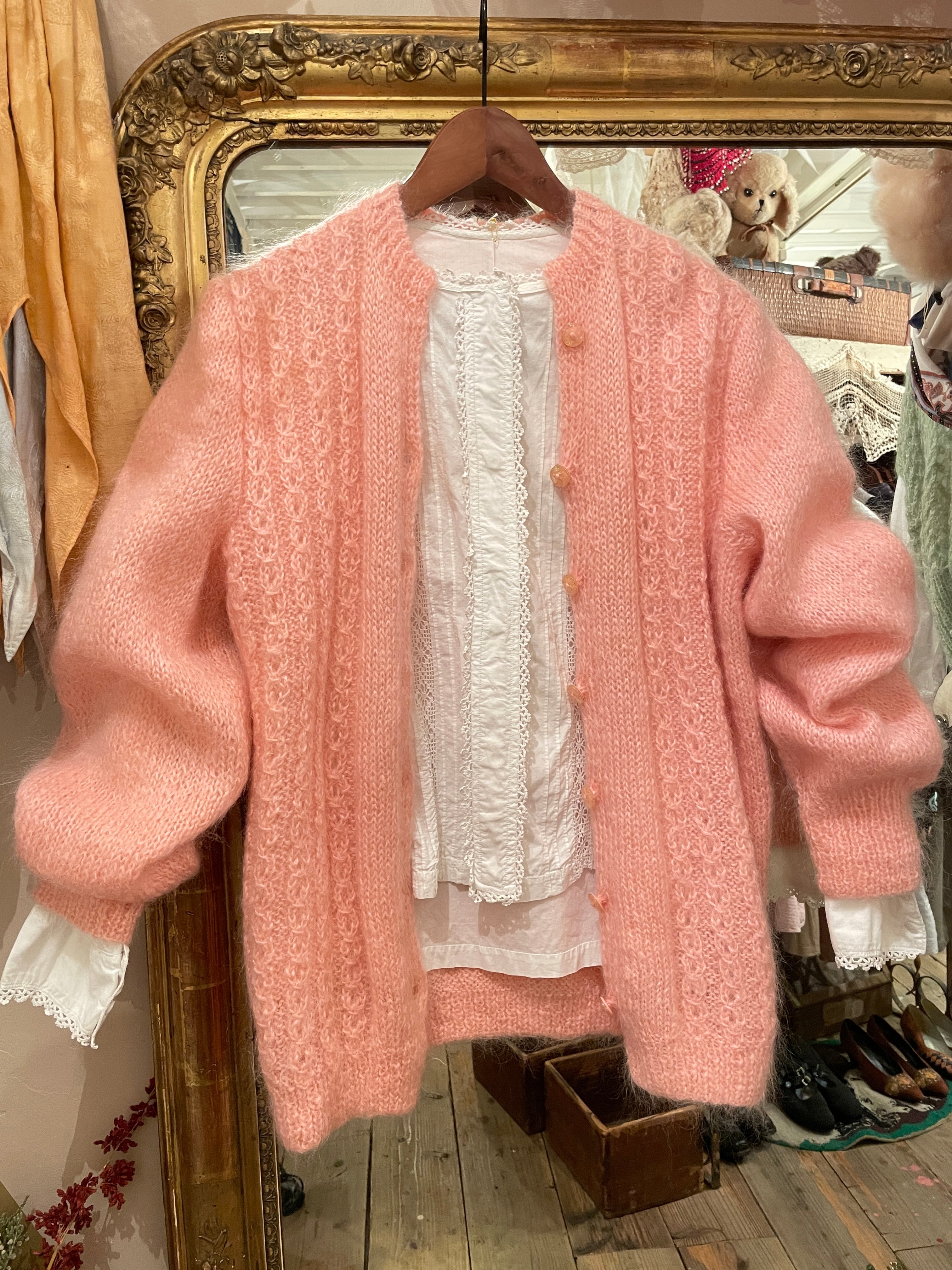 vintage pink mohair cardigan