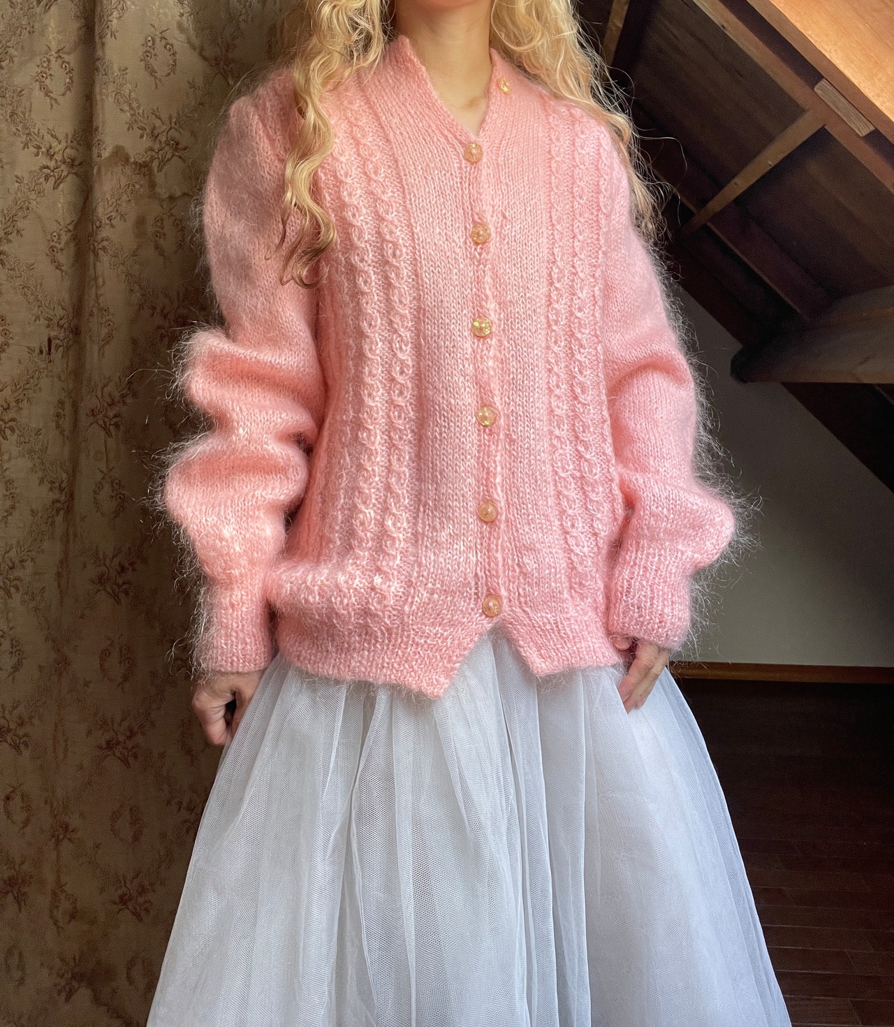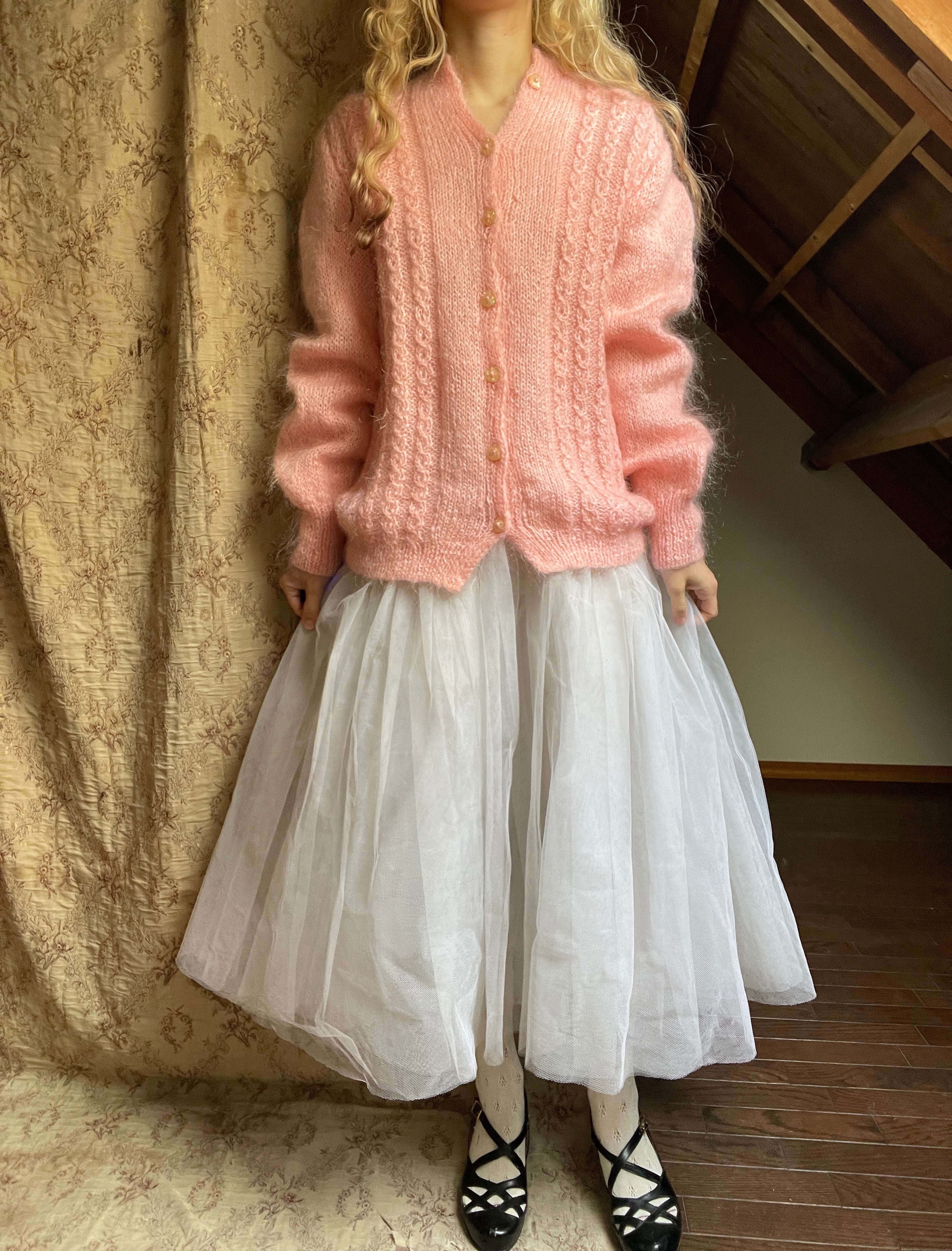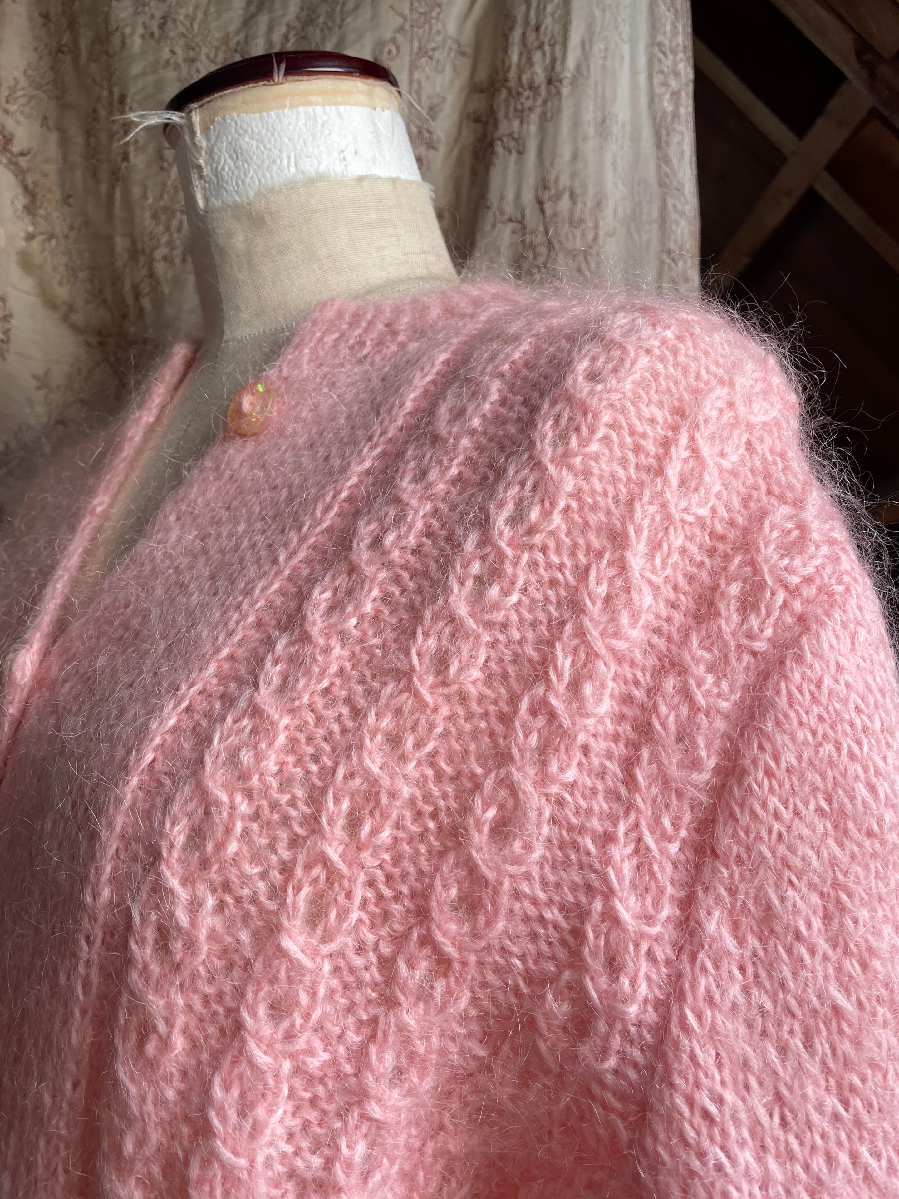 vintage pink mohair cardigan