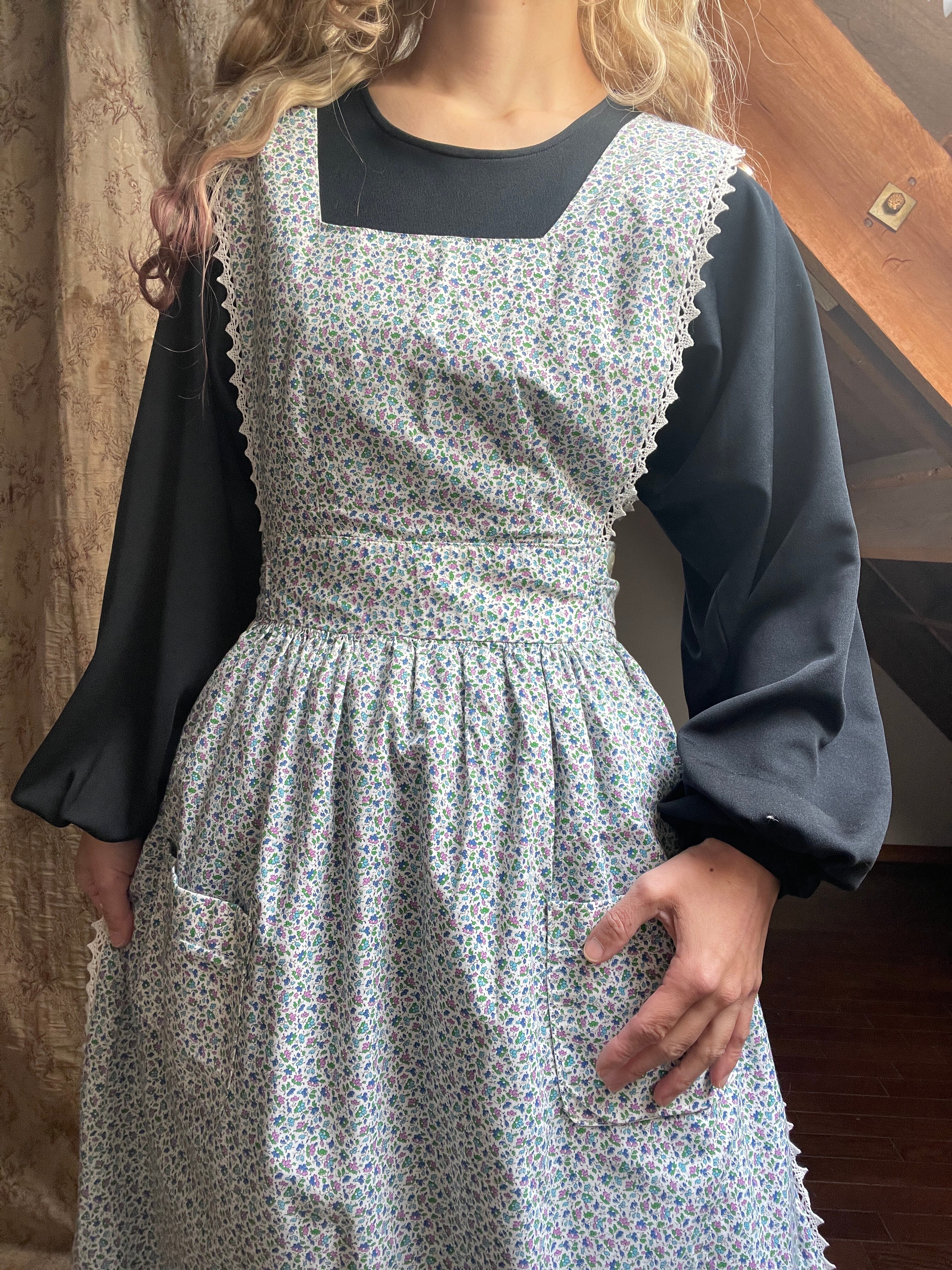 ウエストにリボンがついているので、結ぶことで後ろ姿までかわいく仕上がります♡おそらくコットンかと思われる生地なので、扱いやすく、お好みのドレスやブラウスの上から重ねて様々なコーディネートを楽しめます♡