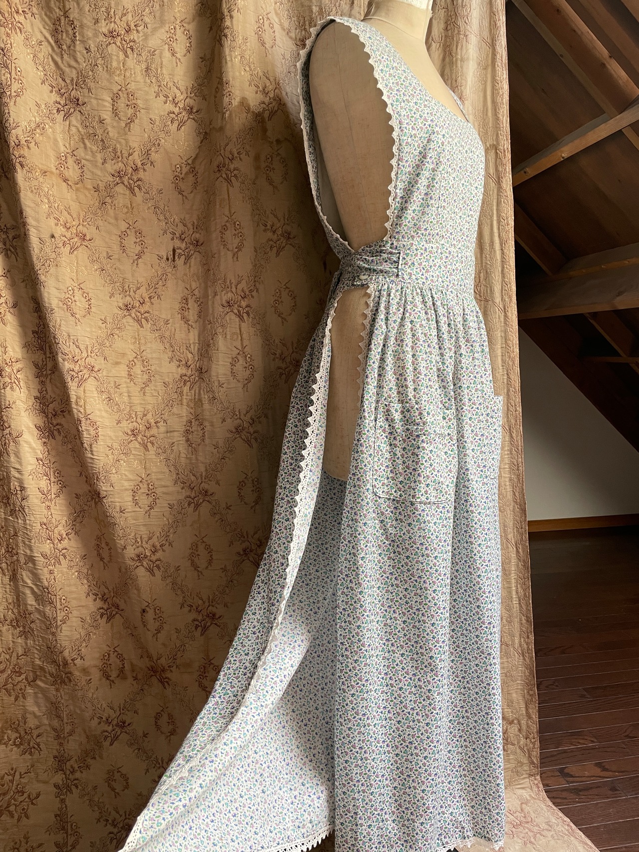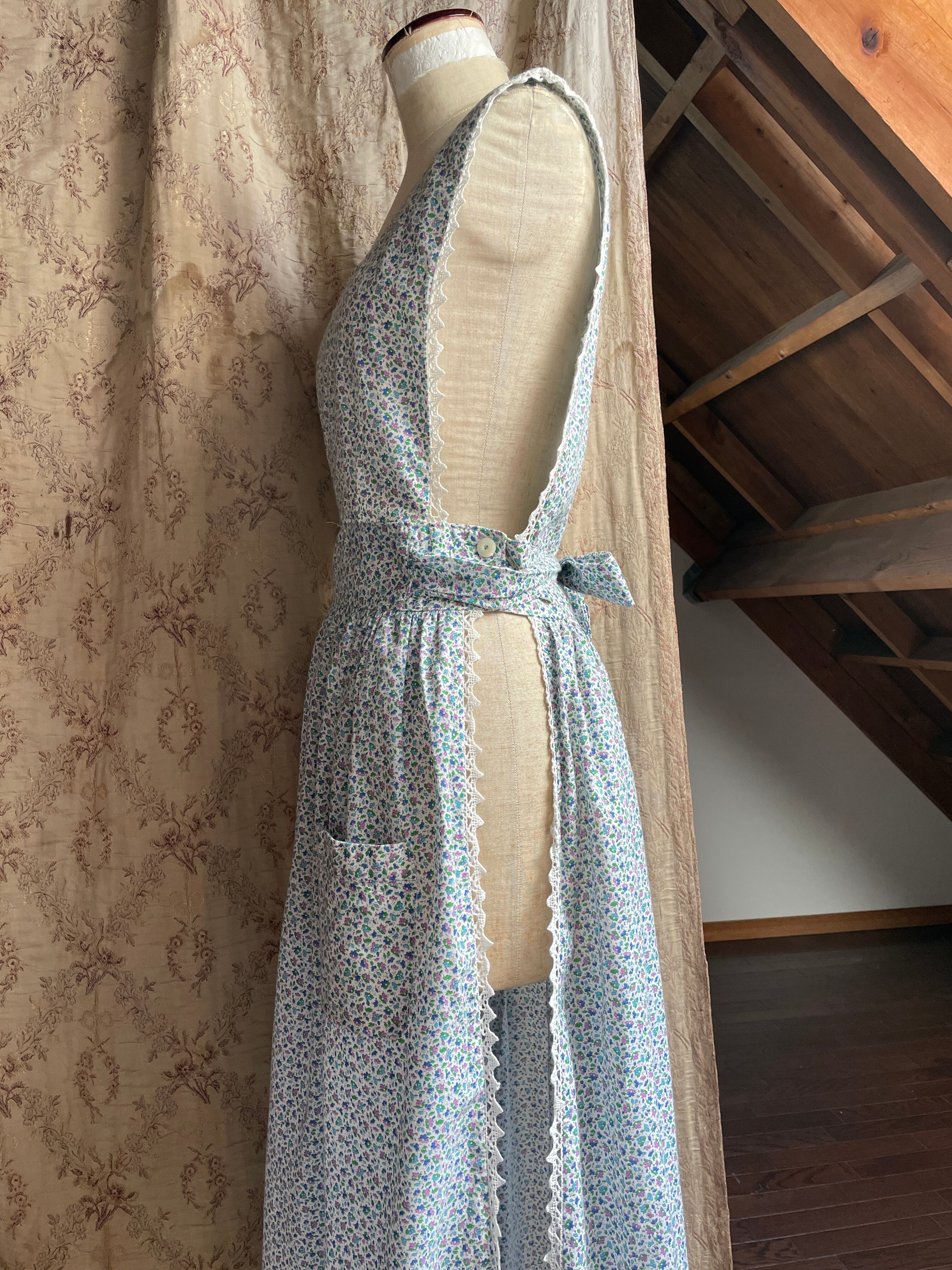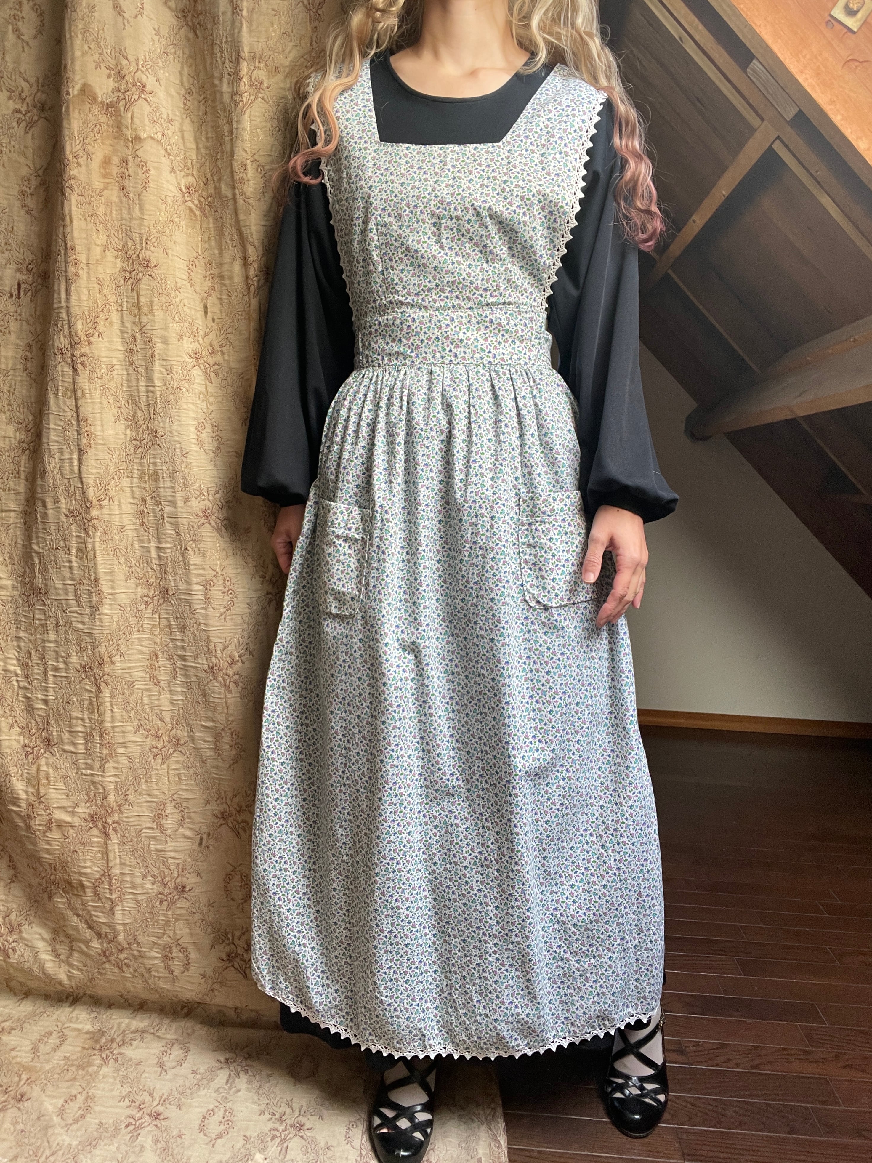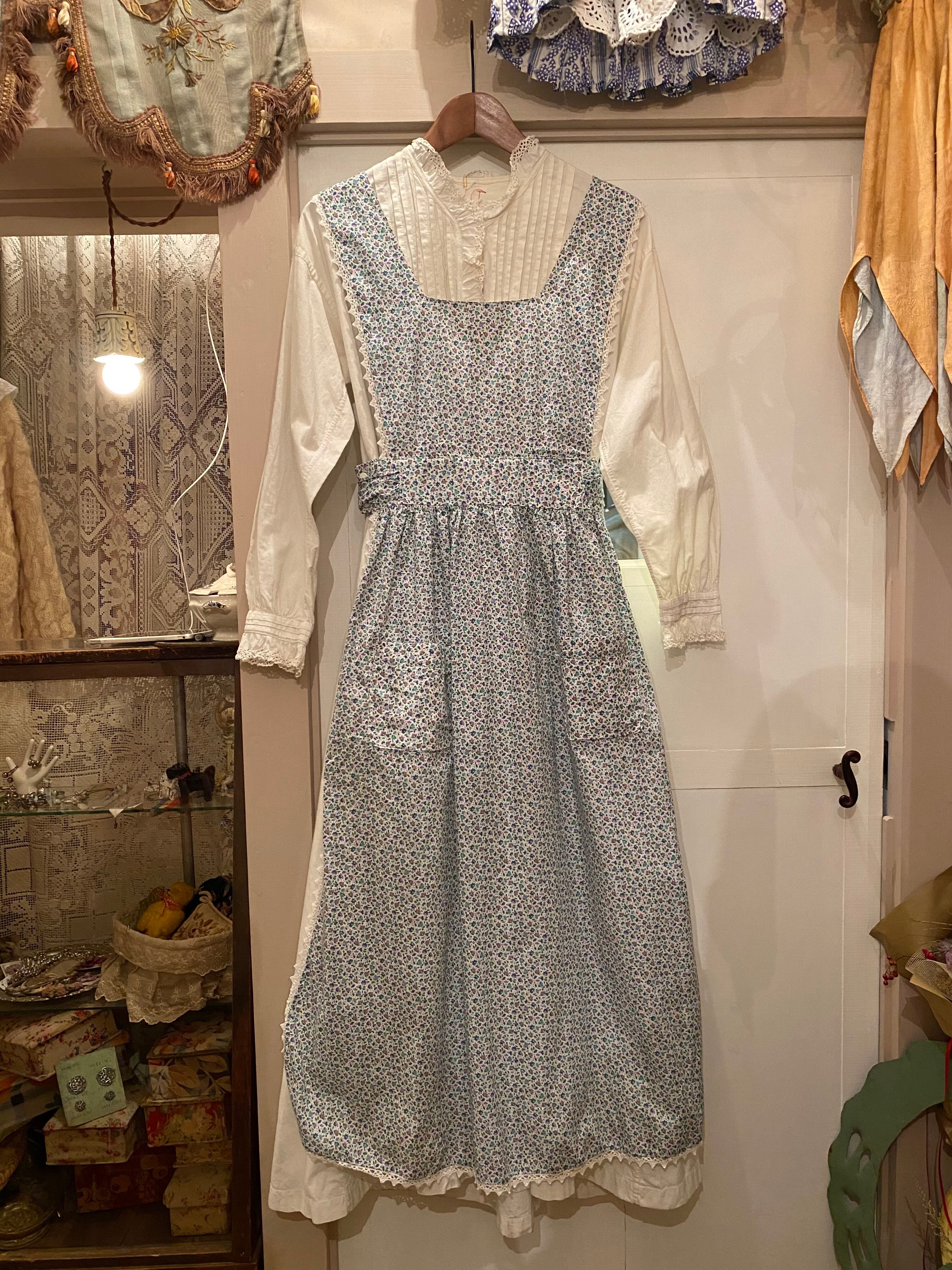 一見ワンピースのようなシルエットですが、両サイドがベルトで繋がっている、エプロンのようなつくりになっており、ふちどりにはぐるりとレースが施されていてガーリーな雰囲気です♡