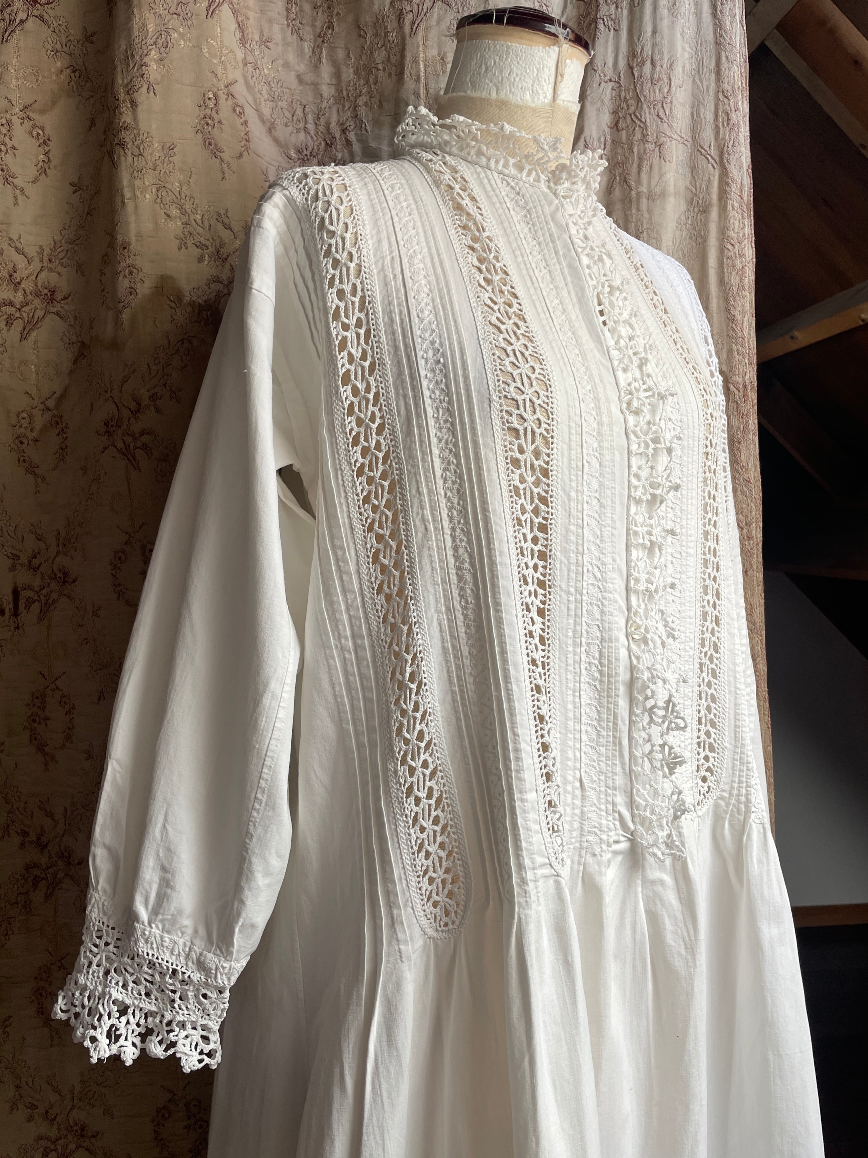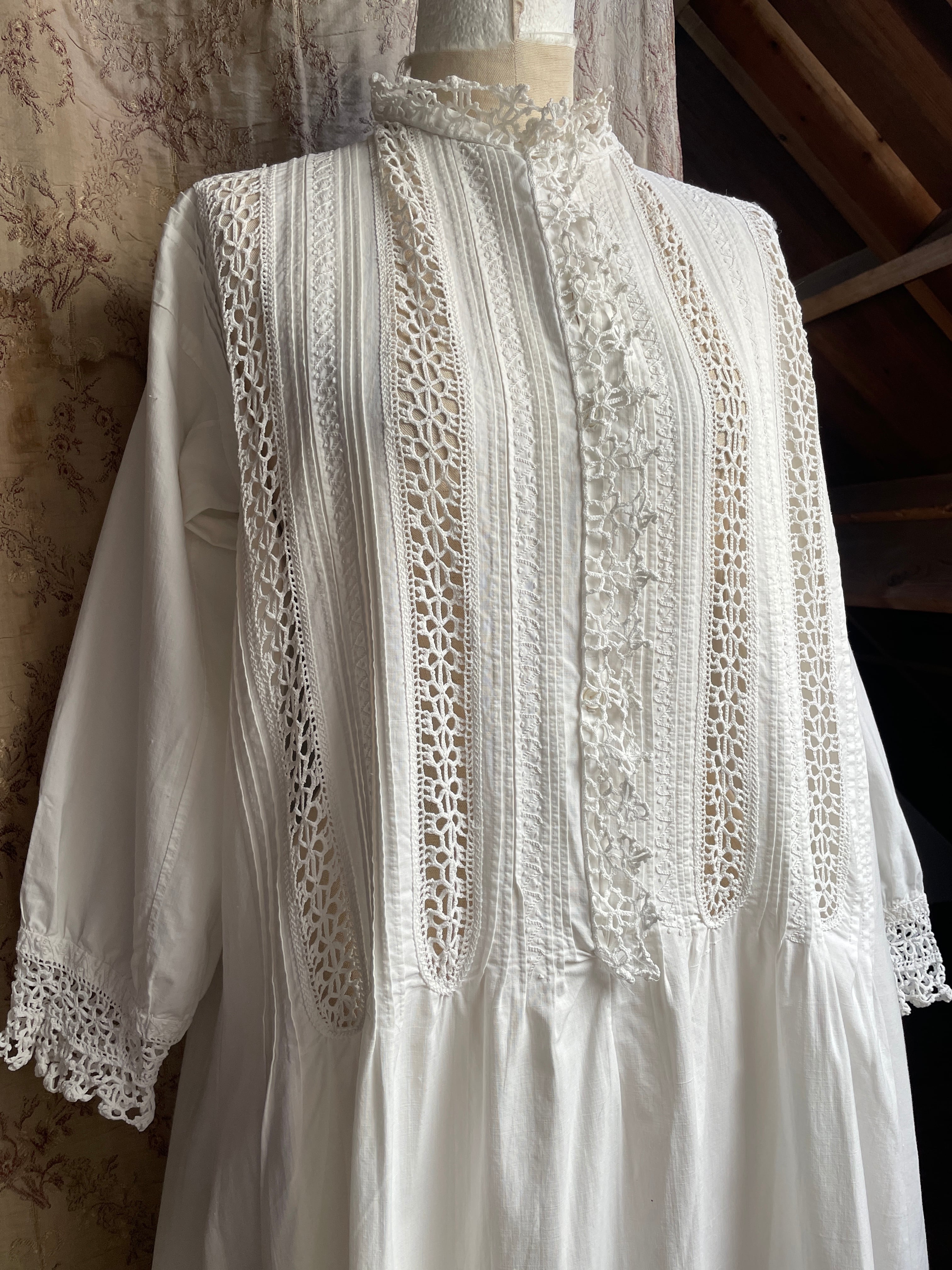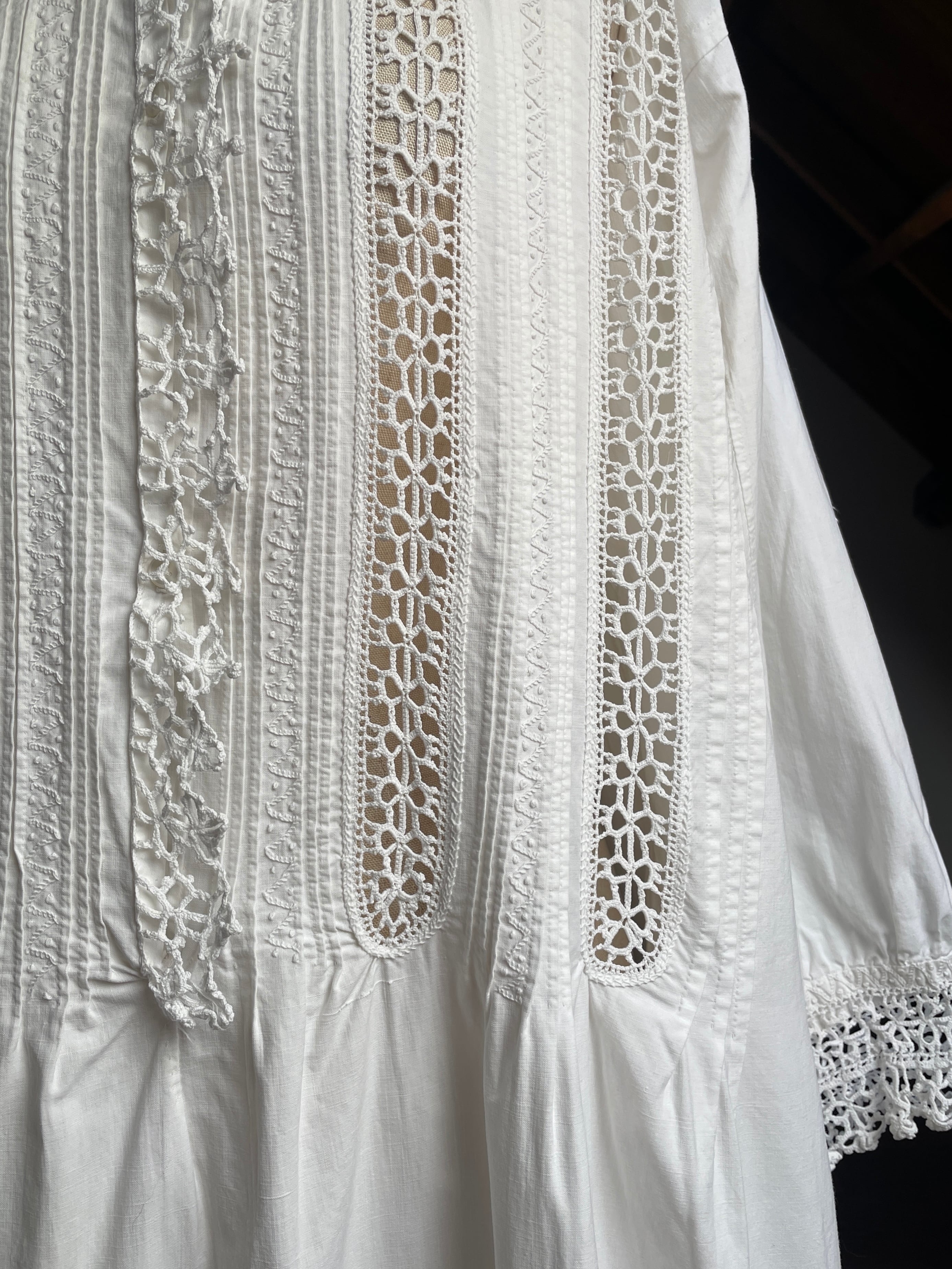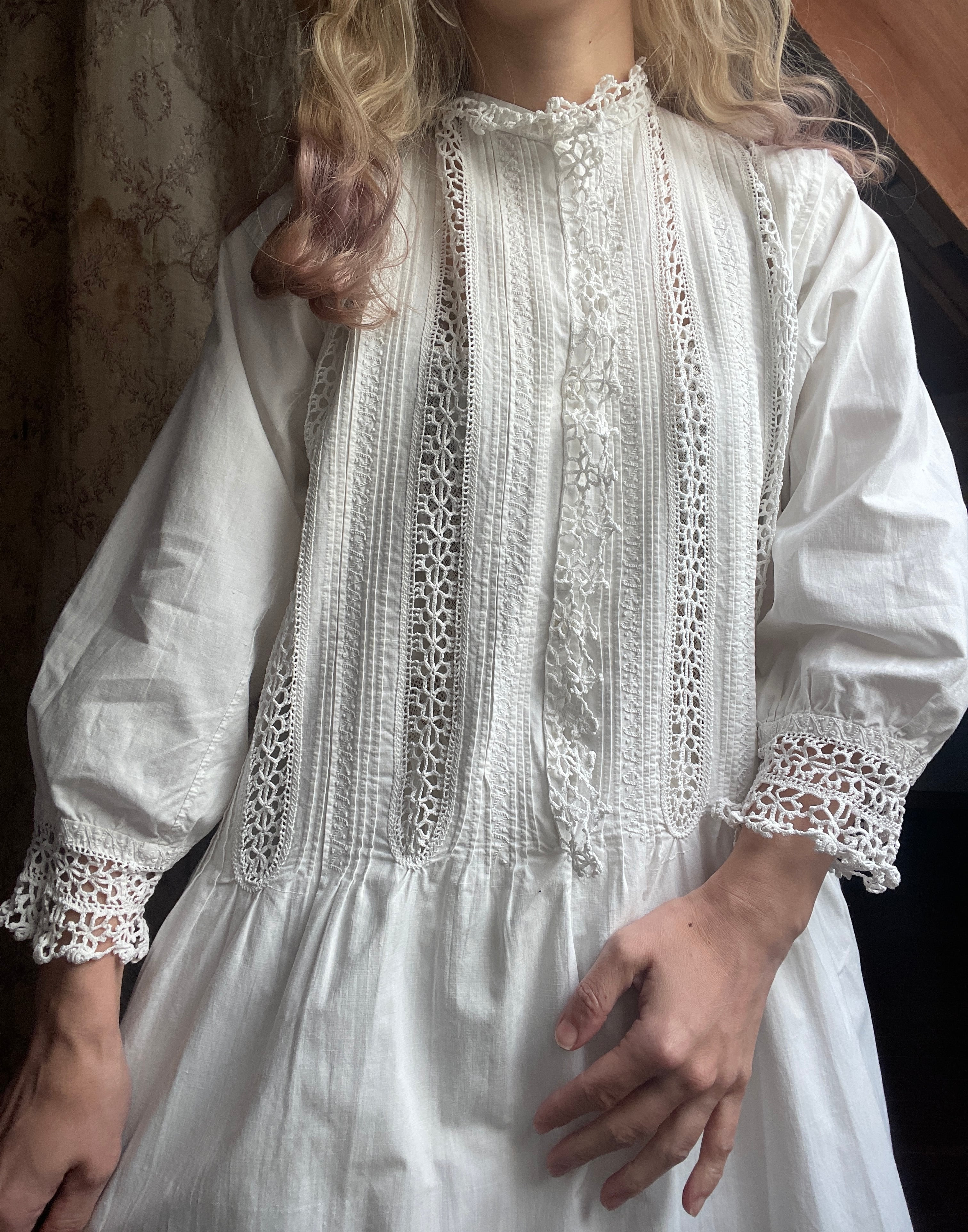 フロントに贅沢にデザインされたクロッシェレース×ピンタック×刺繍がとっても美しくうっとりするナイトドレスです♡