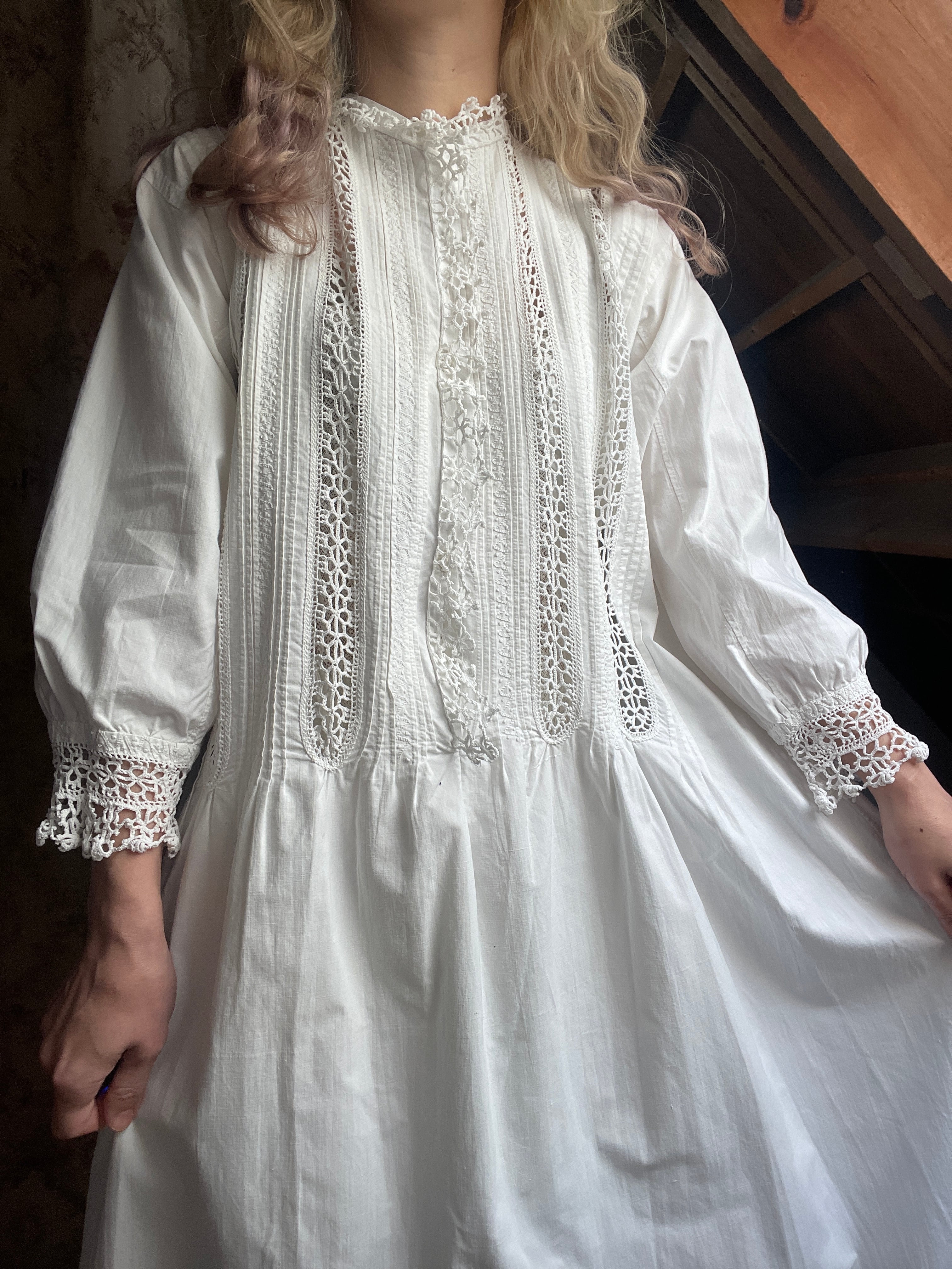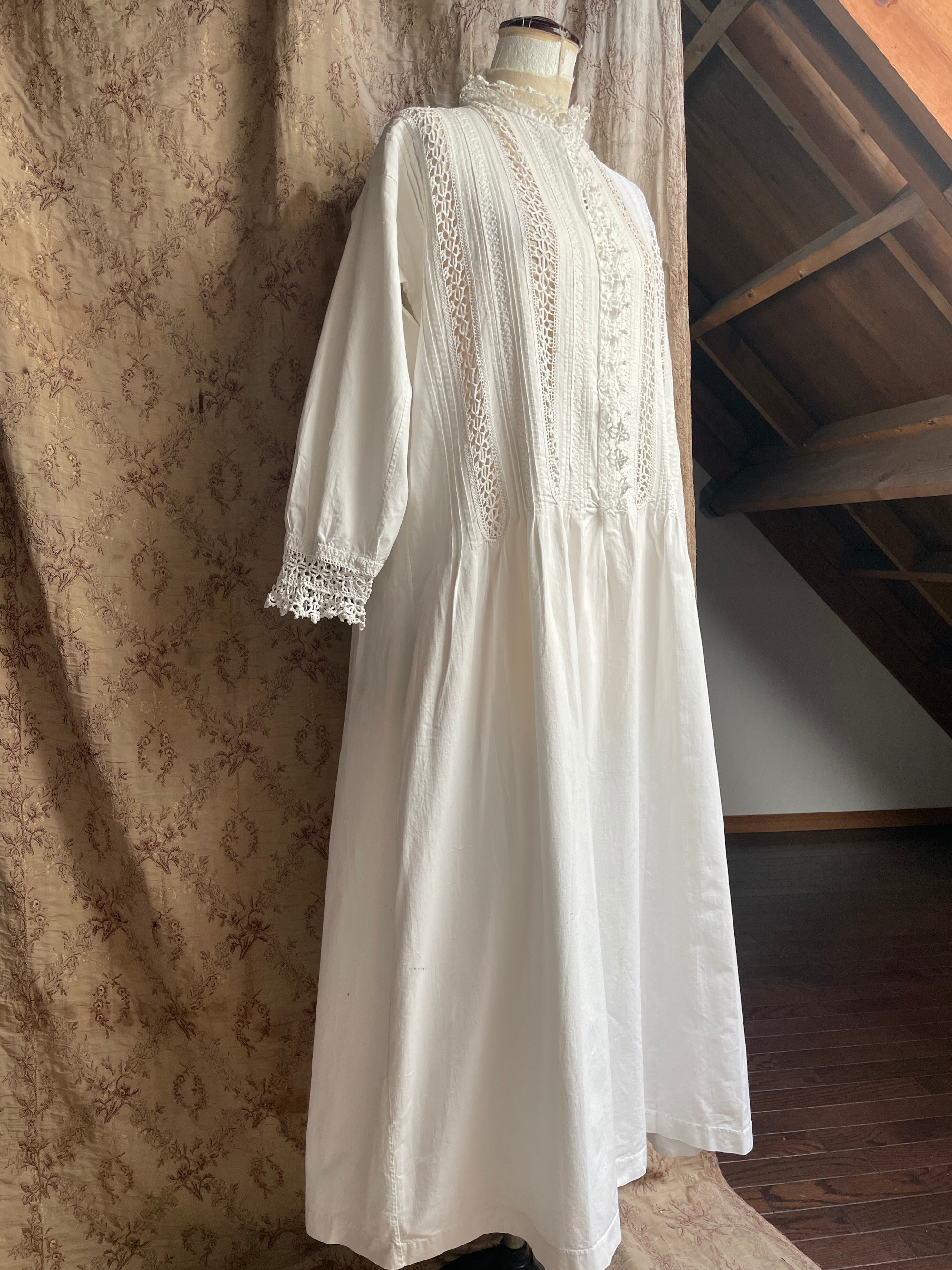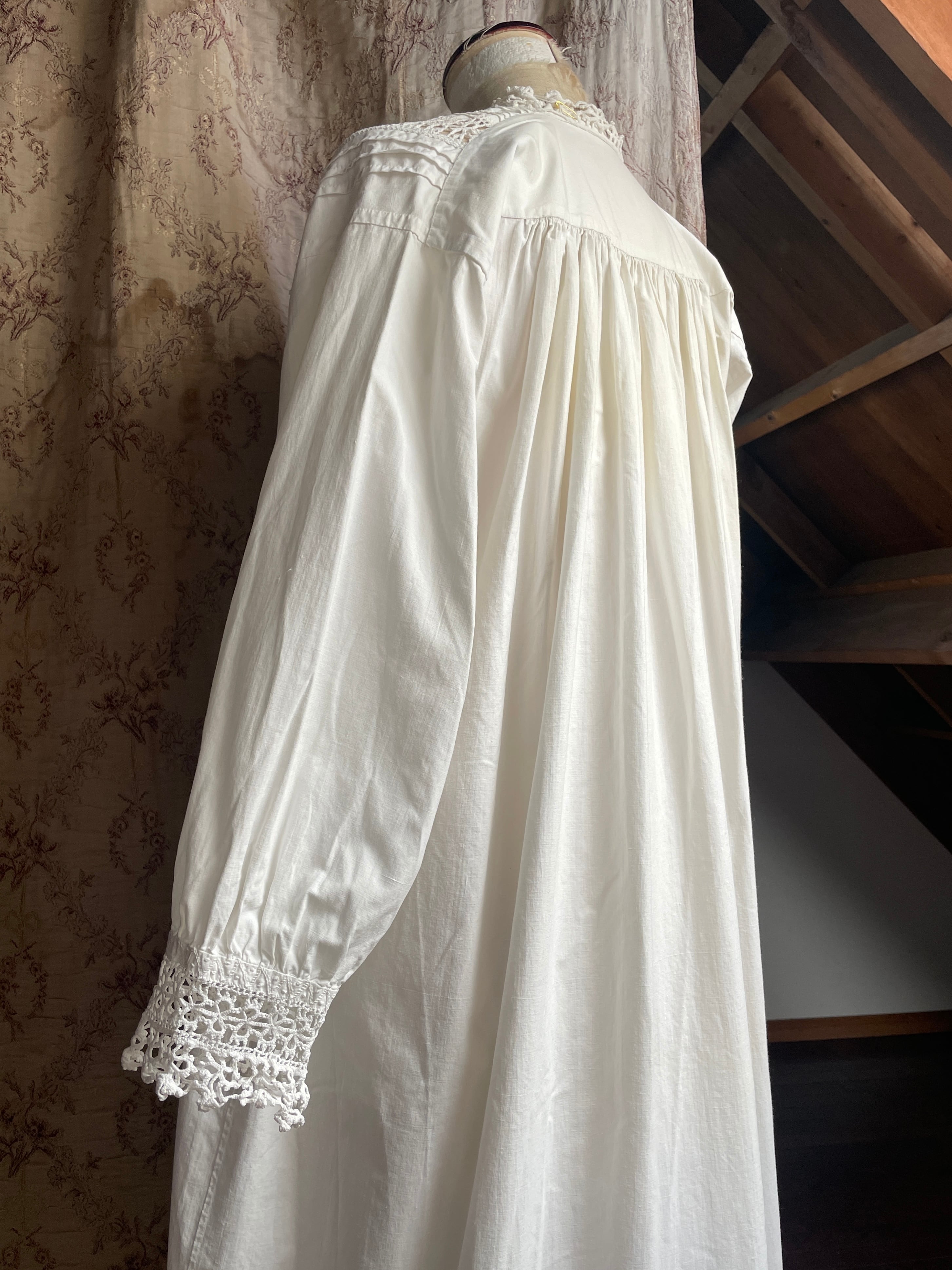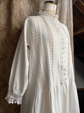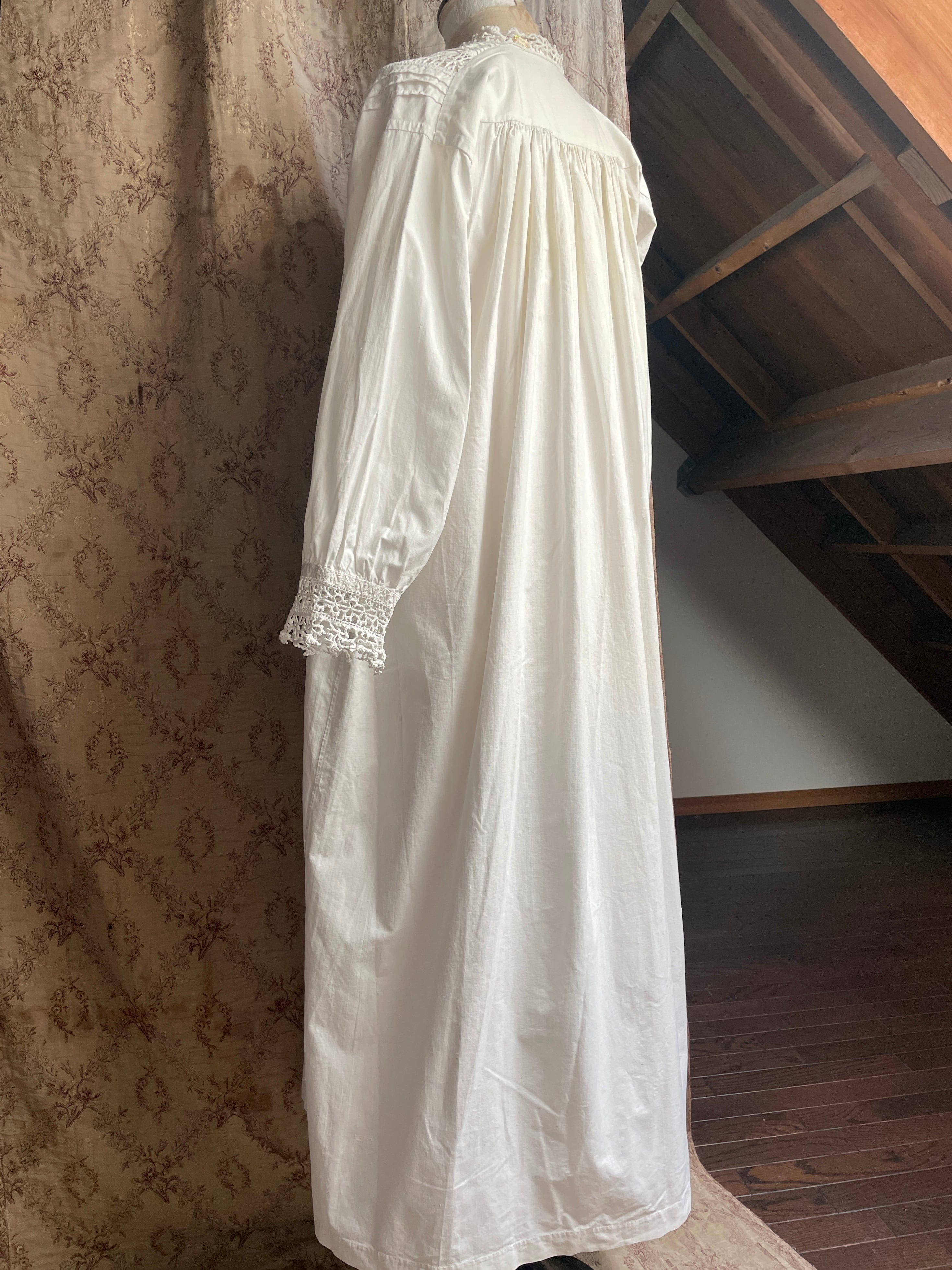 生地はとてもしっかりとしたコットンで、着用時も張りが出るタイプ、当店で扱うナイトドレスの中でも比較的マキシ丈すぎないので、