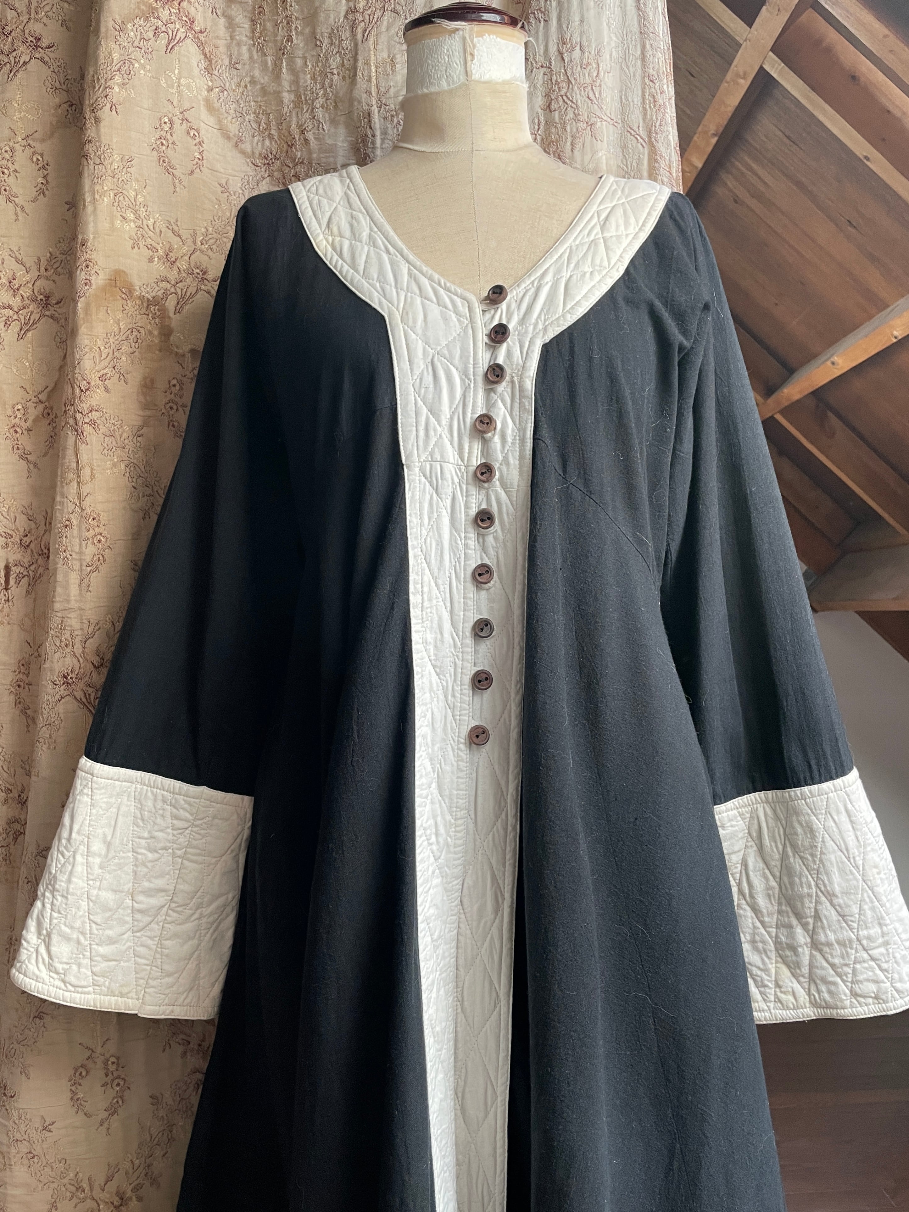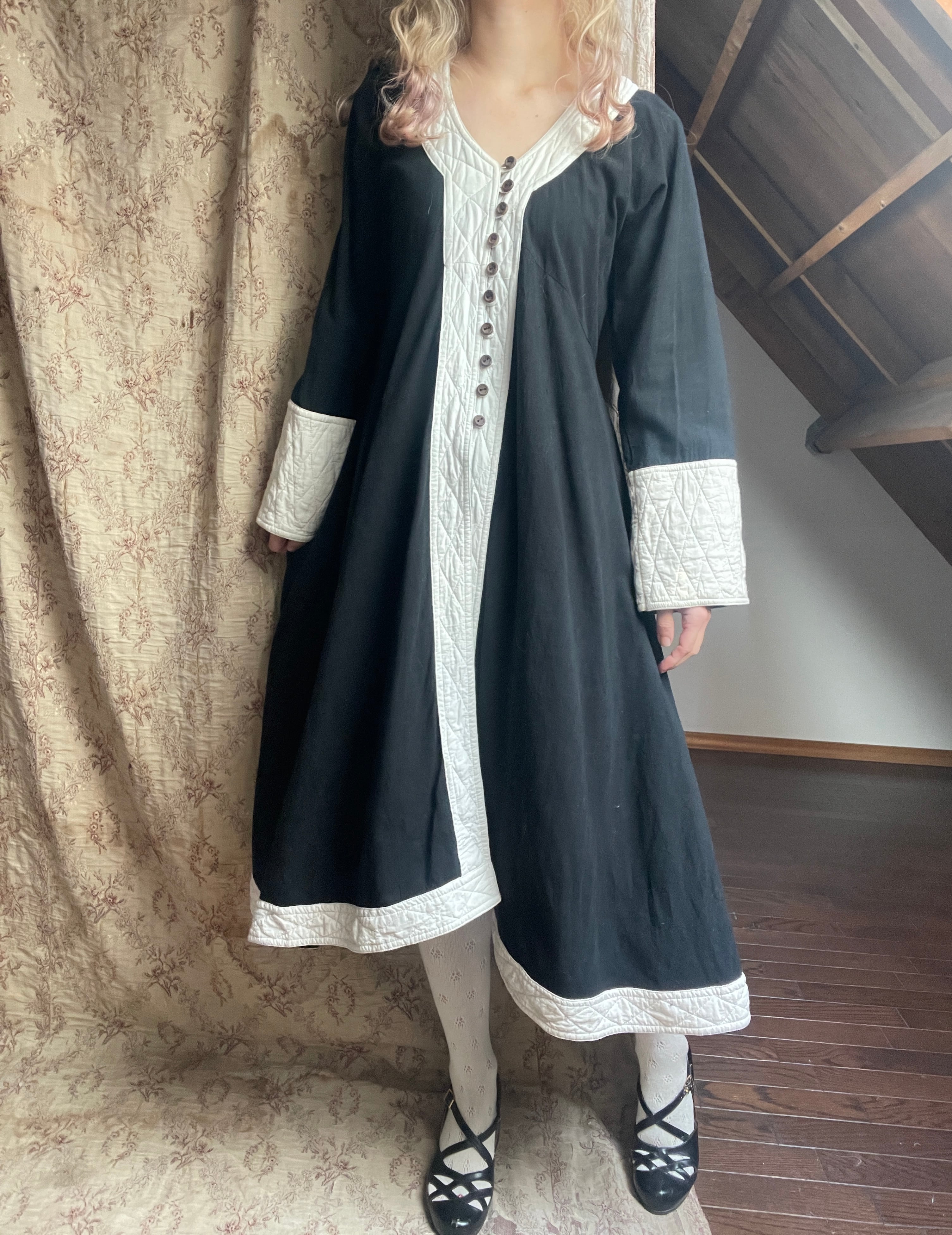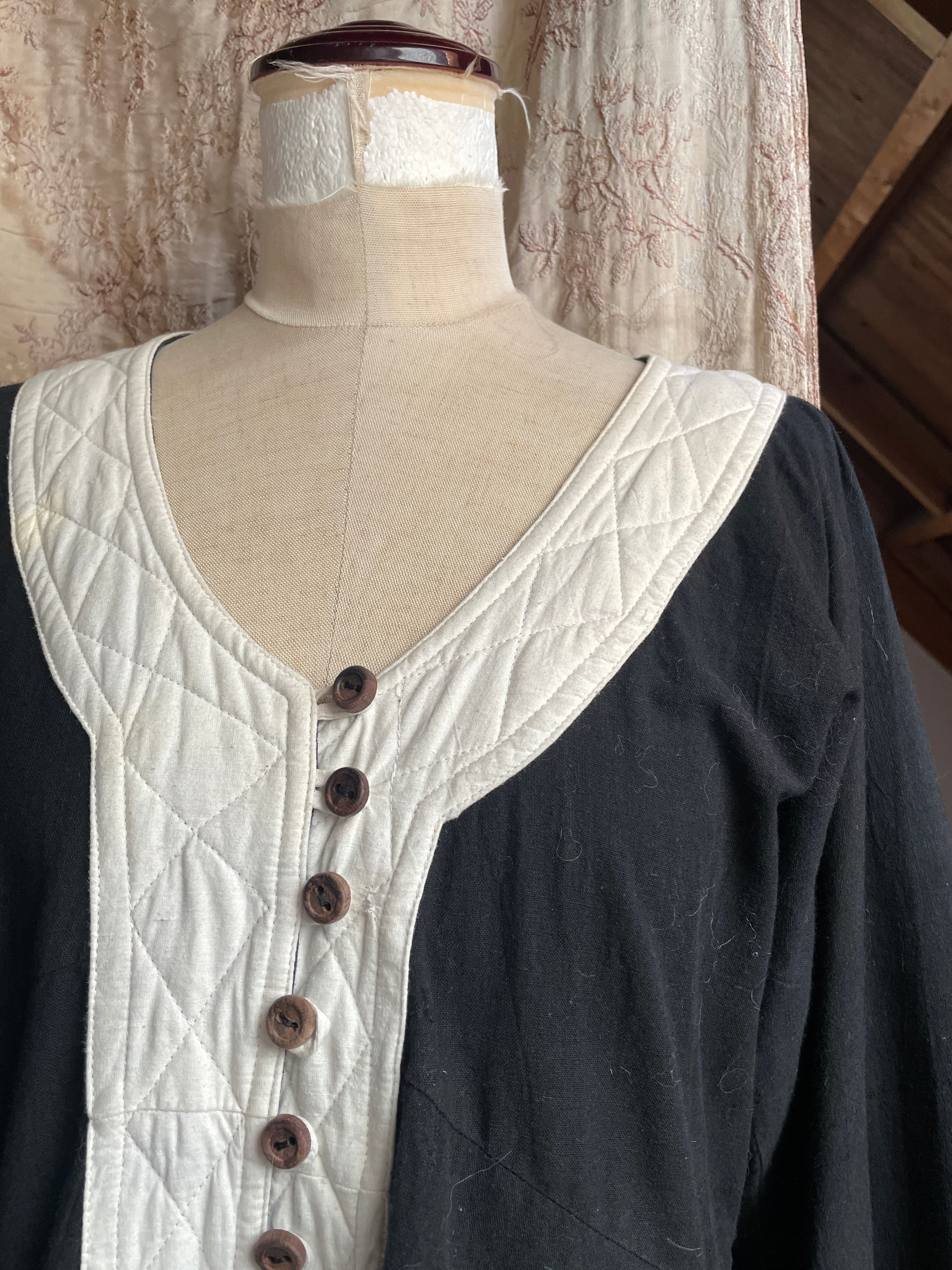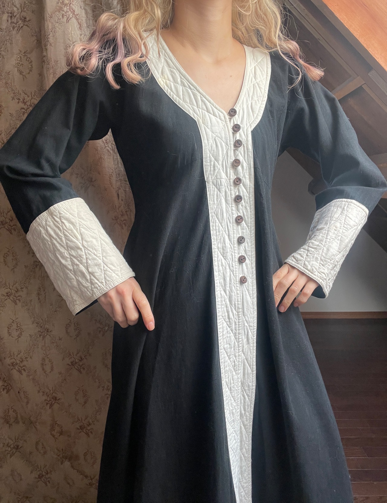 袖口や縁取りがキルティング切り替えになったデザインで、ブラック×ホワイトのモノトーン配色がインド綿では珍しく大人っぽいです♡