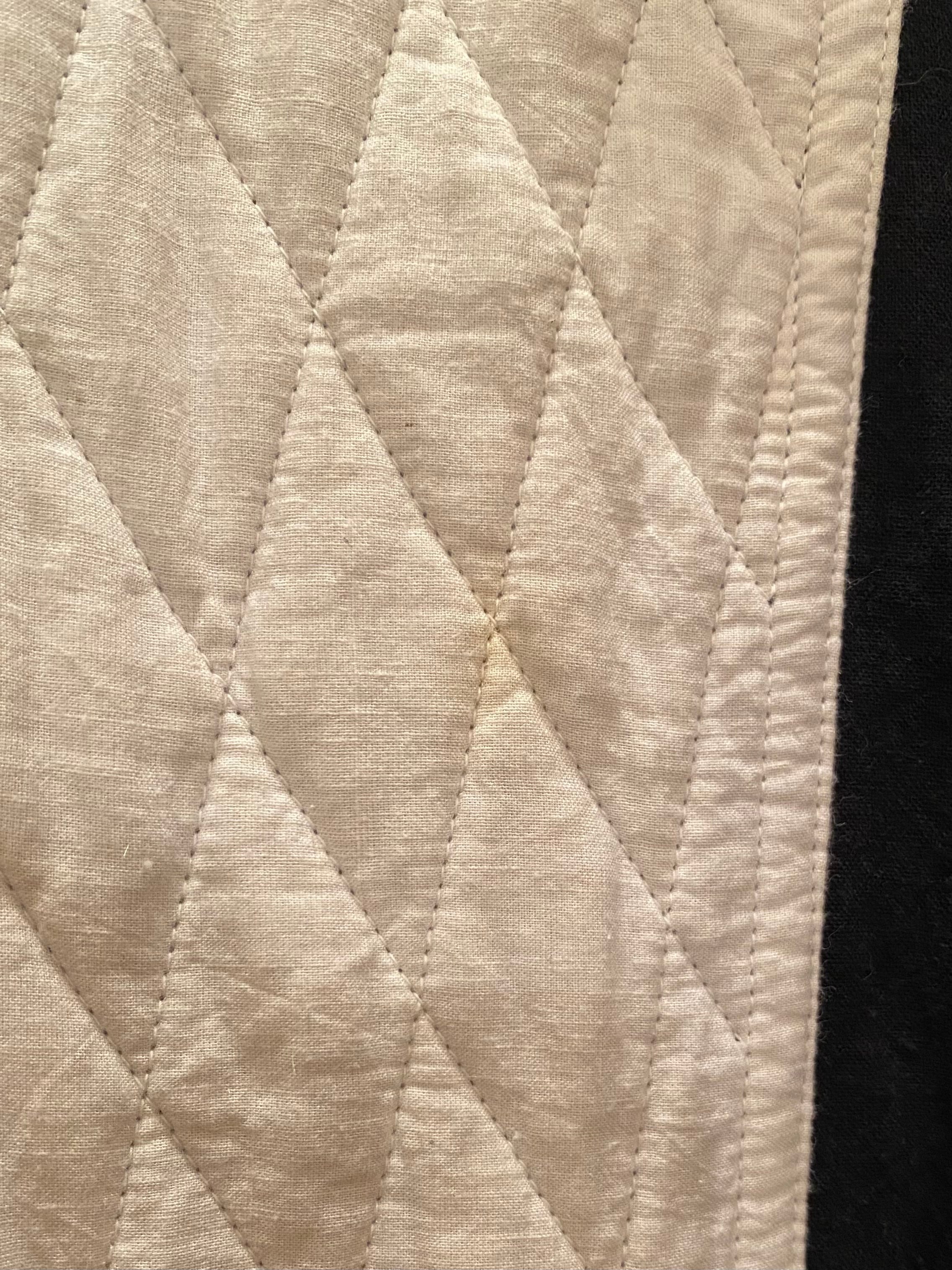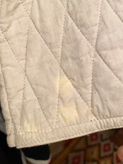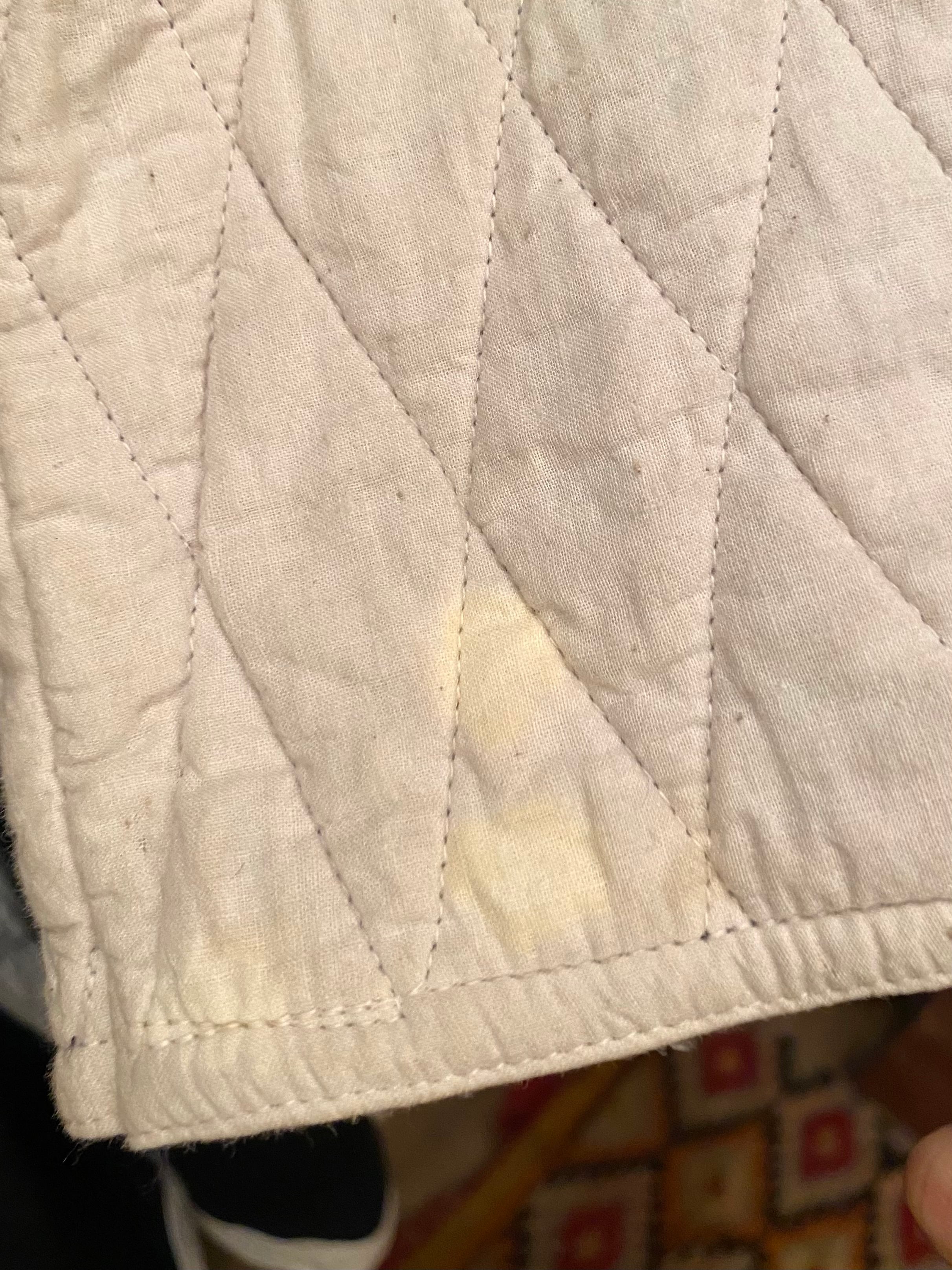 左袖口と背中のキルティング部分にうっすらと漂白シミがございます。詳しくは、商品画像最後のお写真2枚をご確認くださいませ。