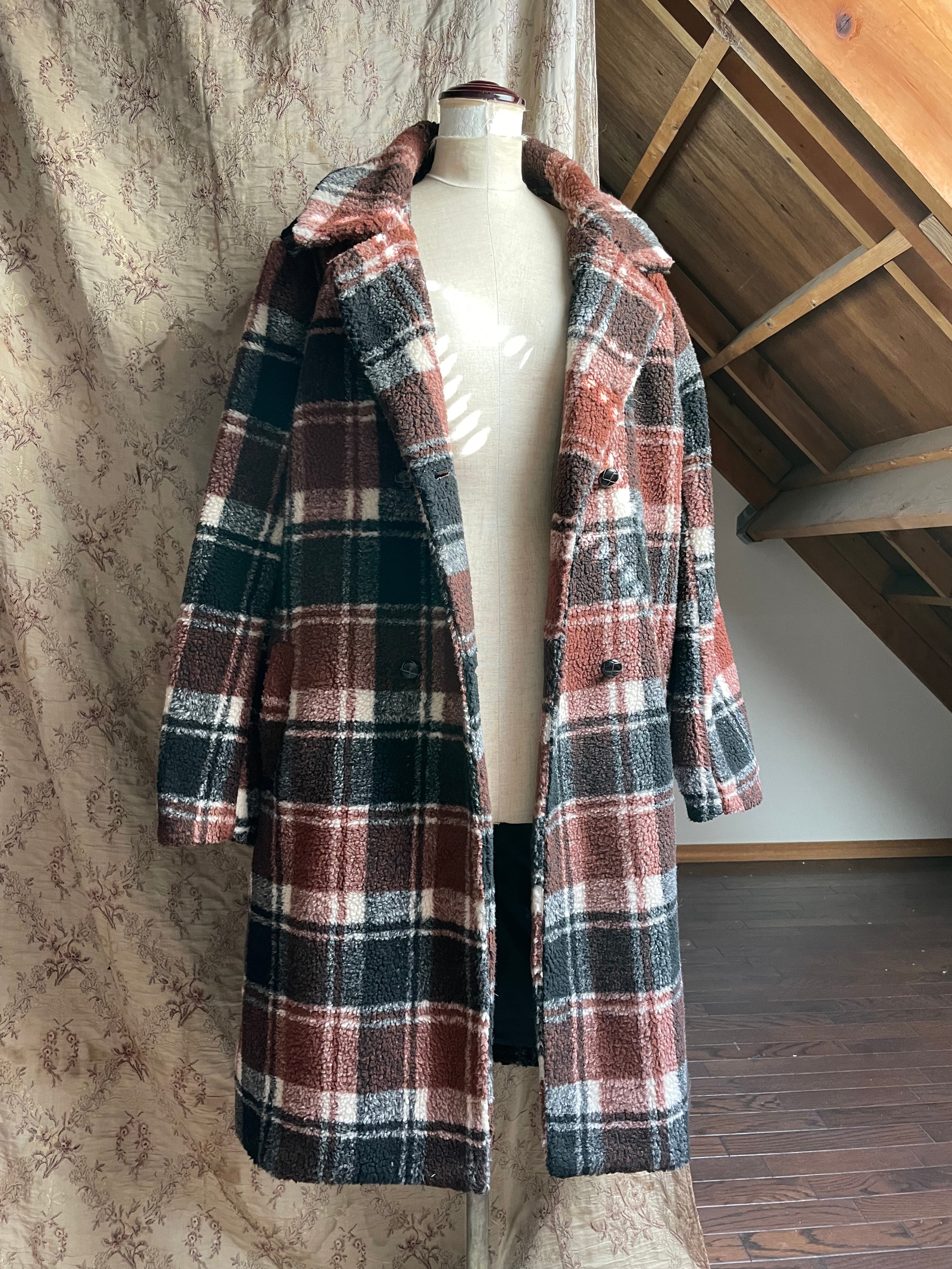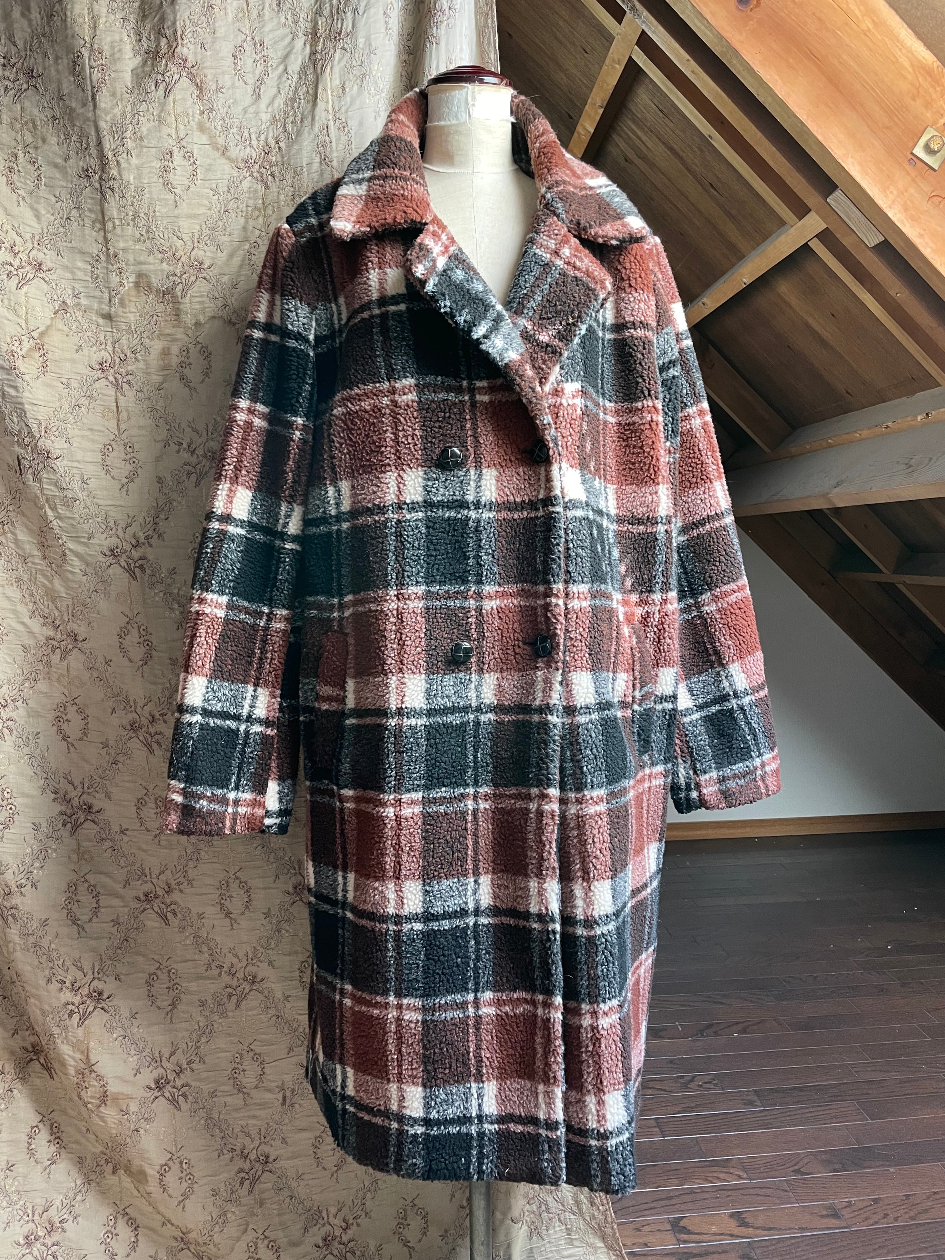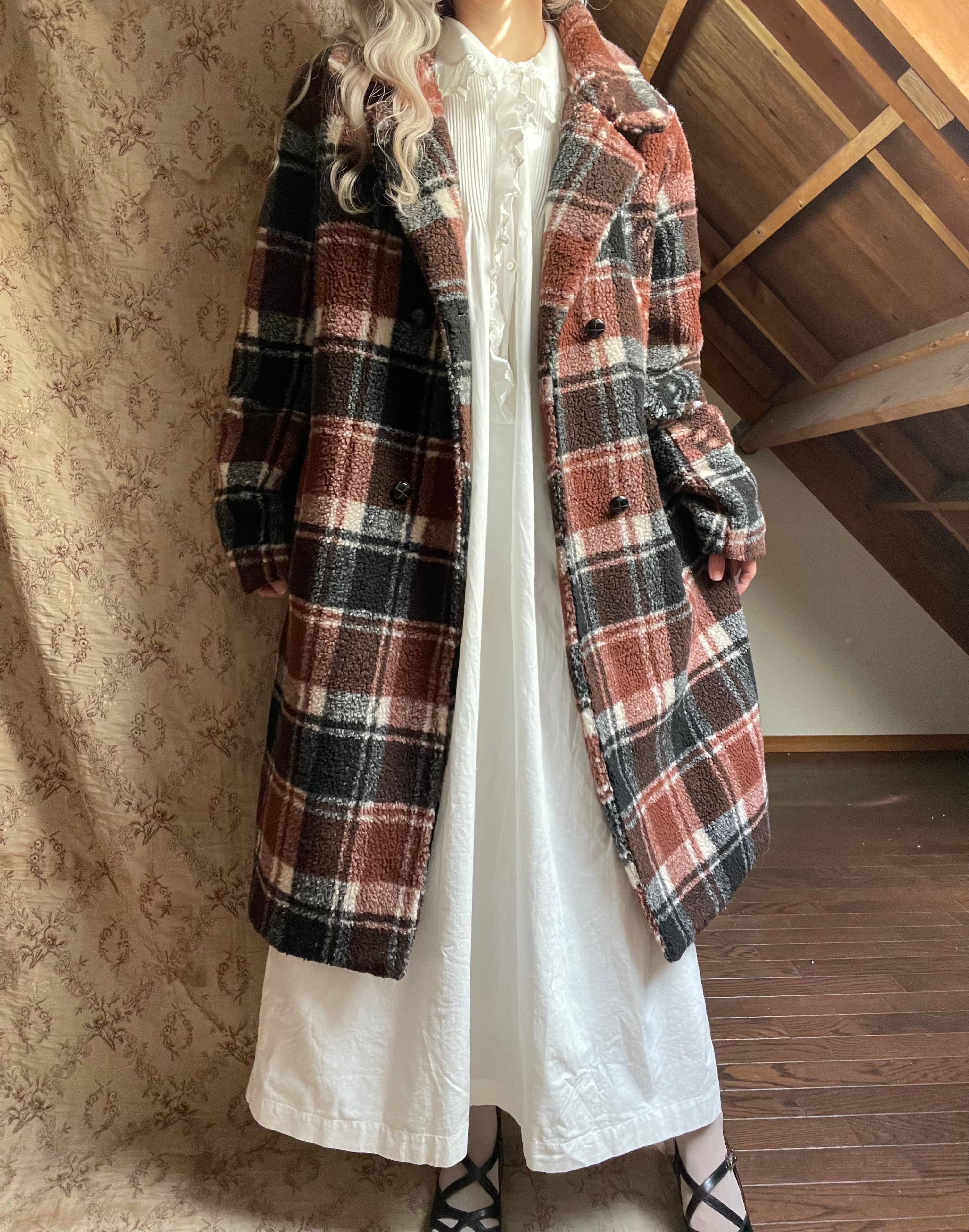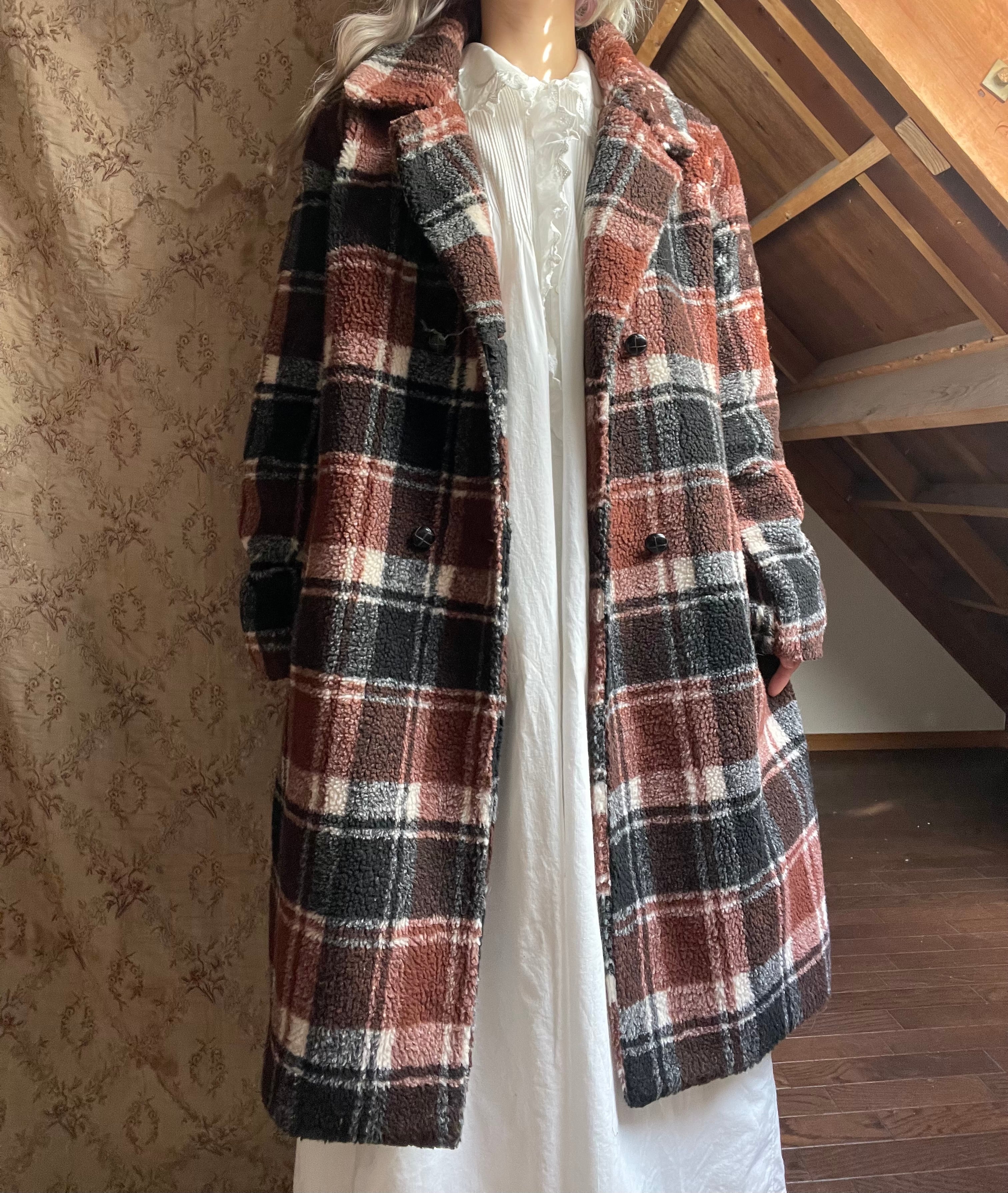フランス買い付けのモコモコのボアが暖かそうなチェック柄アウター♡