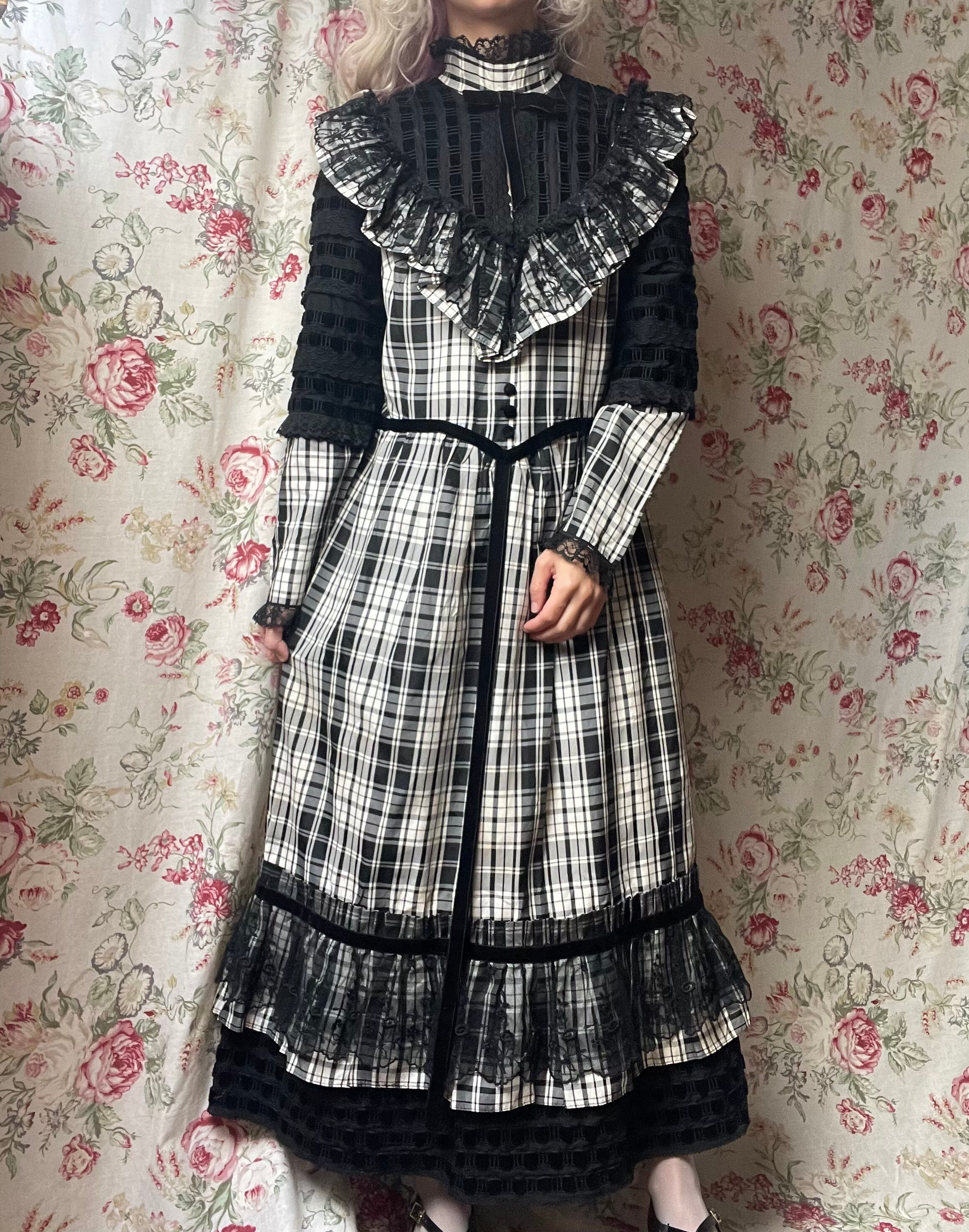 ベルベットのリボンや、レース、切り替えたっぷりでデザイン性の高い可愛いドレスです♡
