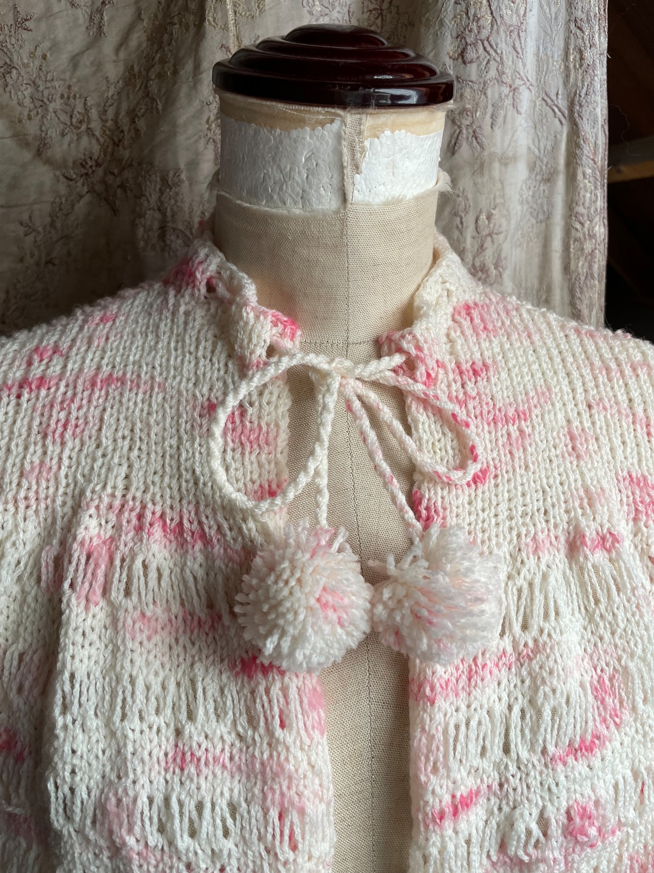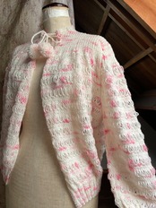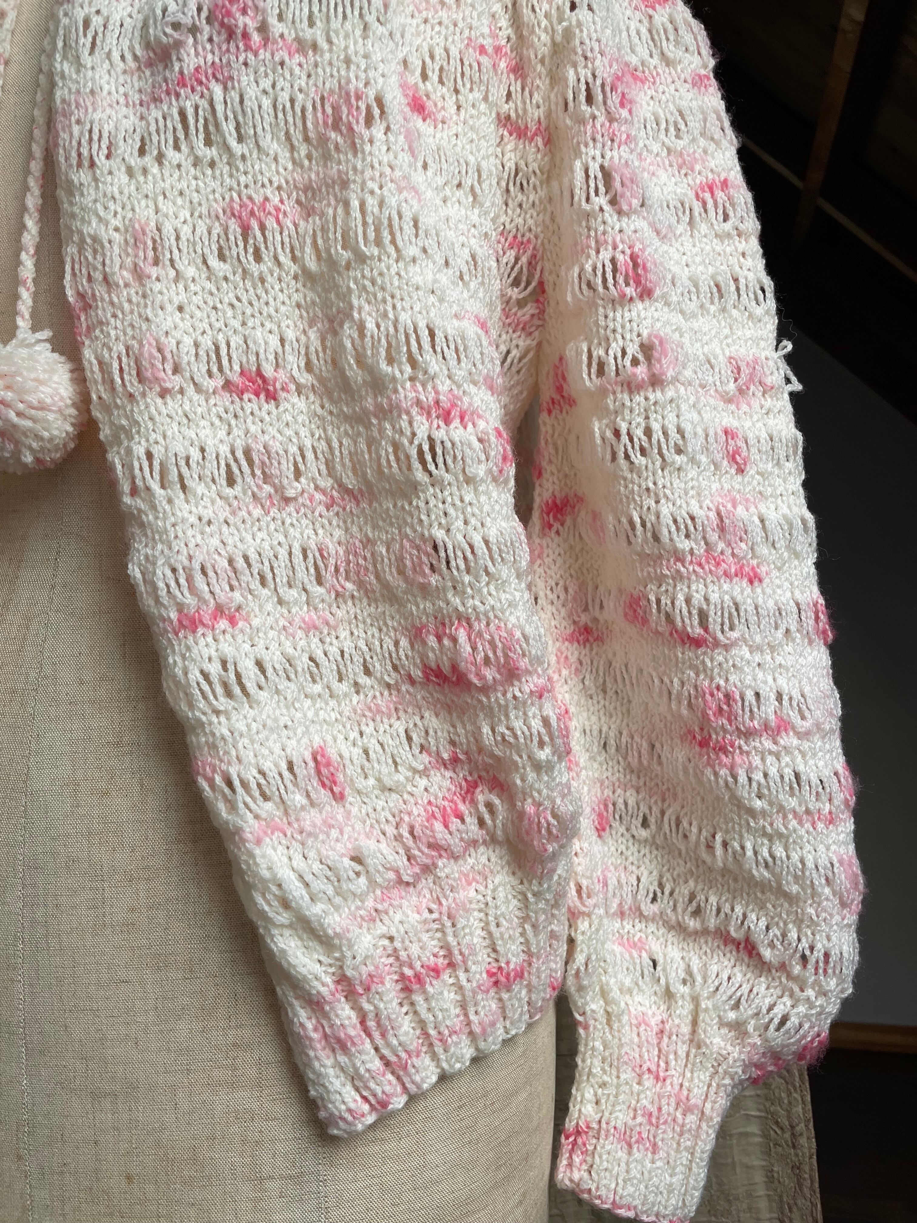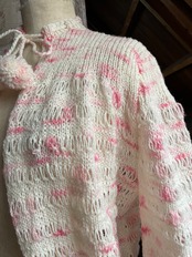 ピンクと白のメランジェ柄で、編み目も少し変わったデザインになっています♡