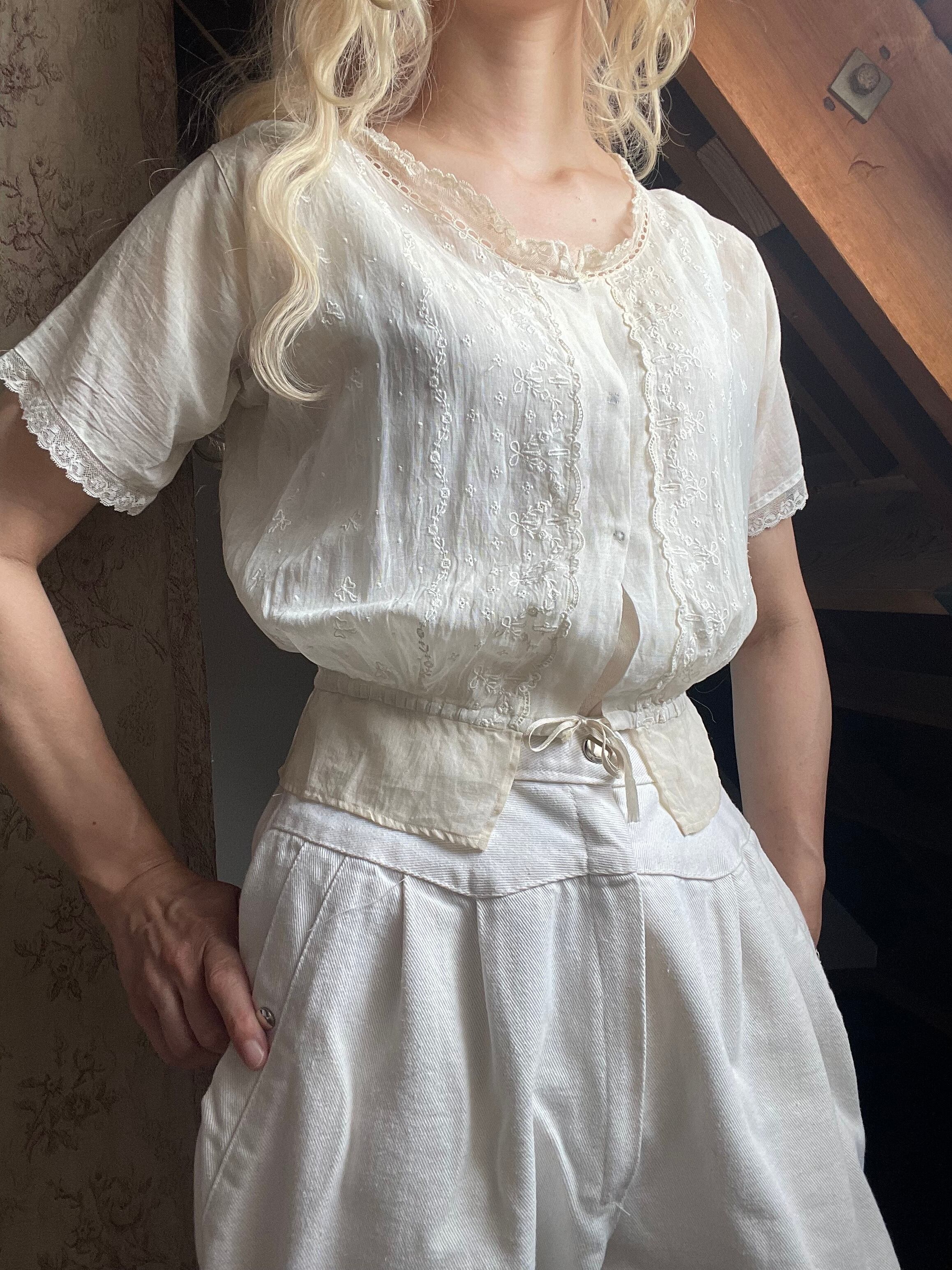 透け感のあるコットンガーゼ生地、エクリュ色がとても可愛いです♡