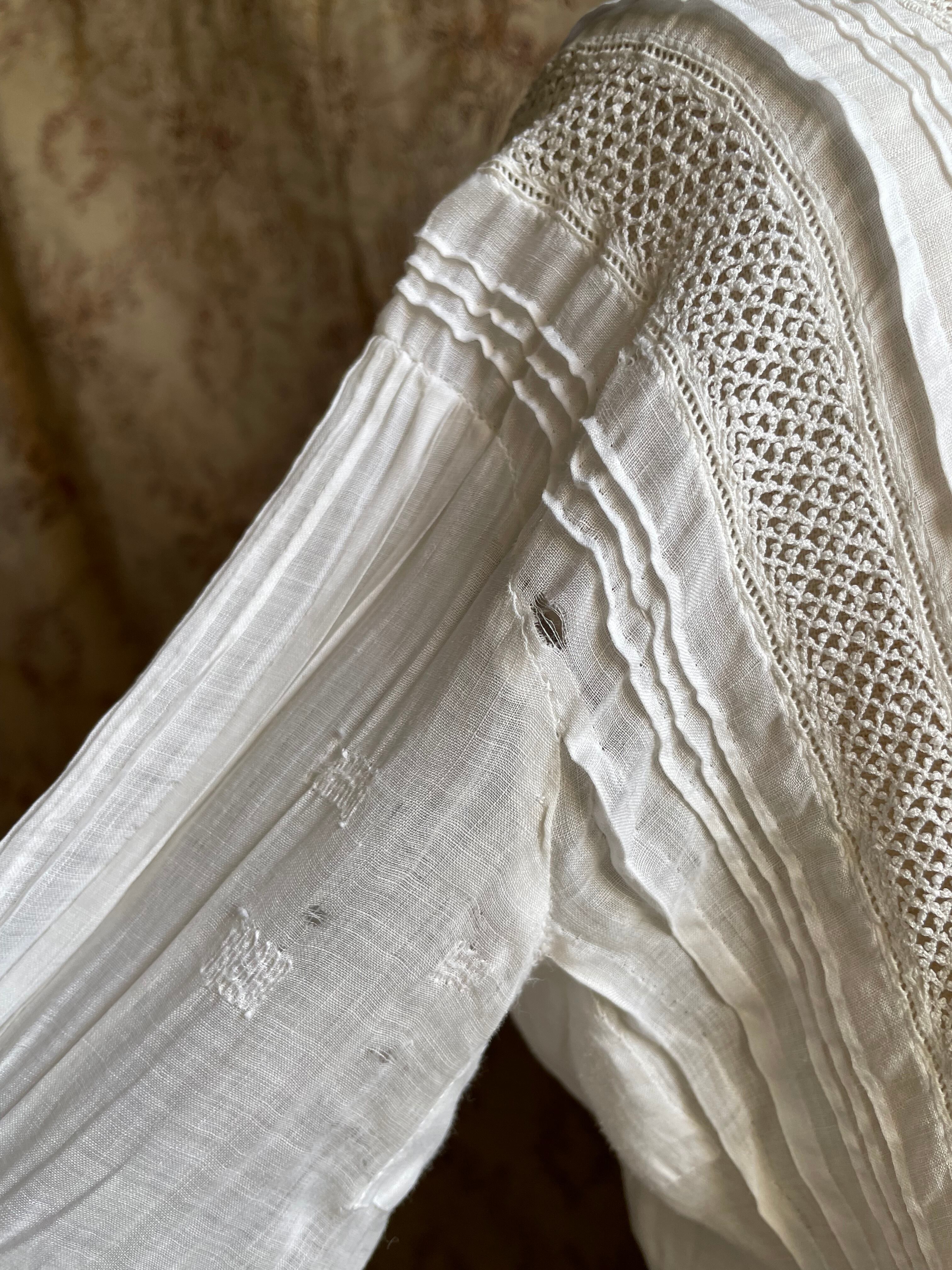 胸元にはアイリッシュクロッシェレースと繊細なお花の刺繍、そして細かいタックが切り替えになったとても可愛いデザインです♡