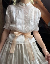 長袖が多い中で、ハーフのお袖のアンティークブラウスはなかなか店頭には並ばないため、まだまだ暑さが続く中で秋にも使えそうなアンティークのブラウスを探している方はぜひ♡