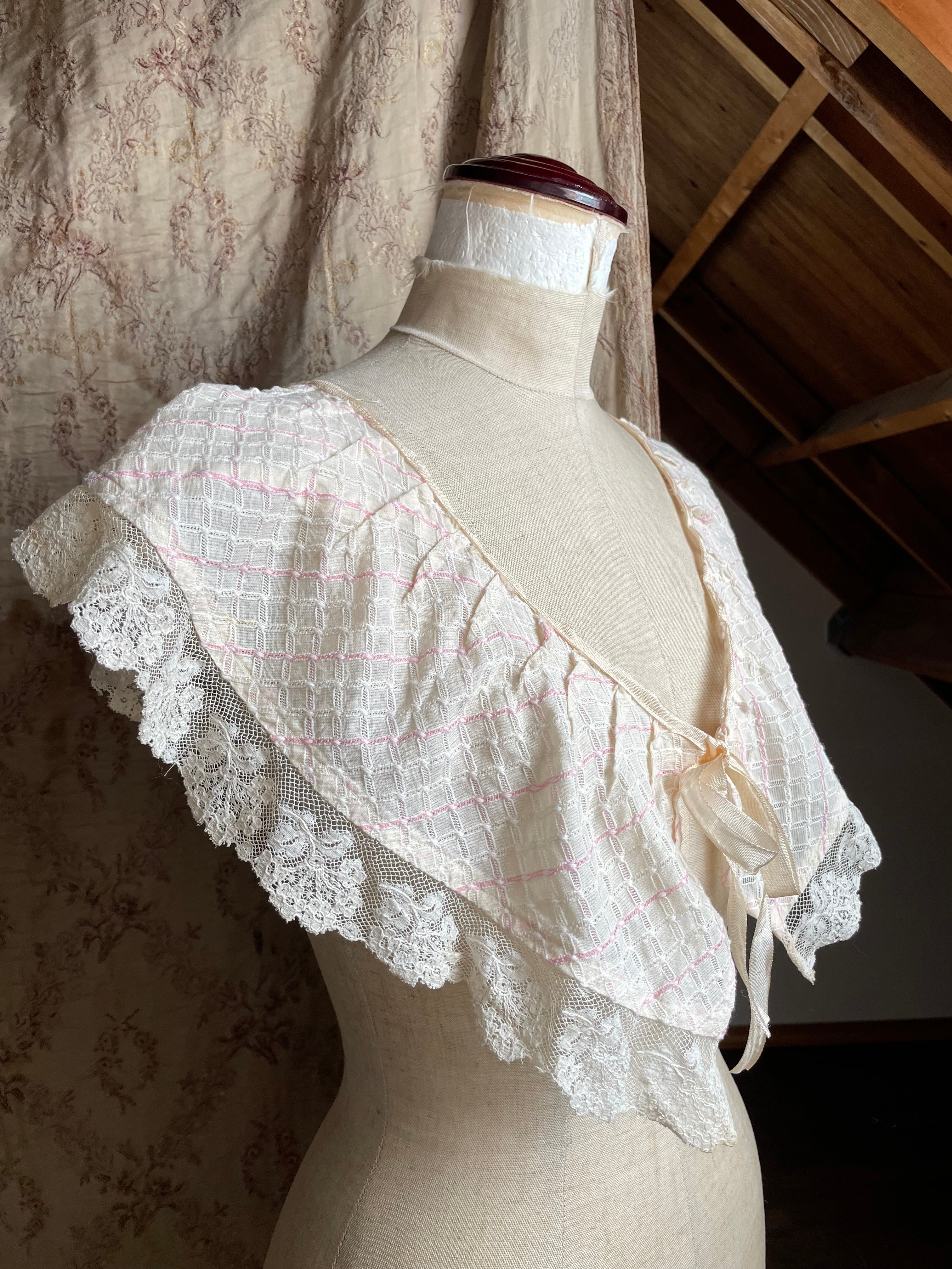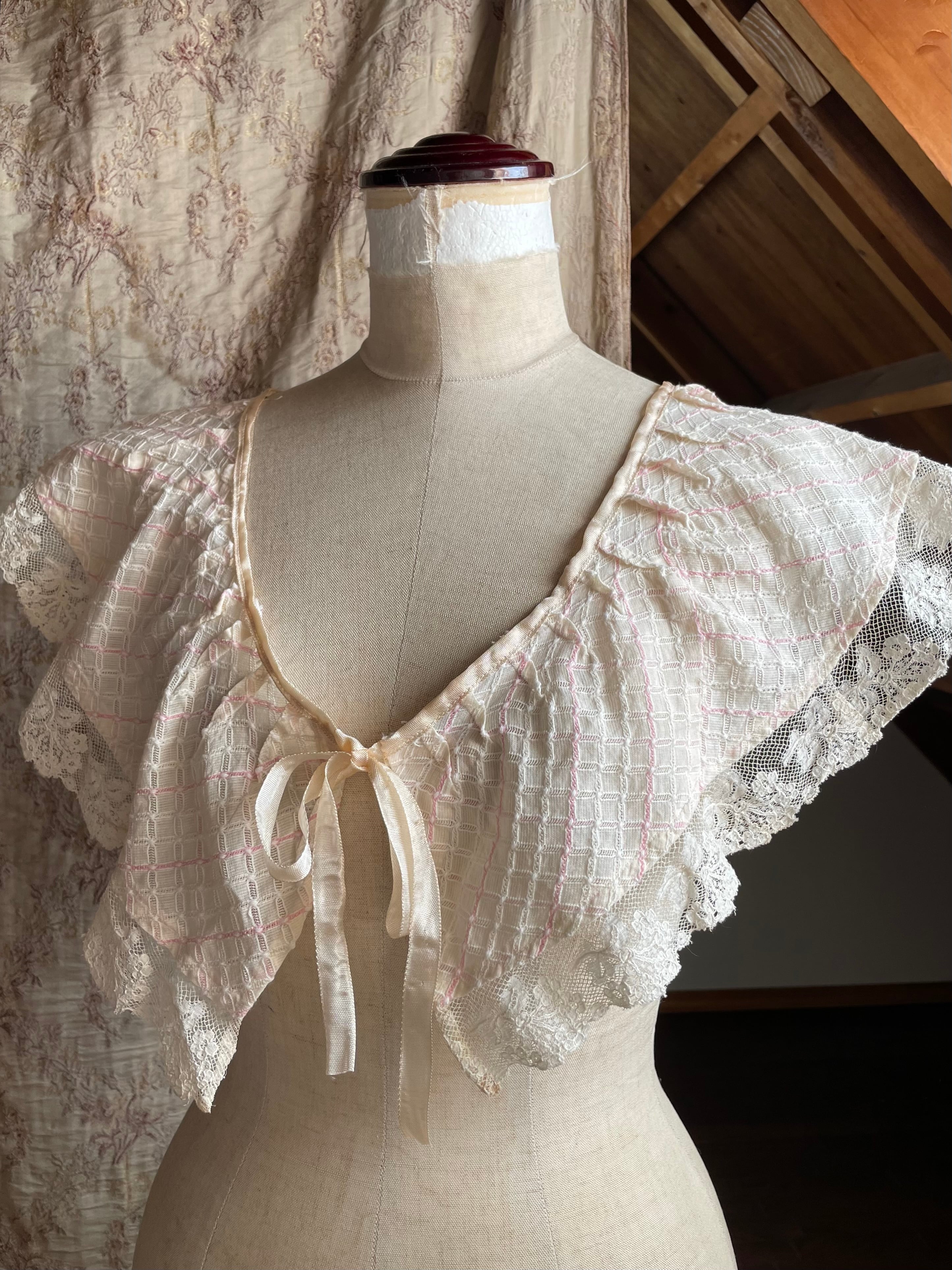 古いお洋服のはぎれだった生地を使用して、かわいい付け衿に仕立てました♡