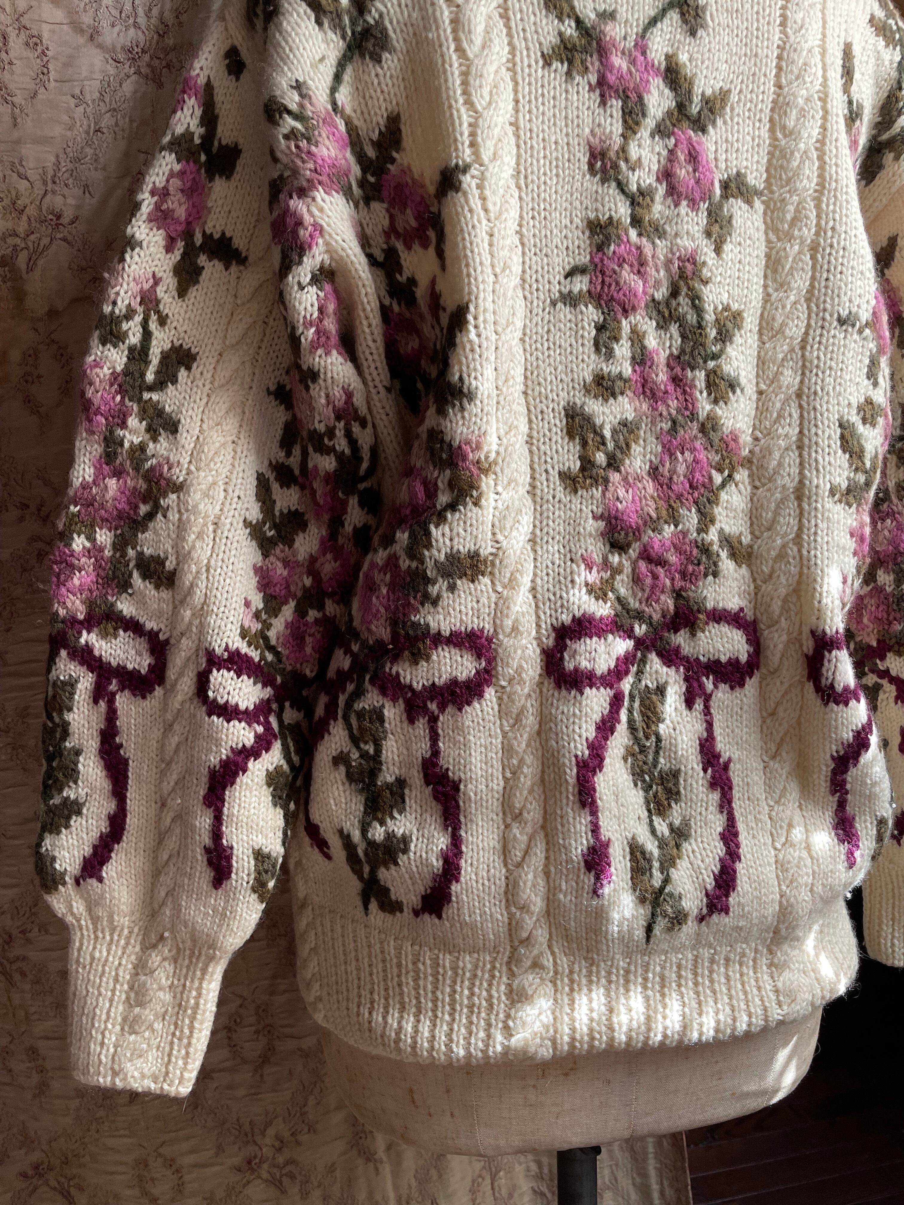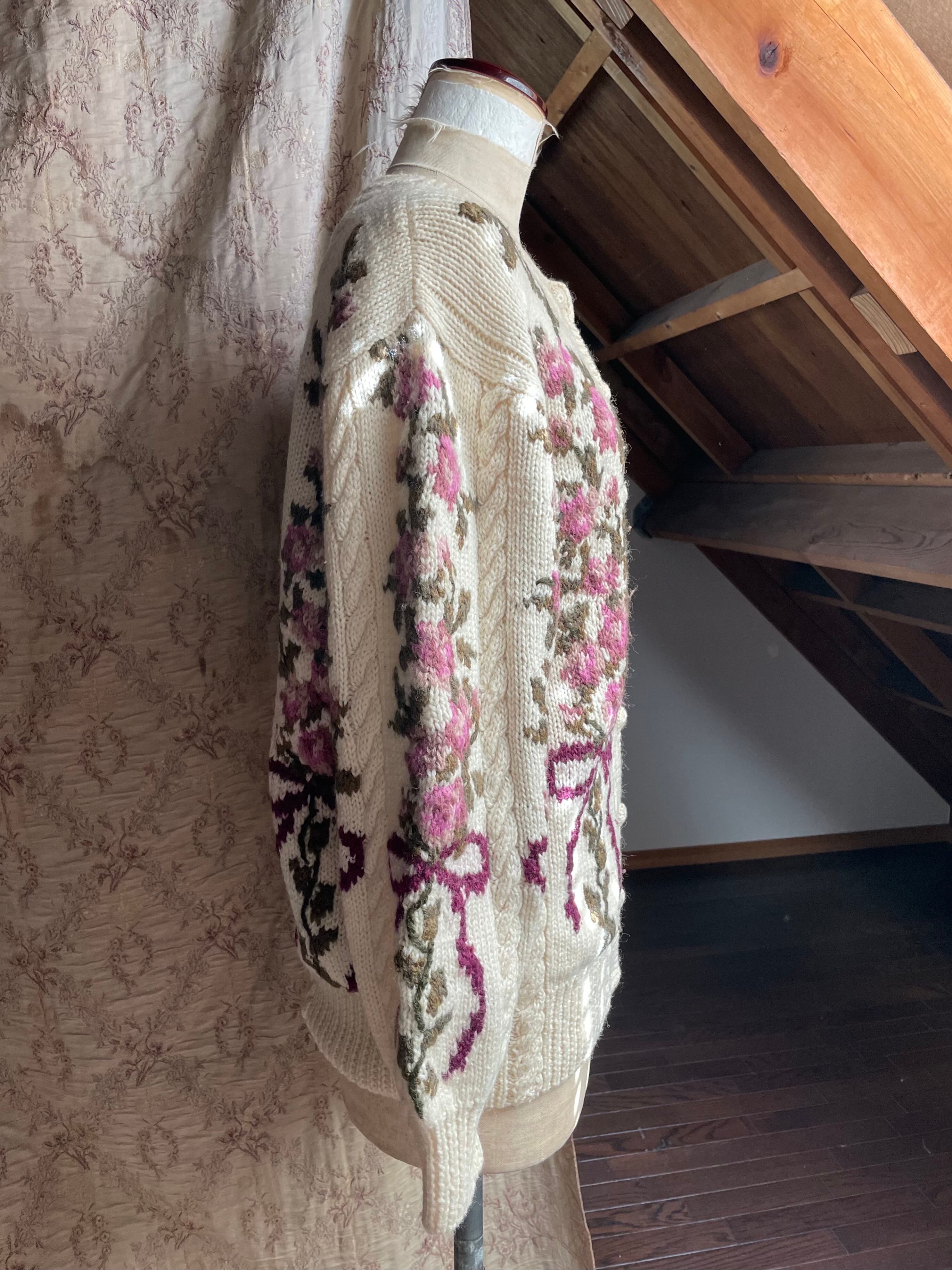 vintage flower ribbon knit cardigan