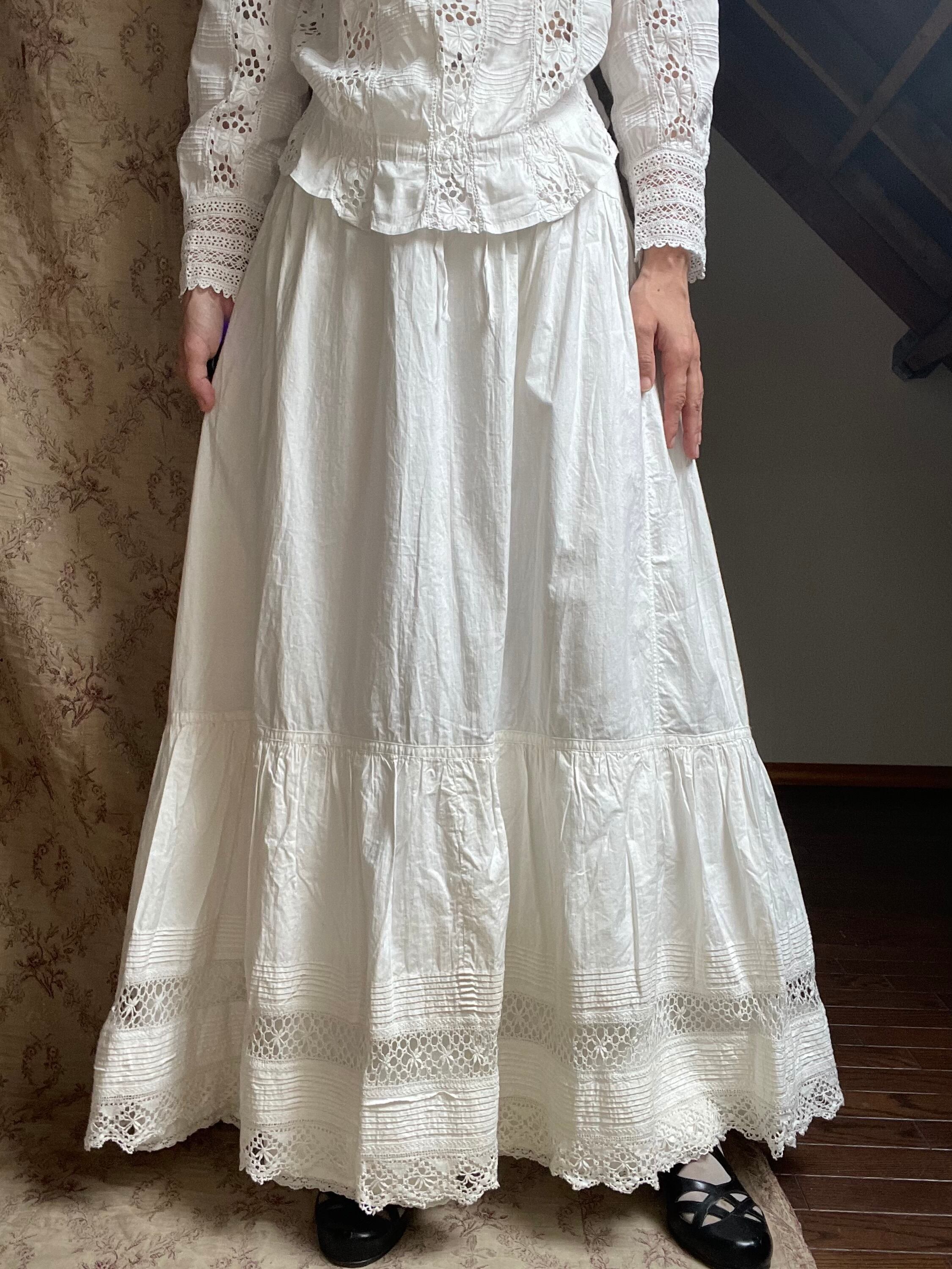 薄すぎず、程よい厚みのコットン素材で、また広がりすぎず甘くなりすぎないレースとタックのバランスが良いデザインです♡