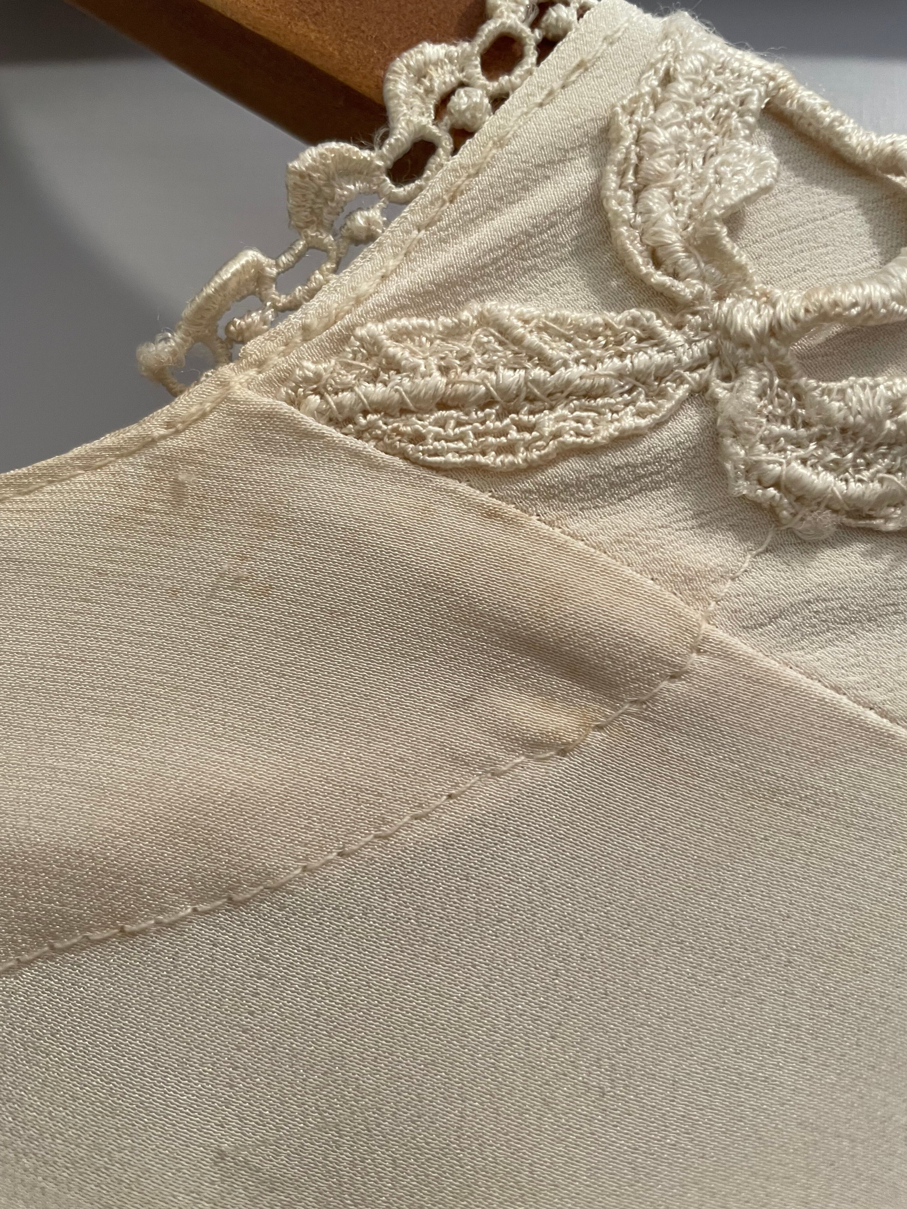 立体的なお花のレースや、肩周りの切り替えのベルベット生地が古着ならではのデザインで、大胆なスリットの入ったつくりのため、動きのあるシルエットを楽しめます♡
