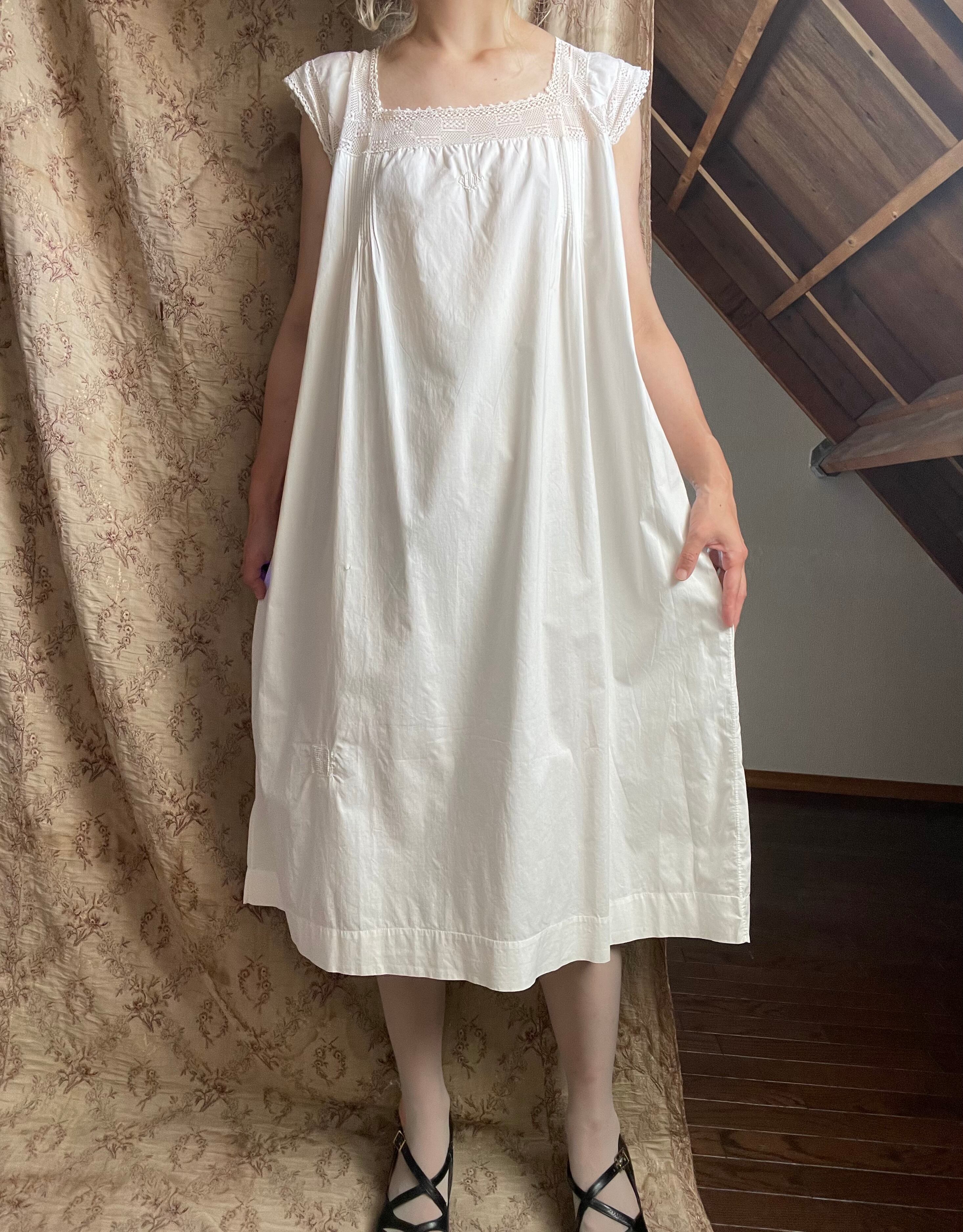 スリーブレスで首元は開いているので、これからの季節はあたたかいインナーやニットを合わせて楽しめそうです。