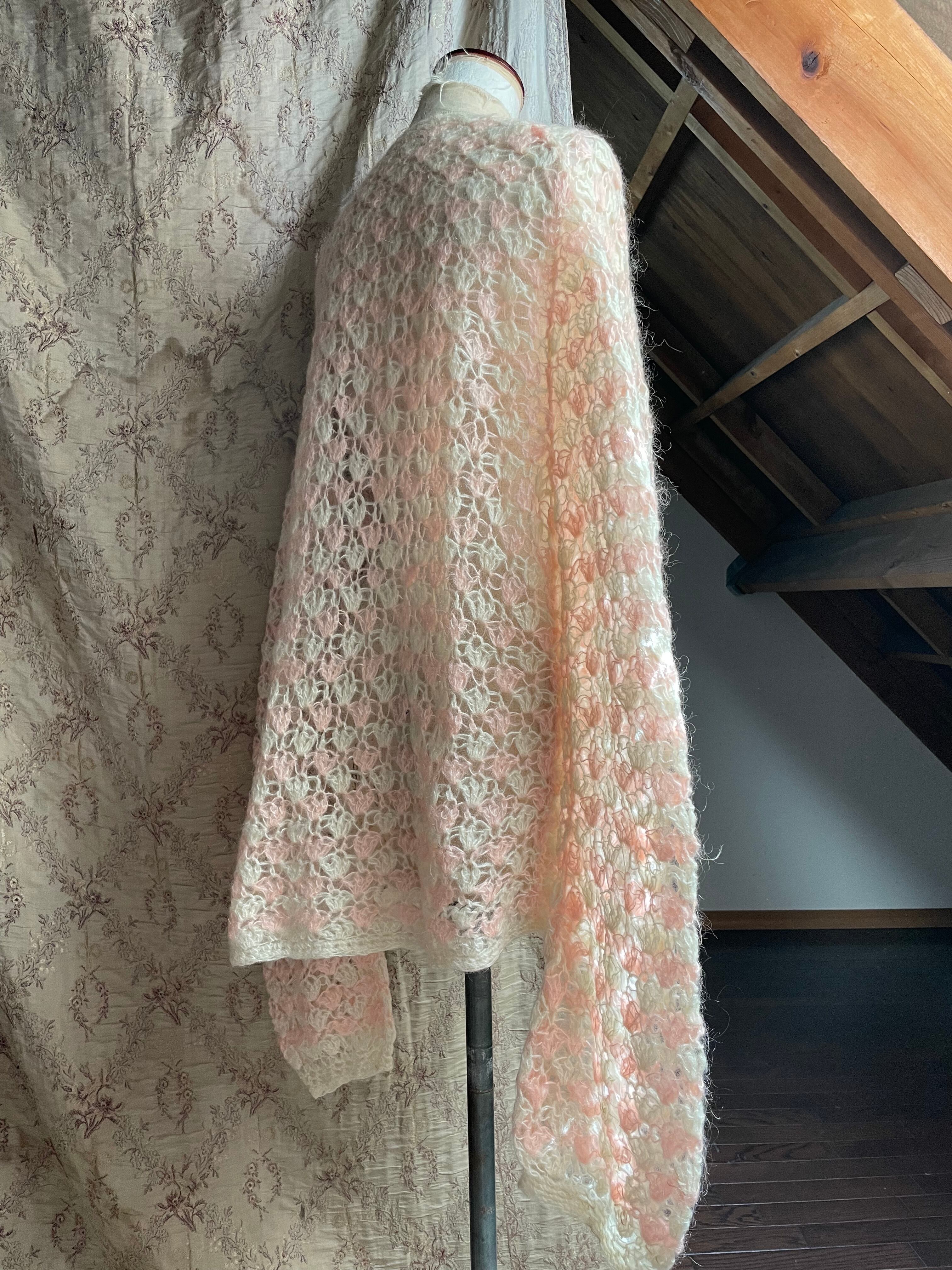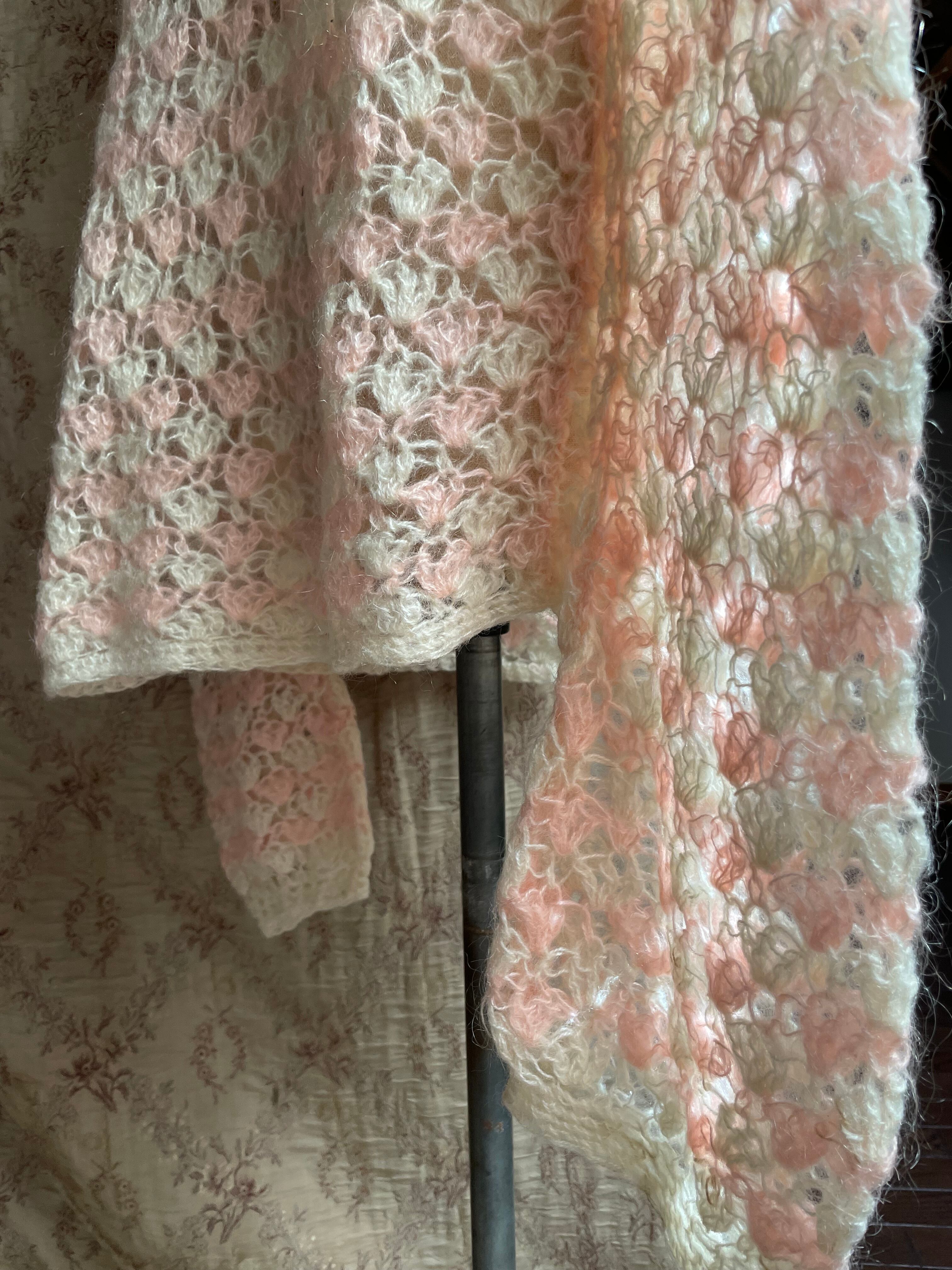 ピンク×アイボリーの色合いがかわいいハンドニットのカーディガン♡