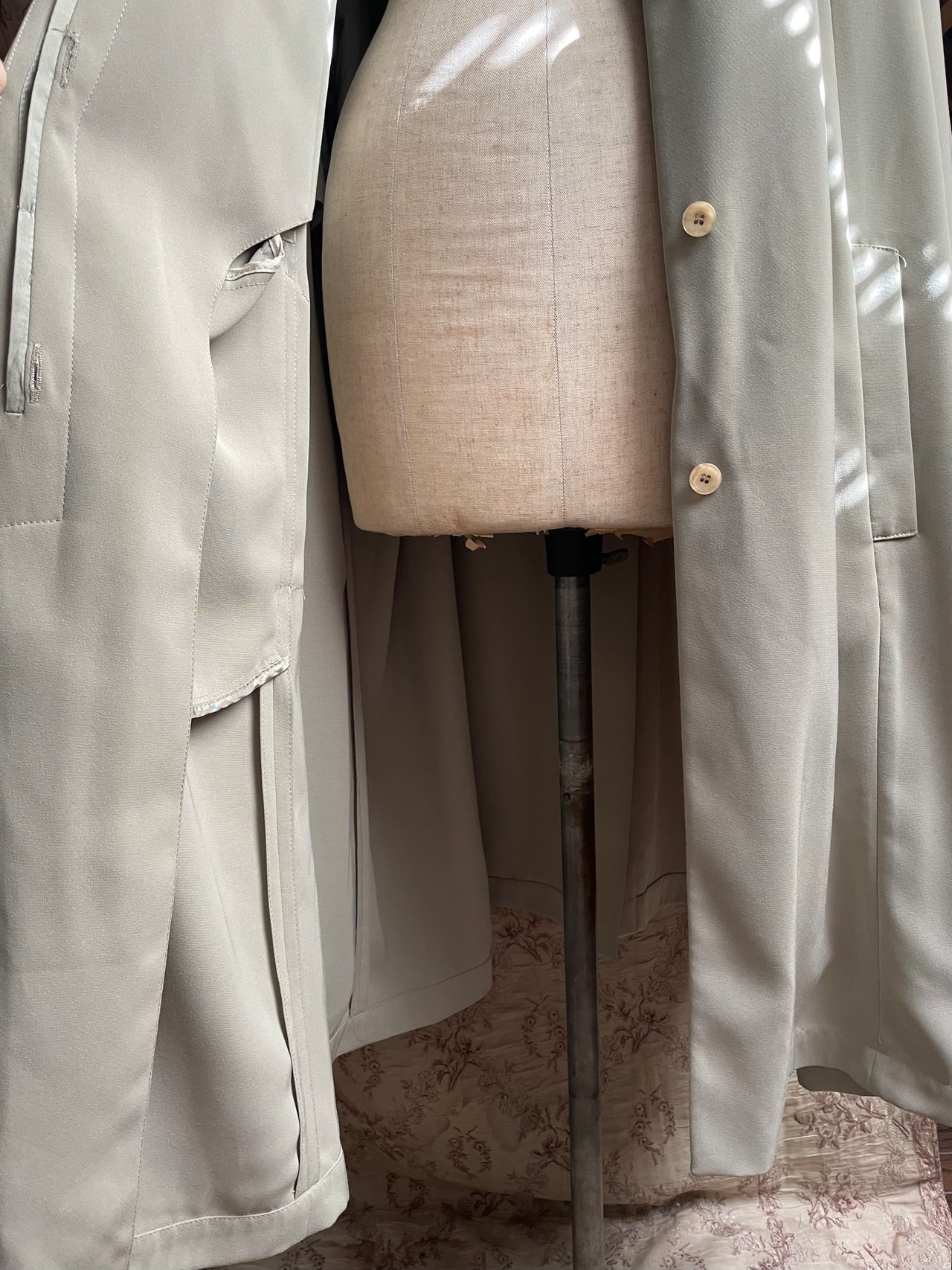厚みのない生地ですので、長いシーズンお使いいただけ、ゆったりとしたサイズ感なので、冬は中にニットなどを着込むことで防寒対策ができます♡