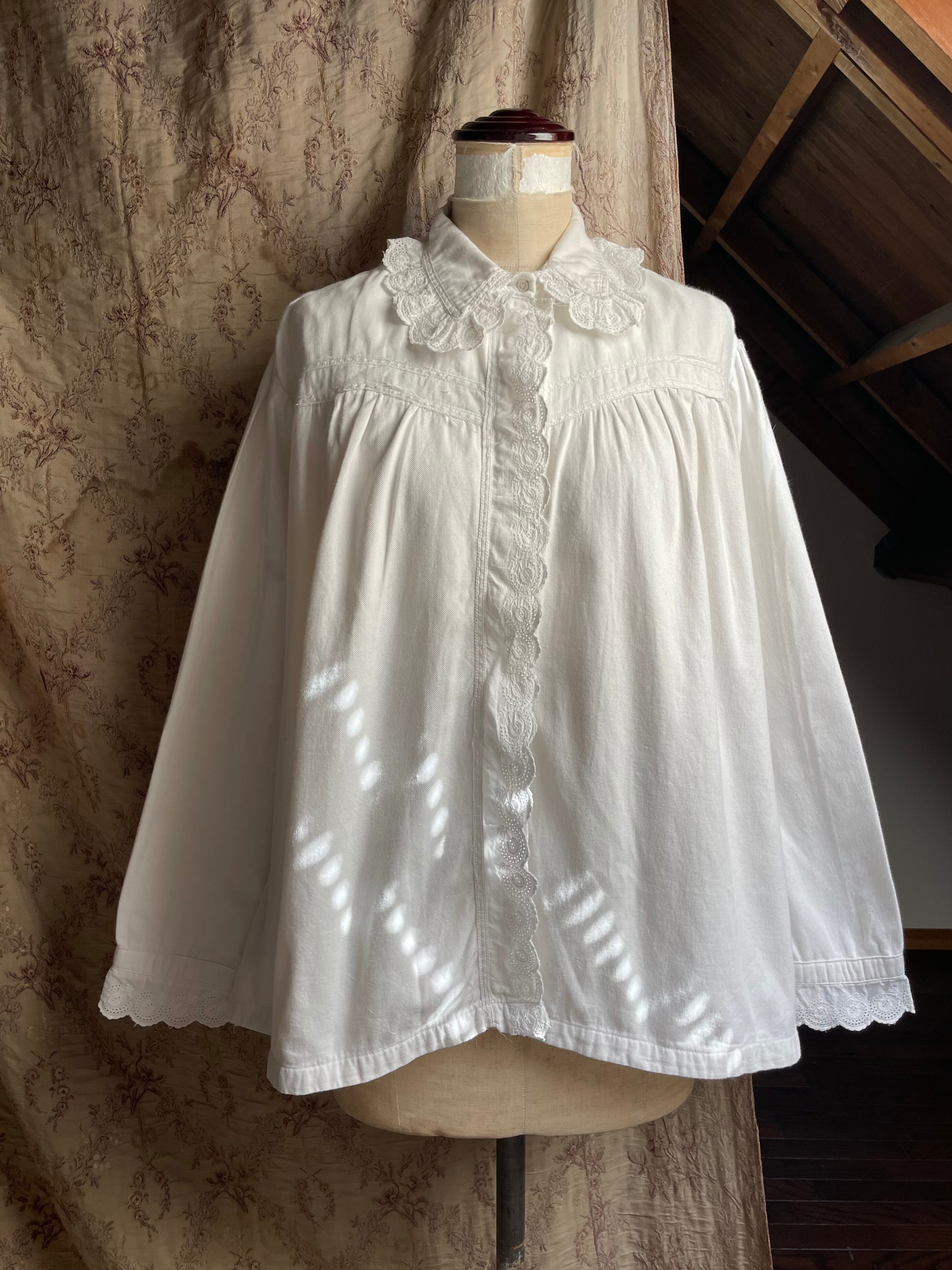 こちらのブラウスは、しっかりした透けの出ないコットン素材で、裏がほんのり起毛がかっております。程よい厚みで、ブラウスとしてはもちろん、薄手のトップスの上に前開きで羽織としてもお使いいただけそうです♡