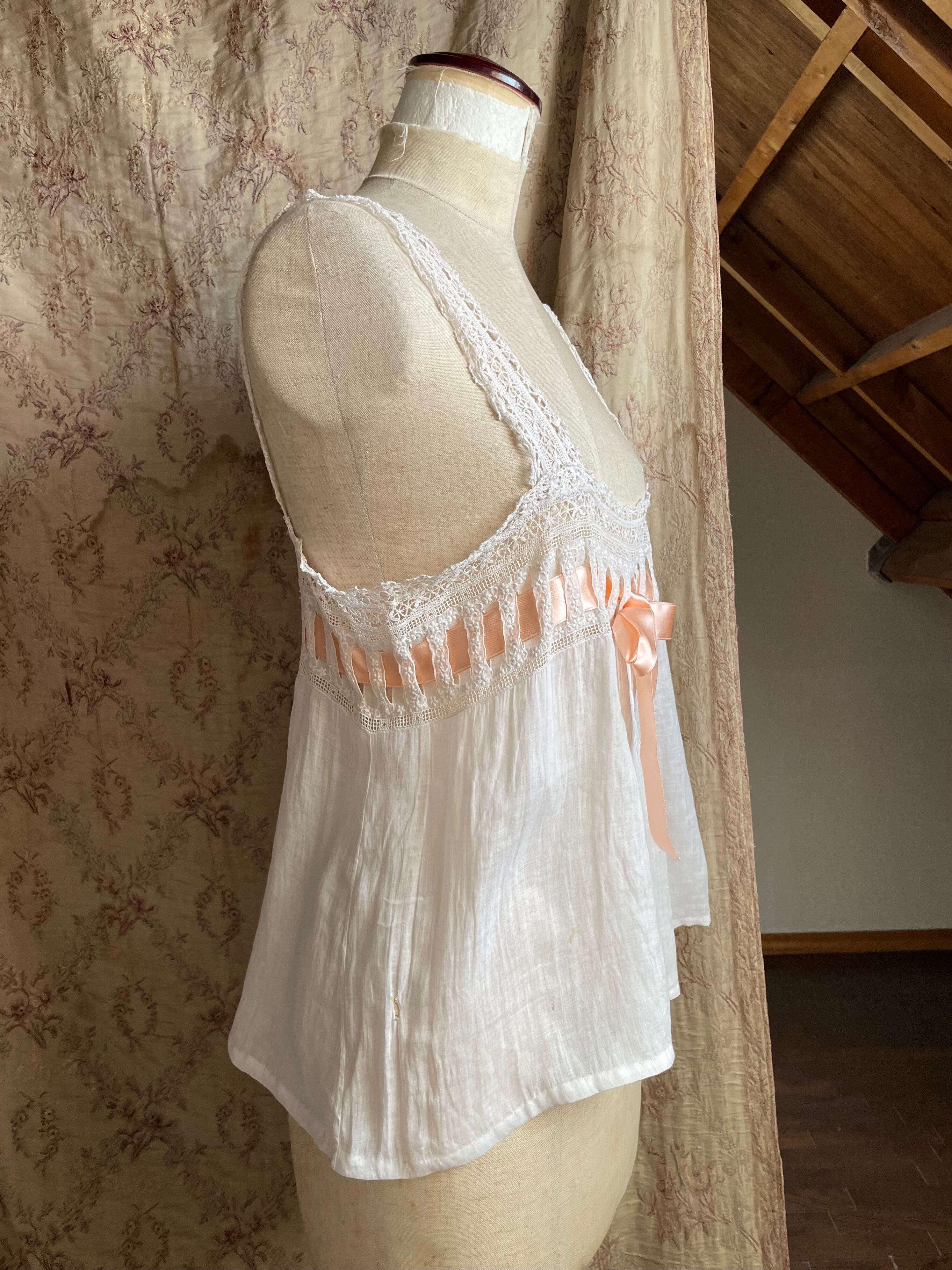 フランス買い付け、ピンクのシルクリボンがかわいいホワイトキャミソール♡