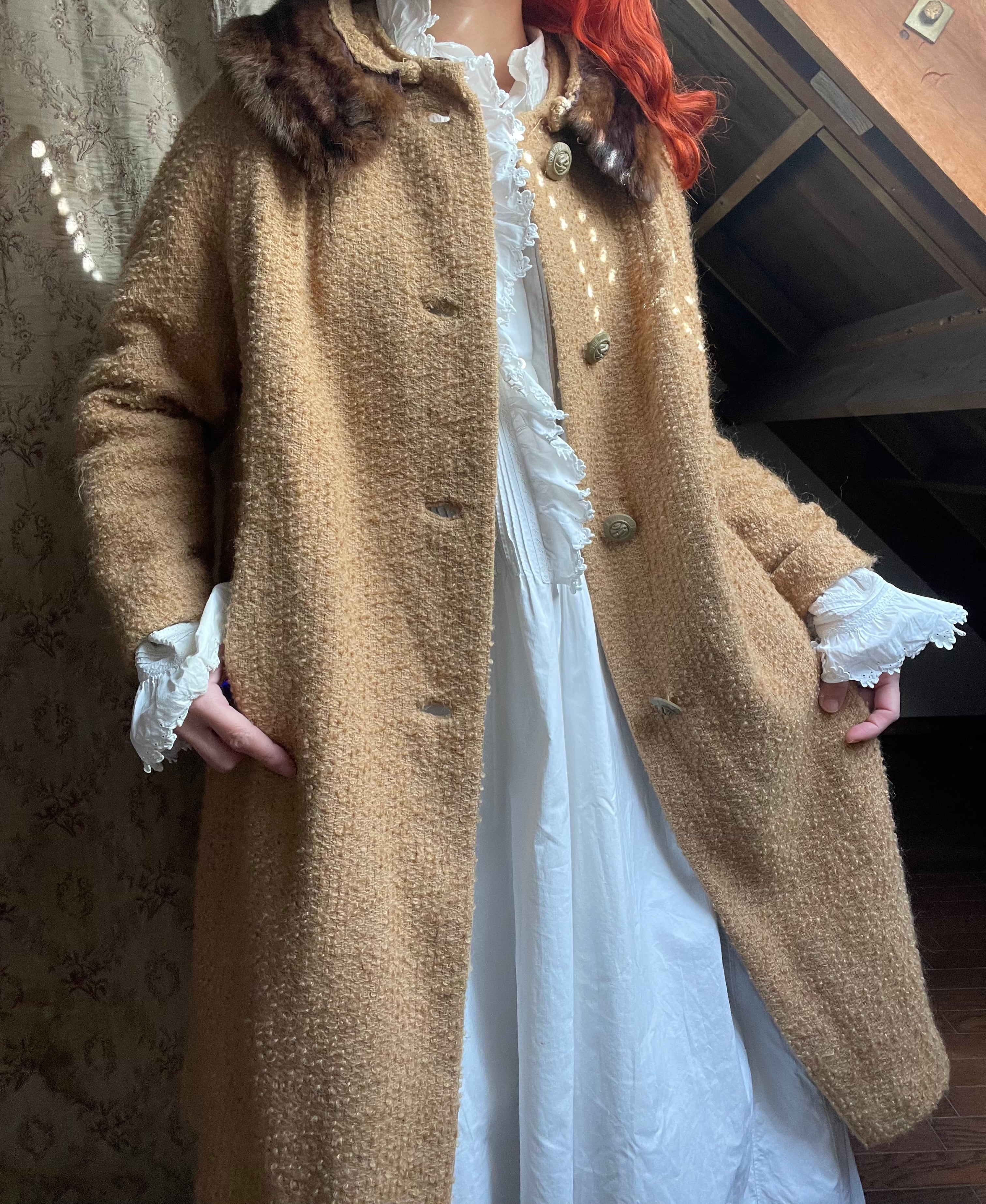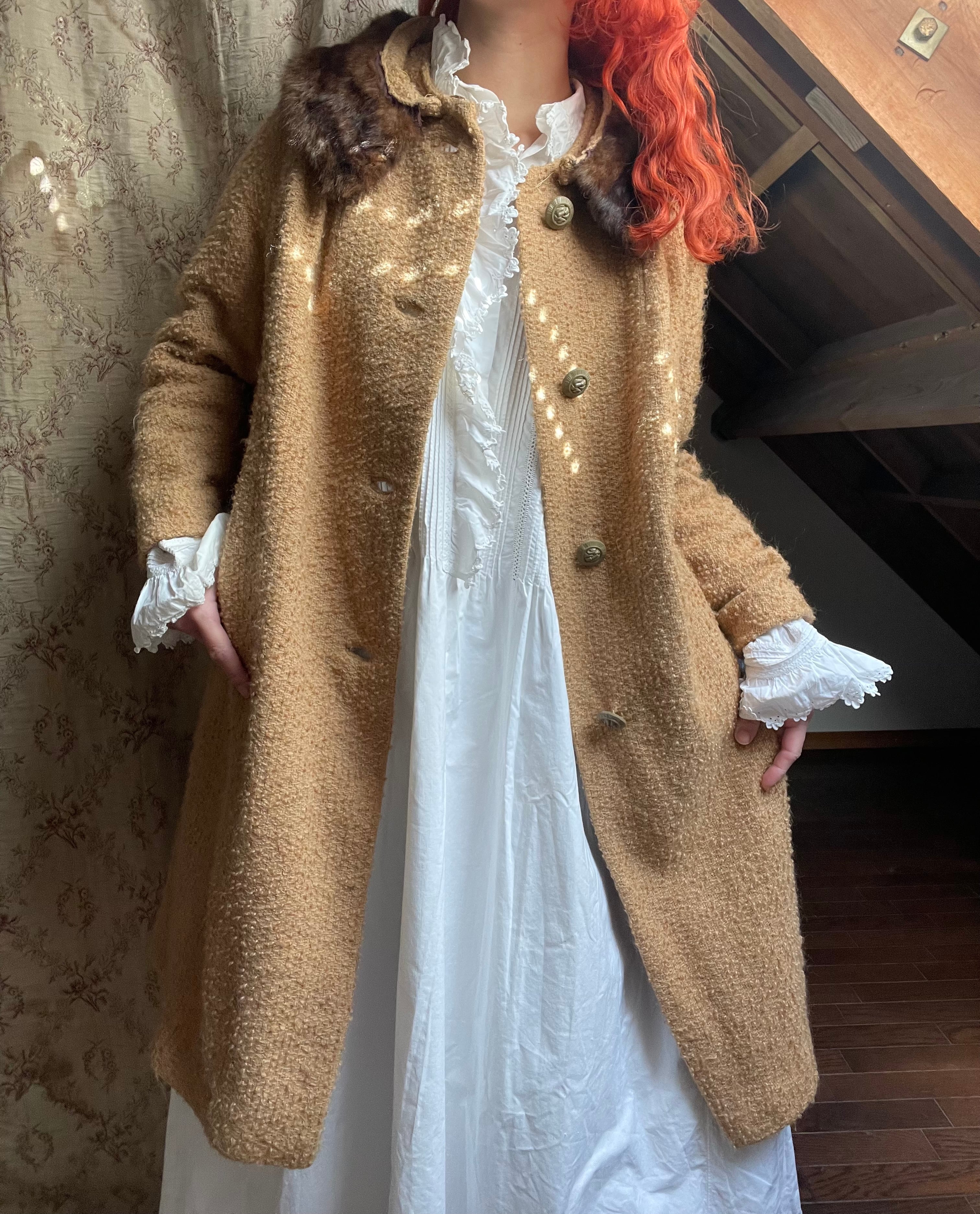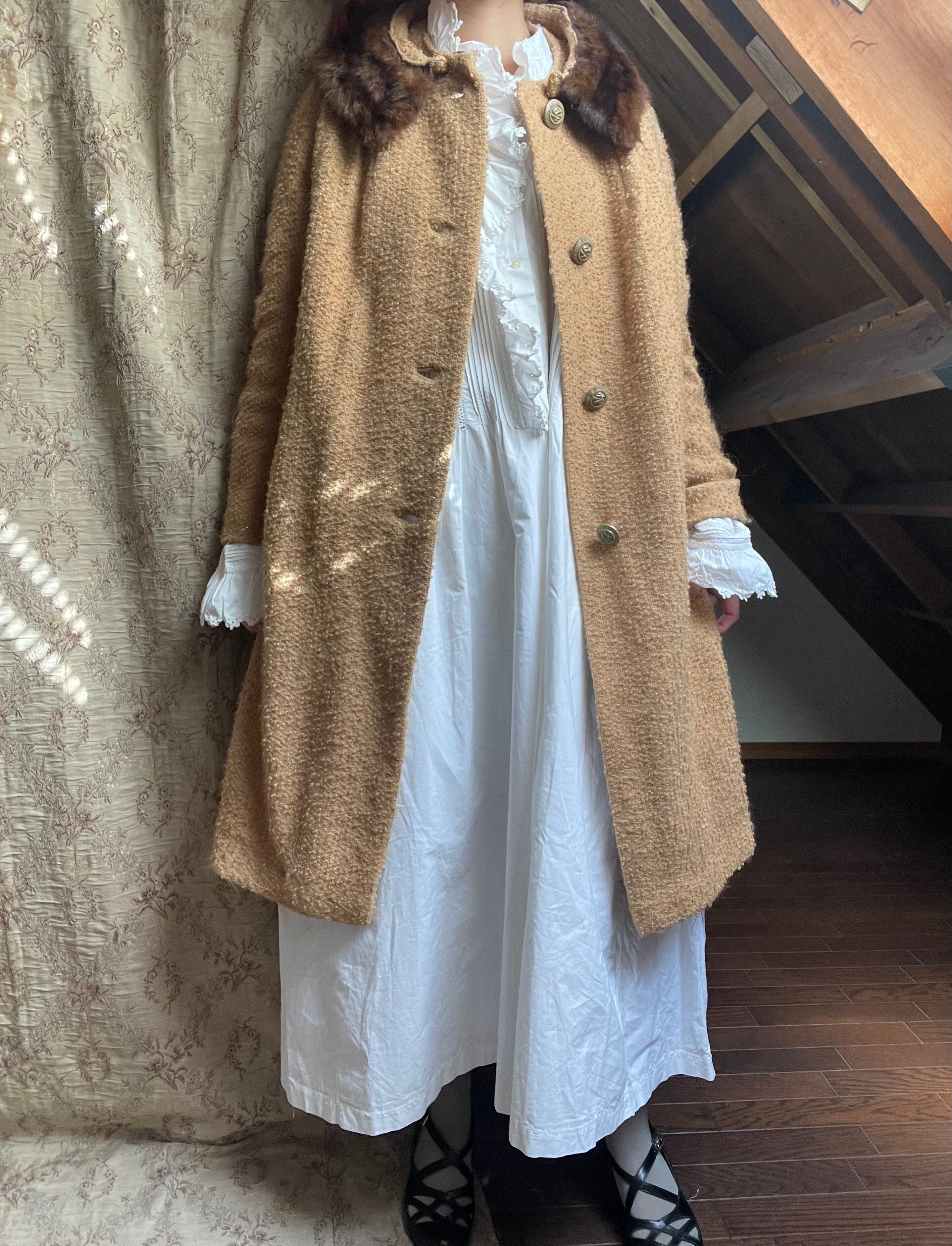 ポコポコなウール生地に、古いボタン、vintageな雰囲気溢れる可愛いデザインのアウターです♡