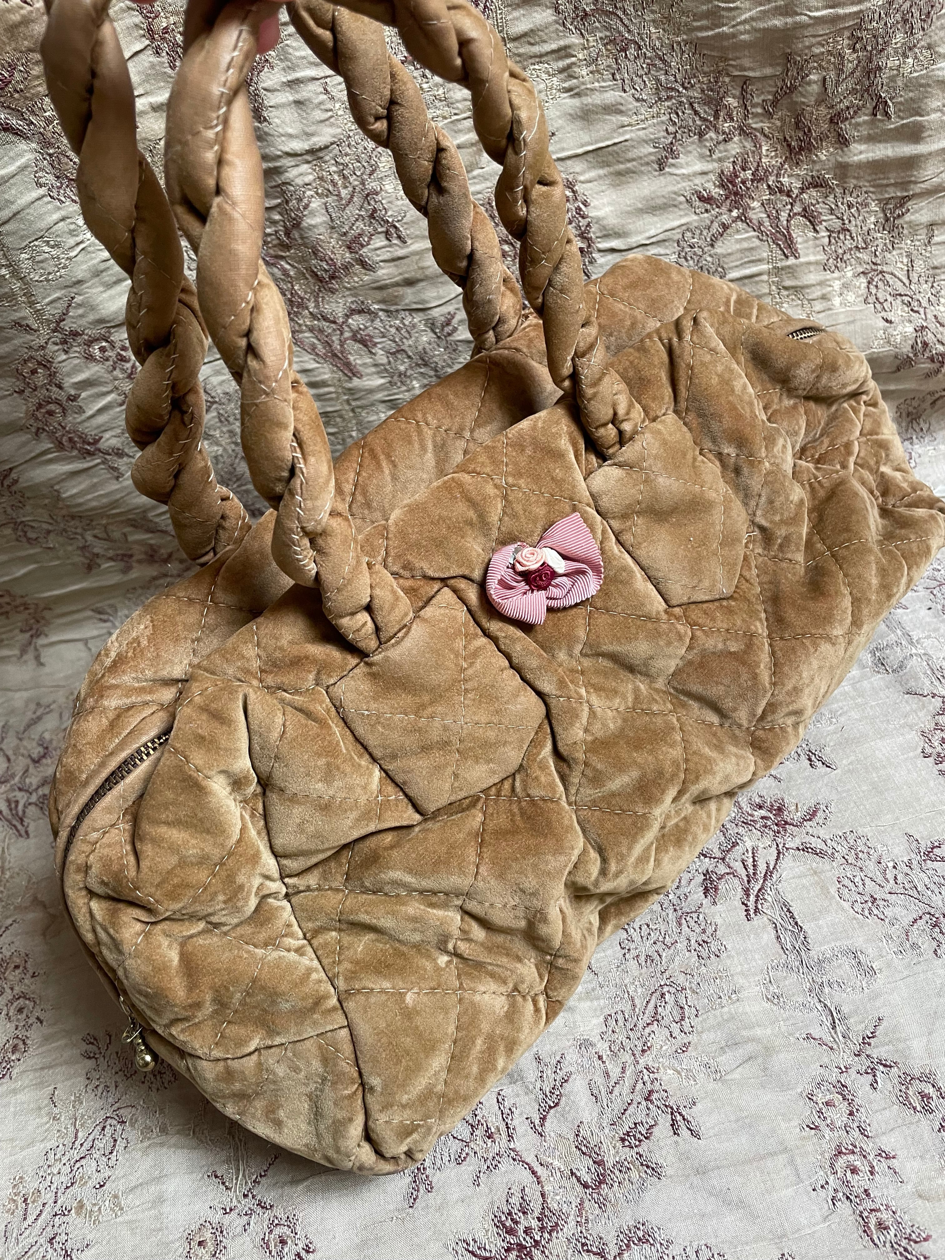 フランス買い付けのキルティング生地のハンドバッグ♡