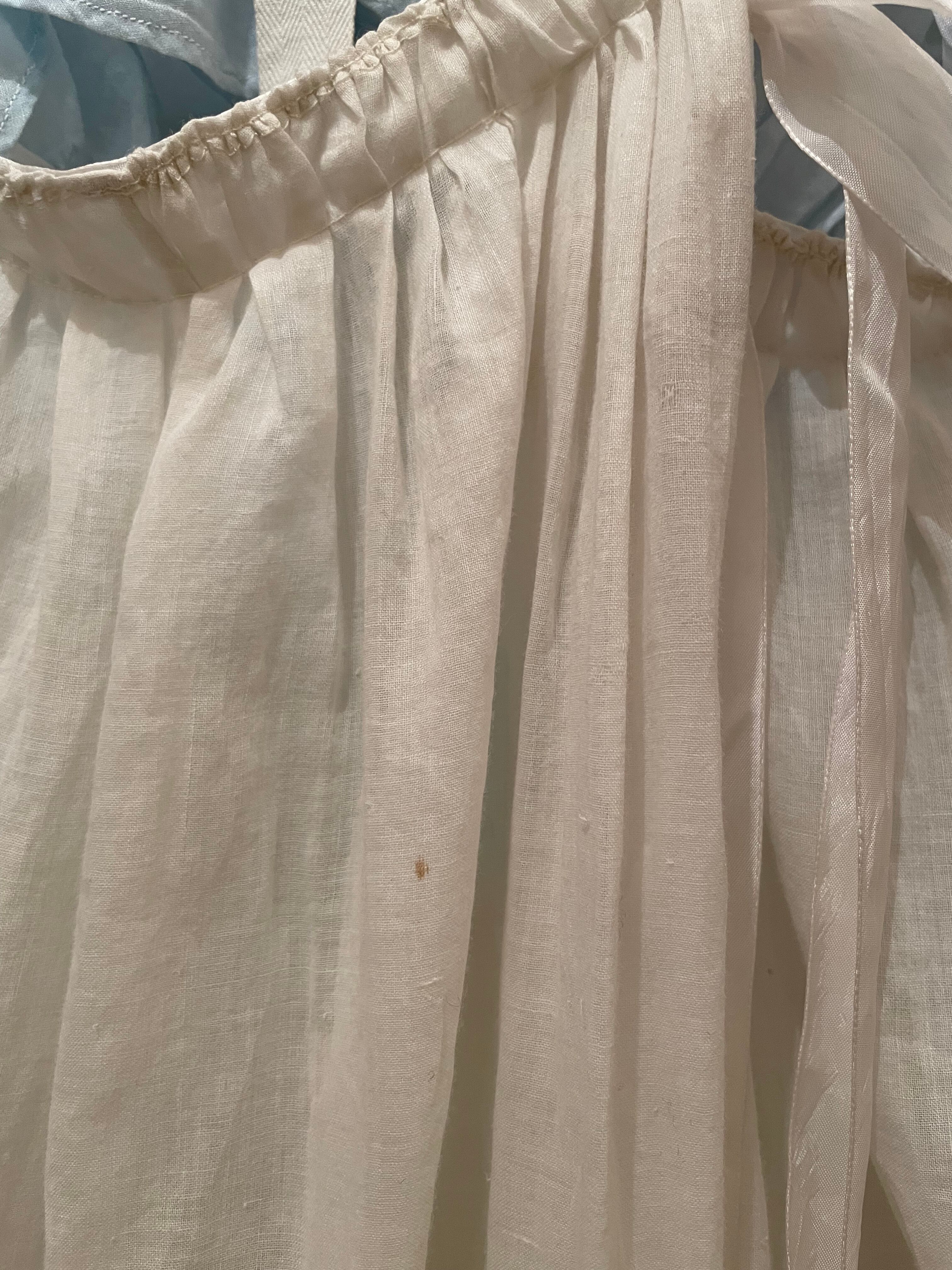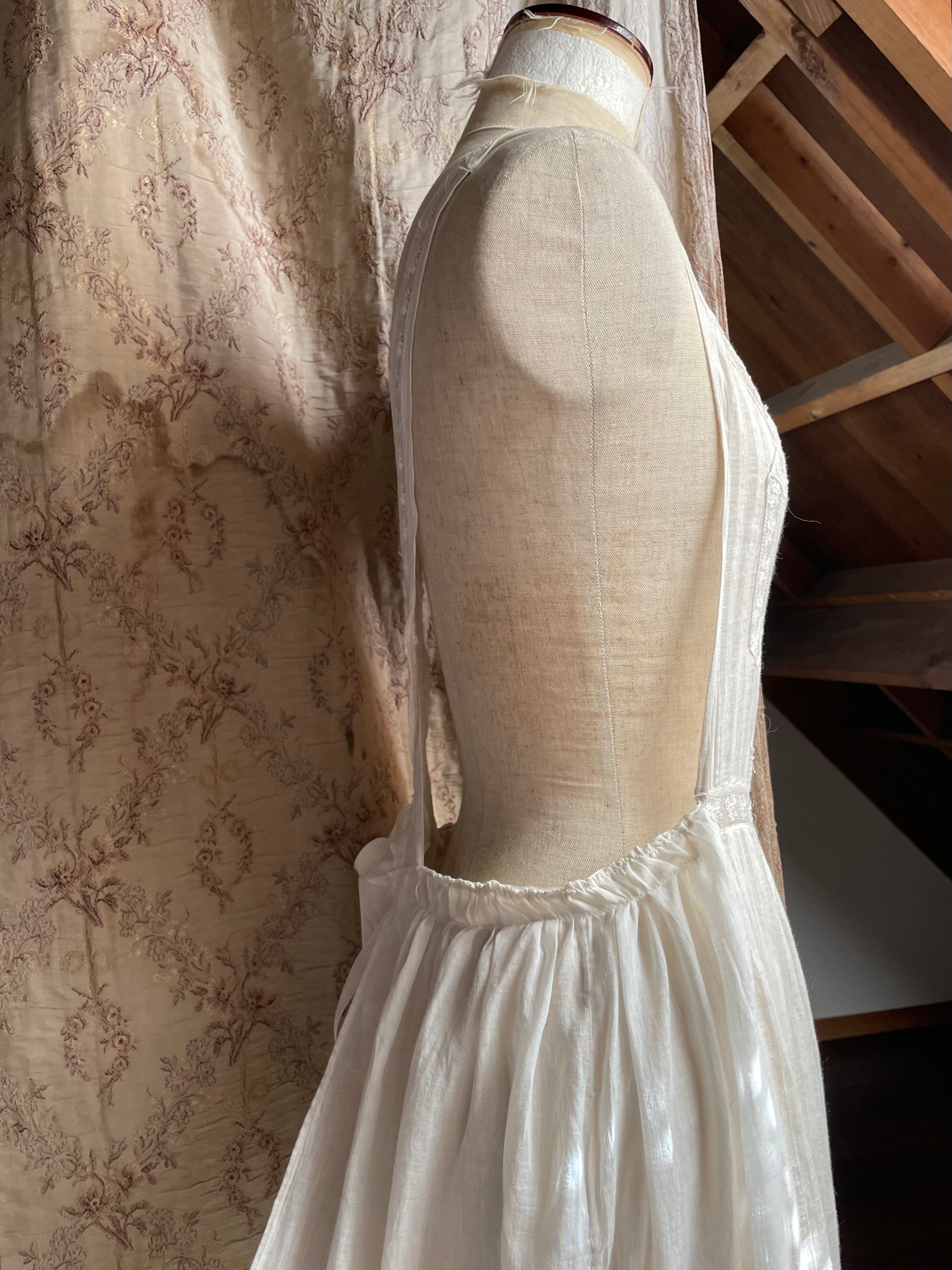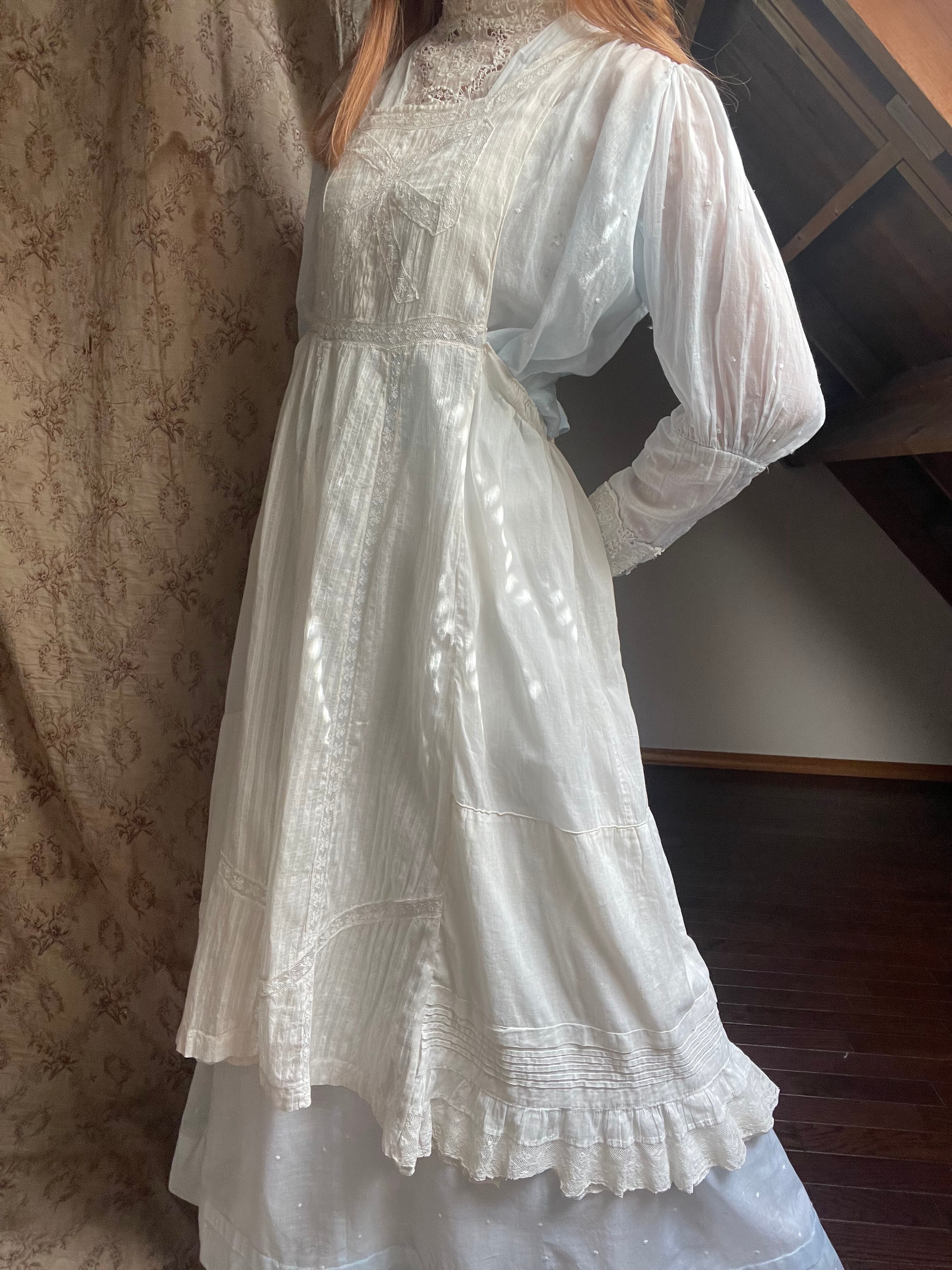 古い小さなエプロンを、古い生地とドッキングして、ゆったり着やすくなるようリメイクいたしました♡