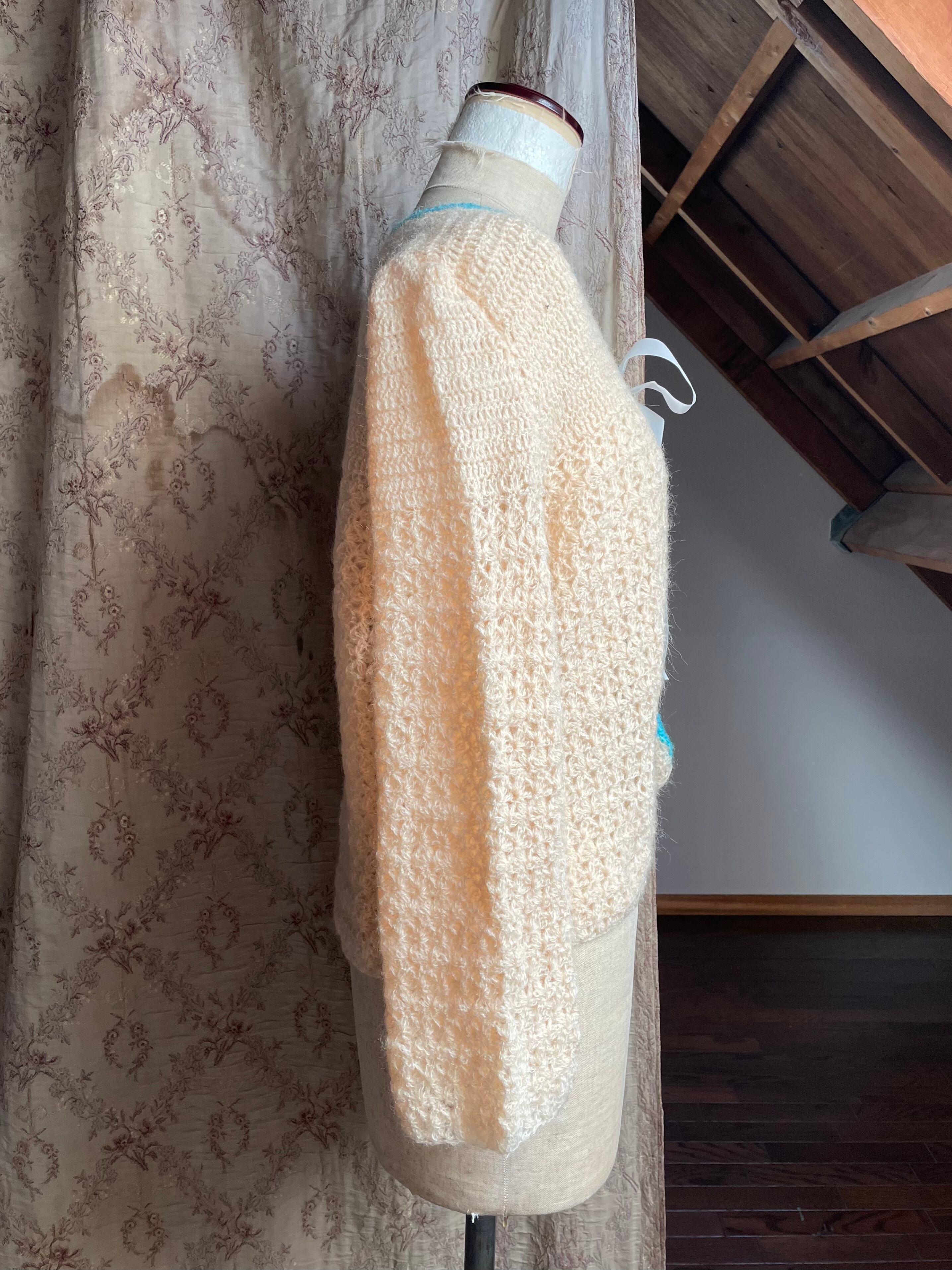 クリームカラーとブルーの配色がとってもかわいいフランス買い付けのハンドニット♡